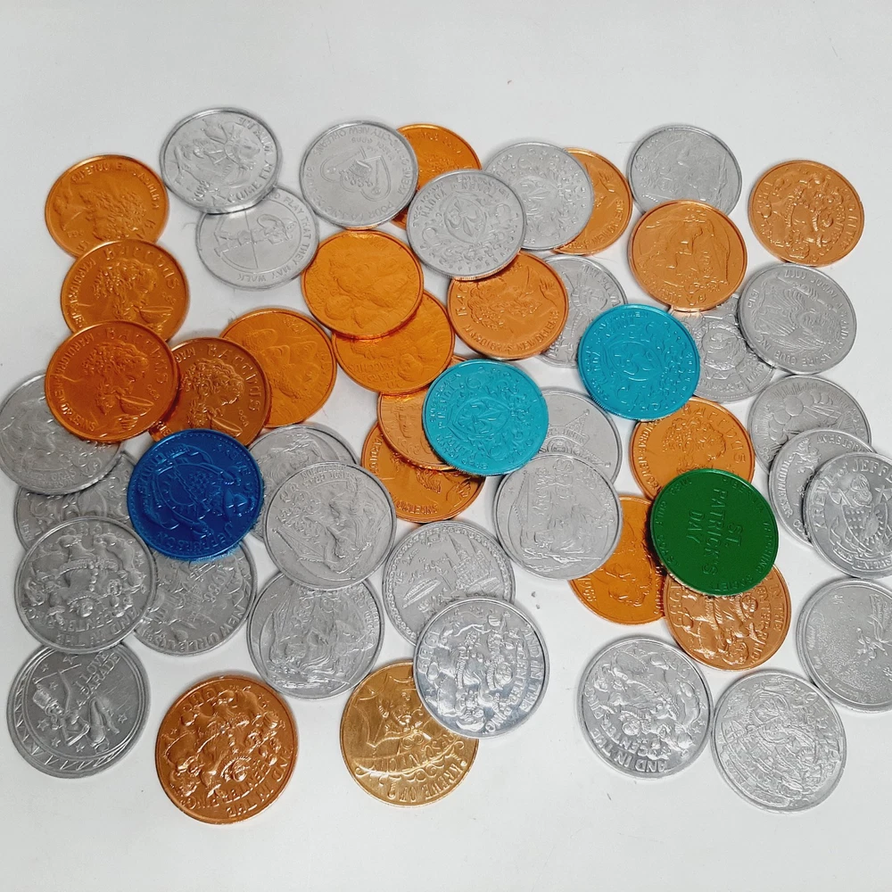Lot of 50 Assorted Mardi Gras Aluminum Doubloons Gold, Silver Krew Coins Good condition with minimal signs of use or wear