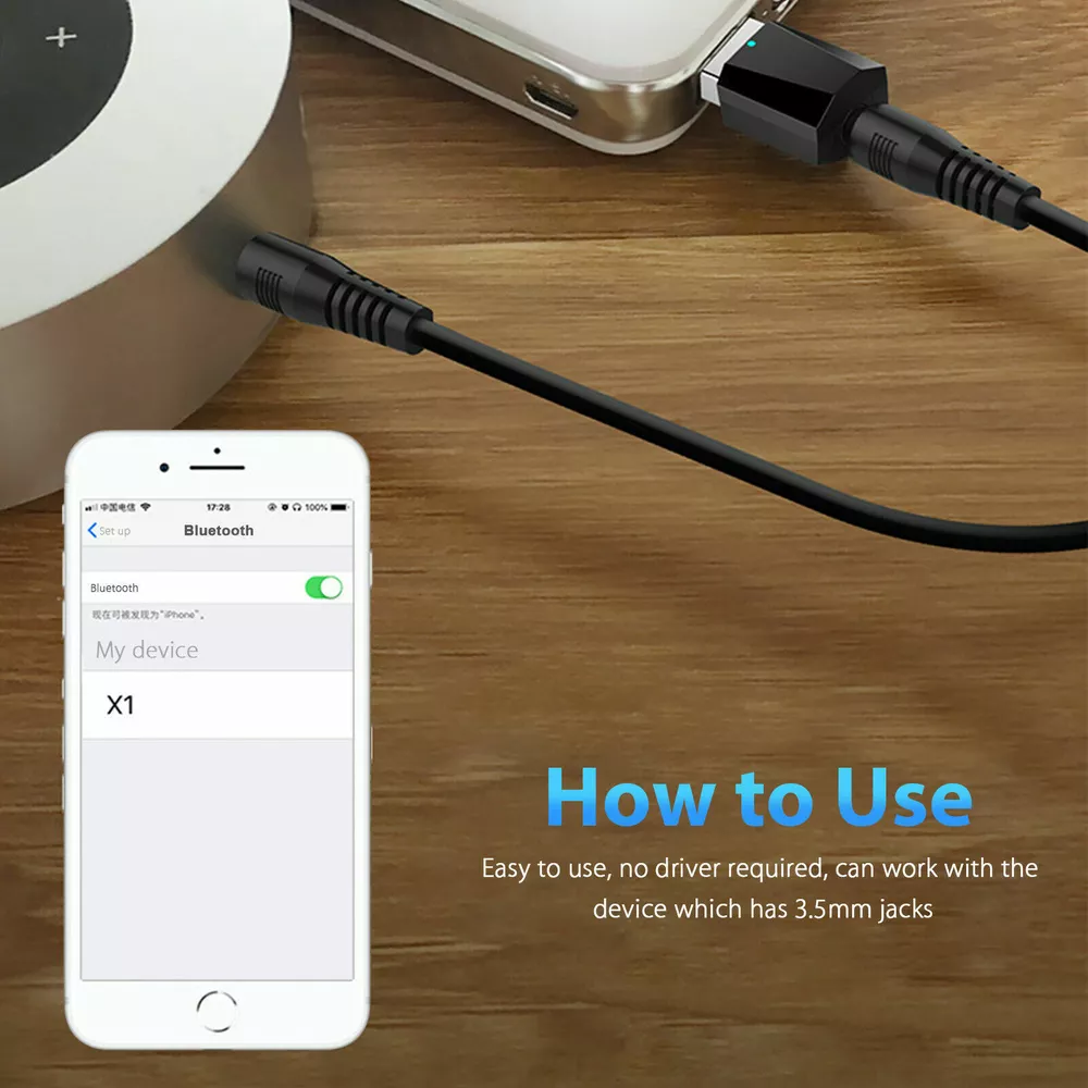 5.0 Audio Receiver Wireless Bluetooth 3.5mm AUX To USB Car Stereo Music Adapter Product Features Bluetooth Receiver: Universal Bluetooth Receiver enables you to connect your audio entertainment (without Bluetooth) with any Bluetooth smartphone. Bluetooth 5.0 + EDR: This wireless audio adapter adopts Bluetooth V5.0+EDR technology, which allows for more stable connection with devices and achieves a range of up to 10m. Note: Operating range may be affected by multiple factors. Application: With this Bluetooth Audio Receiver, you can enjoy CD-Like music from your smartphone or other Bluetooth devices via the Mini Bluetooth receiver. How to Use: Easy to use, no driver required, can work with the device which has 3.5mm jacks. USB Power Supply: Charge it on the USB port and connect it to the device via the audio adapter while using, no worries about running out of power when listening to music. Product Specification Type Bluetooth Receiver Material Plastic Color Black Bluetooth Version 5.0 Bluetooth Distance 5-10 meters Power Supply DC5V USB Work Frequency 2.4GHz Input Interface 3.5mm Package Included 1¡Á Bluetooth Audio Receiver 1¡Á 3.5mm Audio Cable On Jan 16, 2024 at 21:53:18 PST, seller added the following information: