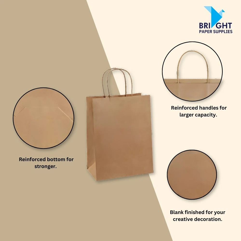 ✅ Eco-Friendly & Biodegradable – Made from 100% recyclable Kraft paper, these bags are an excellent alternative to plastic, reducing environmental impact. ✅ Durable & Strong – Crafted from high-quality, thick paper with reinforced handles, ensuring reliability for carrying groceries, gifts, or retail items. ✅ Versatile Usage – Ideal for restaurants, liquor stores, convenience stores, retail shops, bakeries, and more. Perfect for shopping, takeout, and gifting. ✅ Flat Bottom Design – The sturdy, flat-bottom design allows bags to stand upright, making packing and carrying more convenient. ✅ Multiple Sizes Available – Offered in a variety of sizes to fit different needs, from small boutique bags to large grocery bags. ✅ Sustainable Packaging Choice – A responsible choice for businesses and individuals looking to reduce plastic waste and embrace greener alternatives.