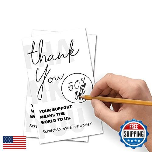 50 Blank Gift Certificate Scratch Off Cards Vouchers, for Small Business, Spa Beauty Makeup Hair Salon Restaurant, Christmas Birthday Holiday, Features CARDS ONLY: No envelopes are included! Each card is business card size, 3.5 inches x 2 inches. Package includes 50 Gift Scratch Off Cards and 50 Scratch Off Labels. Printed on quality cards stock. These cards perfect for small business owners, to include with a product or insert. HOW TO USE: These cards are printed with a blank circle for you to write and customize your own gift or promotion. Write on the card and give your customer or guest ANY prize you choose! After you have written the prize in the blank circle, place your scratch off sticker over it. The back of this card is blank to allowing you to write a personal note or thank you to your customer or guest. IMPRESS YOUR RECIPIENT - Your customer or guest will love these uniquely designed gift certificate scratch off coupon voucher ticket cards, and it will help leave a good impression of your small business! GREAT GIFT IDEA - Great for baby, wedding and bridal showers for favor and gift ideas. Also a great idea for birthdays or Valentines love coupons! Write in your own gift to customize it for any event or occasion! QUALITY PRINT: Includes 50 Gift Scratch Off Cards and 50 Scratch Off Labels. BEAUTIFULLY DESIGNED: These thank you cards are perfect for expressing gratitude and care to customers. All are carefully designed by our high-quality designers. We also have other beautifully designed thank you cards for you to choose from. You can continue to browse other thank you cards in our store, there is always one that suits you! Shipping Free & Fast Shipping: We offer free shipping to most of the USA with a normal delivery time of 3-7 days. However, due to the current situation, additional delivery time (up to 3 weeks) may be required for some items. Alternative Carriers: We may use alternative carriers (e.g., USPS, FedEx, UPS) to ensure your package arrives safely and on time. Due to the use of multiple carriers, we are unable to provide a tracking number automatically. Handling Time: Orders are processed and shipped within 1-2 business days of receiving cleared payment. Shipping Restrictions: Shipping to Alaska, Hawaii, Puerto Rico, Guam, and other US territories may incur shipping charges or delivery restrictions. Please contact us before ordering, or your order can be refunded/cancelled. State Restrictions: Certain items may not be shipped to California due to state regulations. Contact for Tracking Updates: If you require tracking updates or have any concerns about the delivery of your order, please feel free to contact us, and we will be happy to assist you. Return Policy 30-Day Hassle-Free Returns: If you are not completely satisfied with your purchase, you can return the item for free within 30 days of receiving it for a full refund or exchange. Easy Return Process: Contact us, and we will provide you with a prepaid return shipping label and detailed instructions. No Restocking Fee: There are no restocking fees for returns. However, the buyer is responsible for return shipping costs if the return is not due to a seller's error. Refund Processing: Refunds will be processed within 1 business day of receiving the returned item in its original condition. Payment We accept all major credit cards, PayPal, and Apple Pay for your convenience. Your payment information is secure and encrypted to ensure a safe and seamless transaction. Please complete your payment within 3 days of purchase to avoid any delays in shipping. Feedback Your feedback is extremely important to us. We strive to provide the best products and customer service possible. If you are satisfied with your purchase, please take a moment to leave us a positive review. If you have any concerns or issues with your order, please contact us before leaving negative feedback. We are committed to resolving any problems and ensuring your satisfaction. Contact Us If you have any questions or concerns, please feel free to reach out to our customer support team. You can contact us through the eBay messaging system. We are available Monday to Friday, 9:00 am to 5:00 pm EST, and we will do our best to respond to your inquiry within 24 hours. Thank you for supporting our small family business!