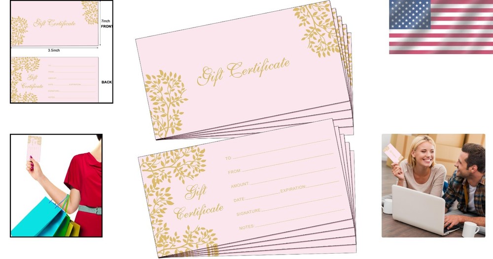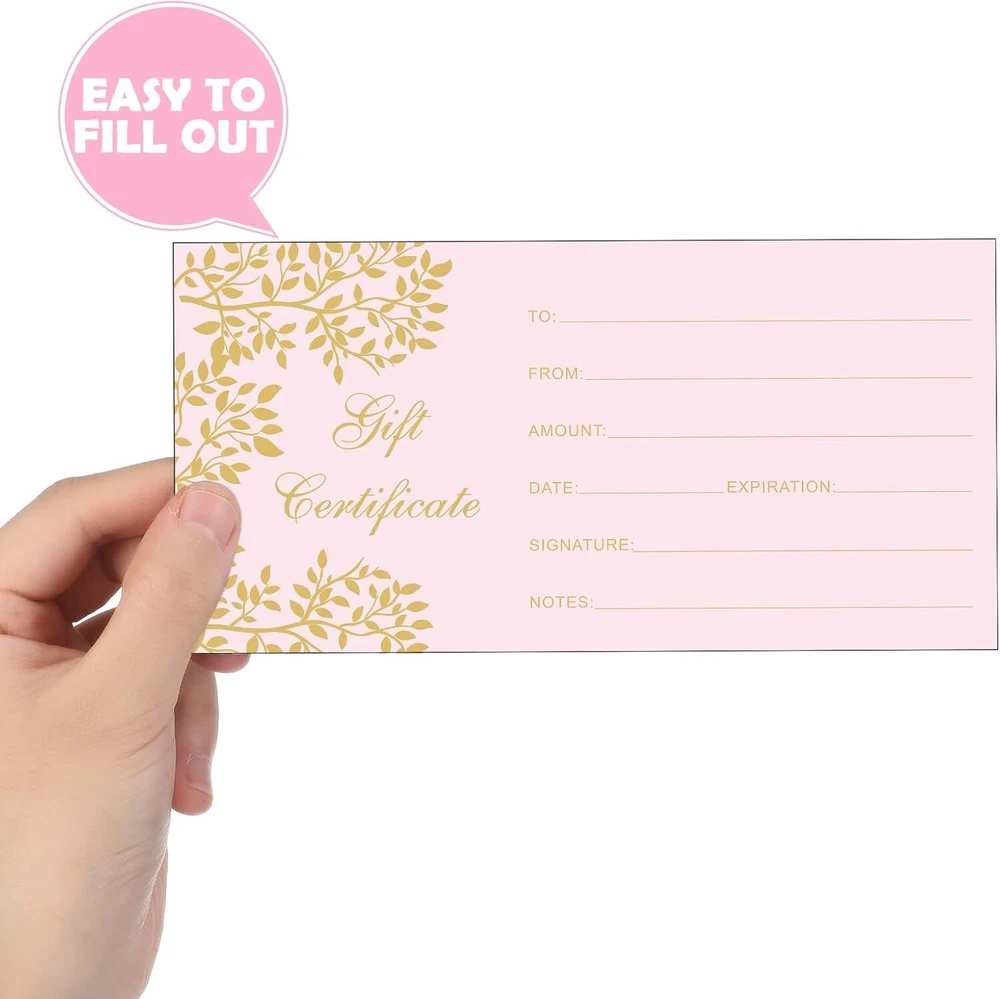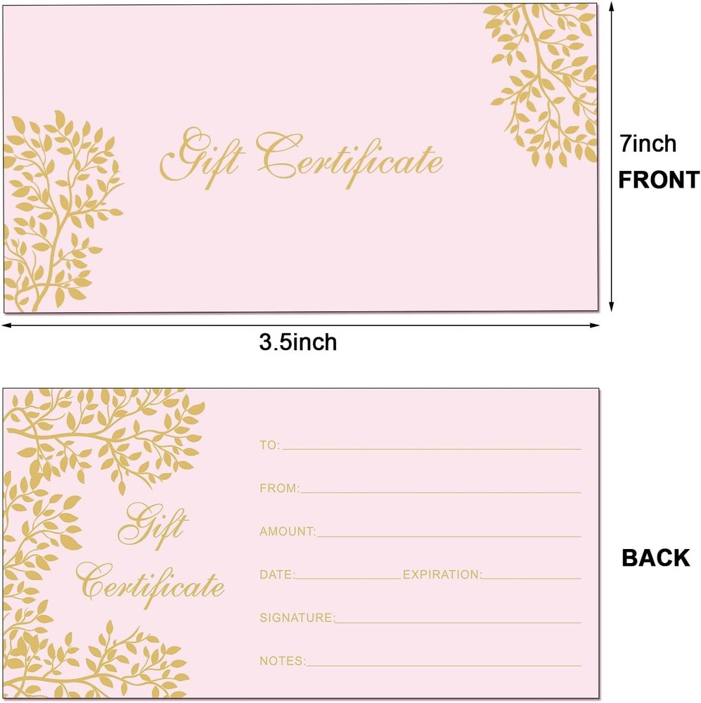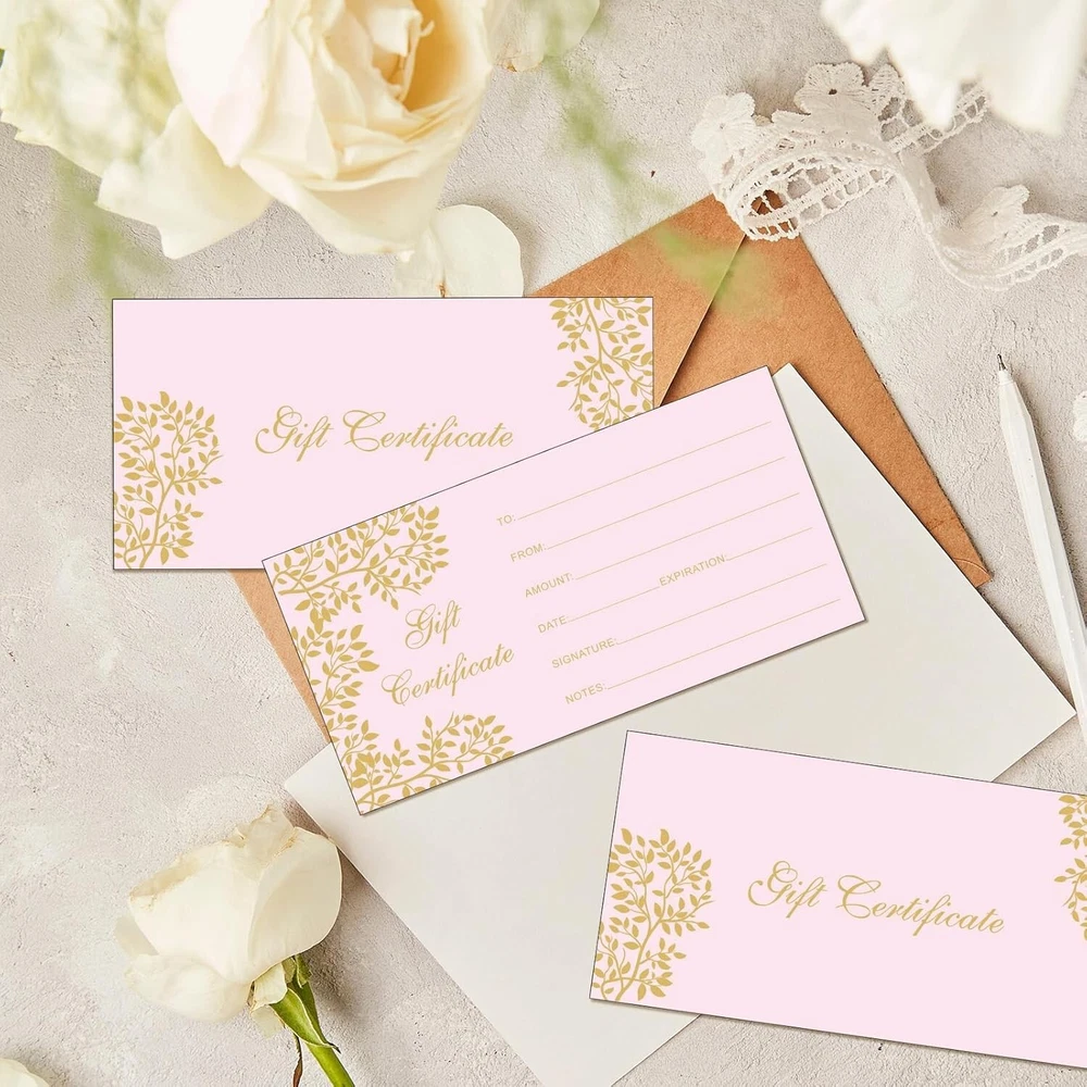 50 Elegant Blank Gift Certificates - Customizable Pink Vouchers for Any Occasion < class="slides"> ‹ › ‹ › ‹ › ‹ › ‹ › ‹ › ‹ › ‹ › Elegant Blank Gift Certificates - Customizable Pink Vouchers for Any Occasion About This Item: Receive 50 exquisite blank gift certificates, perfect for all your gifting needs. Rich in quantity, these vouchers can be shared with family and friends for various occasions. Exquisite Design: Beautifully designed with delicate tree branch patterns on both sides. Ample blank space allows for customer information to be easily filled in. The combination of elegant lettering and artistic backgrounds creates a stunning aesthetic feel. Quality Material: Crafted from high-quality matte paper that is durable and tear-resistant. Features a smooth surface for effortless writing with various pens. Specifications: Size: 8.9 x 17.8 cm / 3.5 x 7 inches (L x W) Main color: Elegant pink Quantity: 50 pieces Applicable Occasions: Ideal for business events, beauty salons, restaurants, weddings, Christmas, birthdays, and more. Make a lasting impression on recipients with these beautifully designed certificates. Why Choose Our Elegant Blank Gift Certificates? Elevate your gifting experience with our Elegant Blank Gift Certificates. Each beautifully designed voucher is not only versatile for multiple occasions but also reflects quality and thoughtfulness. Whether you're providing a service, giving a gift, or celebrating a special event, these certificates ensure your gesture is memorable. Make every occasion special - order your set of Elegant Blank Gift Certificates today! Shipping Free & Fast Shipping - We offer free shipping to most of the USA with a normal delivery time of 3-7 days. However, due to the current situation, additional delivery time (up to 3 weeks) may be required for some items. Alternative Carriers - We may use alternative carriers (e.g. USPS, FedEx, UPS, etc.) to ensure your package arrives safely and on time. Due to the use of multiple carriers, we are unable to provide a tracking number automatically. Handling Time - Orders are processed and shipped within 1-2 business days of receiving cleared payment. Shipping Restrictions - Shipping to Alaska, Hawaii, Puerto Rico, Guam, and other US territories may incur shipping charges or delivery restrictions. Please contact us before ordering, or your order can be refunded/cancelled. State Restrictions - There may be restrictions based on your state of purchase. For example, certain items may not be shipped to California due to state regulations. Contact for Tracking Updates - If you require tracking updates or have any concerns about the delivery of your order, please feel free to contact us, and we will be happy to assist you. Return 30-Day Hassle-Free Returns - We want you to be completely satisfied with your purchase. If you are not, you can return the item within 30 days of receiving it for a full refund or exchange. Easy Return Process - To start a return, simply contact us and we will provide you with a prepaid return shipping label and detailed instructions. Restocking Fee - There are no restocking fees for returns. However, the buyer is responsible for return shipping costs if the return is not due to a seller's error. Refund Processing Time - Refunds will be processed within 5 business days of receiving the returned item in its condition. Payment We accept all major credit cards, PayPal, and Apple Pay for your convenience. Your payment information is secure and encrypted to ensure a safe and seamless transaction. Please complete your payment within 3 days of purchase to avoid any delays in shipping. Feedback Your feedback is extremely important to us. We strive to provide the best products and customer service possible. If you are satisfied with your purchase, please take a moment to leave us a positive review. If you have any concerns or issues with your order, please contact us before leaving negative feedback. We are committed to resolving any problems and ensuring your satisfaction. Contact Us If you have any questions or concerns, please feel free to out to our customer support team. You can contact us through the eBay messaging system. We are available Monday to Friday, 9:00 am to 5:00 pm EST, and we will do our best to respond to your inquiry within 24 hours. Buy it now and enjoy a pleasant shopping experience! Valid Locations: US-Nationwide Value (dollars): 20 Expiration : Blank Gift Certificates Expiration : Blank Gift Certificates Type: Gift Card