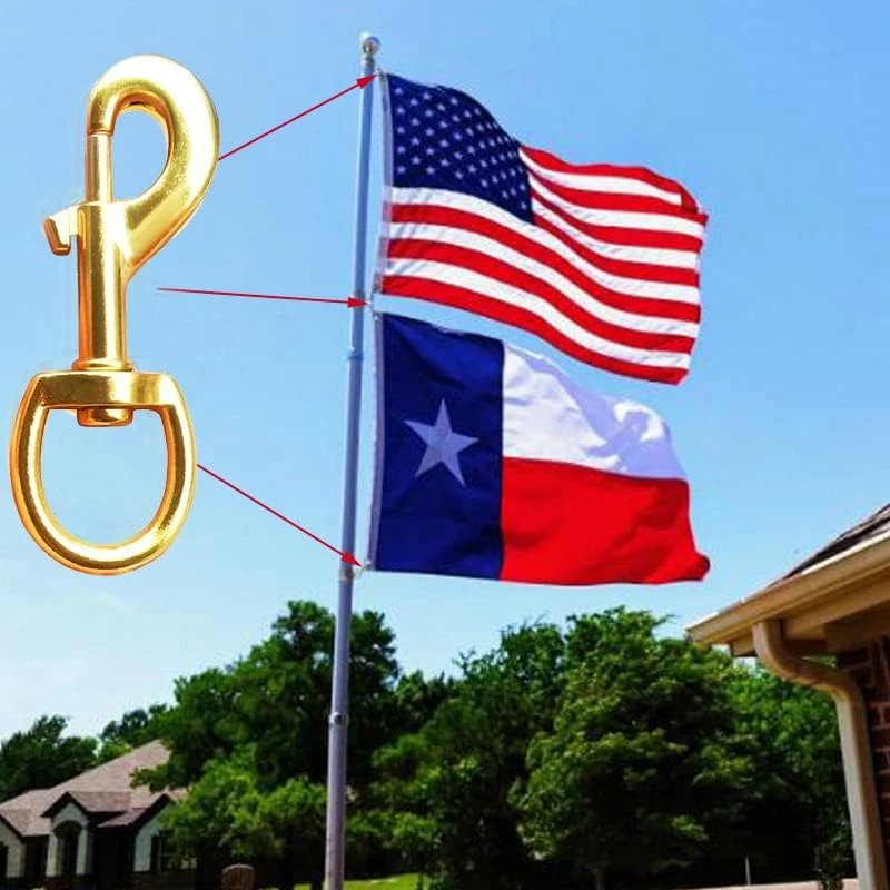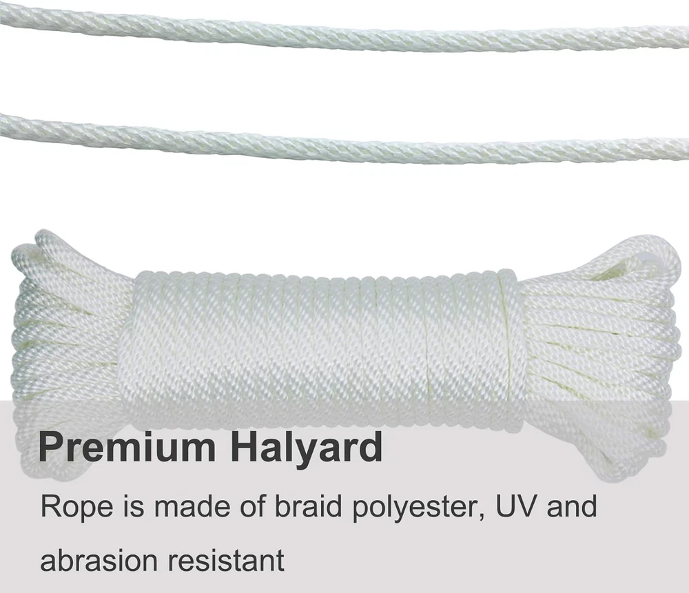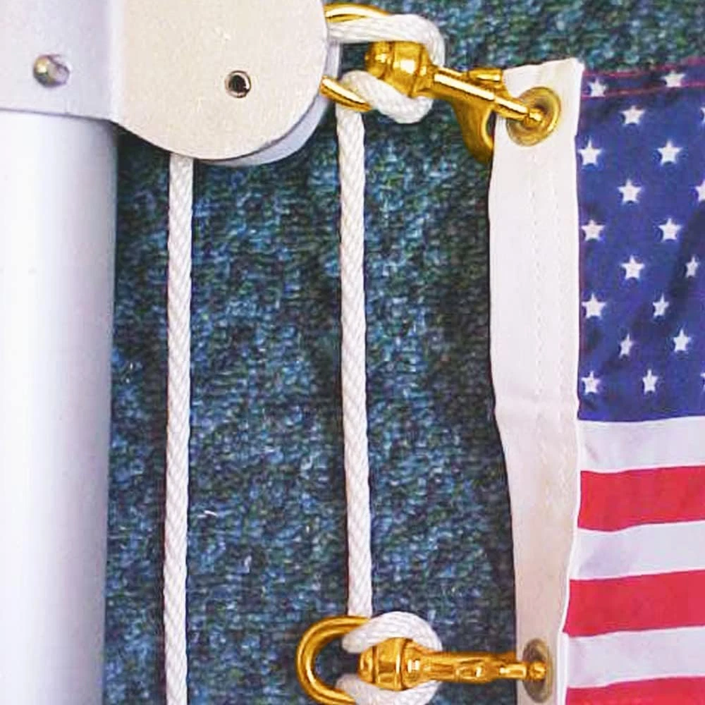 50 FT Flagpole Rope + 2 Swivel Clips, Flag Pole Hardware Accessories Kit [[IMAGE]] Hello, We Do Sell Mobiles, Computers Tablets & Network Accessories! Features Flagpole Part Set Includes: 50 Feet white halyard rope, And 1 Pair(2 Pcs) superior quality snap hooks clips (Overall length about 3.5 Inches, swivel has an ID of 3/4" in width) Premium Flagpole Halyard: Rope is made of braid polyester, UV and abrasion resistant, designed to withstand the harsh environment, Great use for your outdoor flag poles Durable Snap Hooks: Flag Clips have nickel plated with corrosion resistant, Up to 70 pound safe load, Heavy duty and Designed for flags with grommets EASY TO USE: Flag rope works on flagpoles up to 25 Feet, Flag hooks easy to attach and remove from the flag, Great for attach the flag to the halyard on a flagpole Multi-Purpose: Halyard rope can be used as halyard rope, flag pole line, sheet lines, clothes lines and more; Flagpole snaps also can be used for lifting, dog leashes, bag straps, gate latches, securing cable wires and more Item Weight 12 ounces Color 2 Gold Hooks + Rope Package Dimensions 10.08 x 3.74 x 1.97 inches 3.74 inches x 10.08 inches x 1.97 inches. Weight: 12.0 oz Payment We accept all payments via Ebay using Credit Cards , PAYPAL , Apple Pay and many others Shipping We are always working hard to ensure your package arrives as soon as possible. Please understand that some factors like weather, high postal traffic, and the performance of shipping companies are outside of our control. Delivery & Return Policy We offer a 30-Day Return Policy on items in which you are not completely satisfied with. You have the option of a full-refund or an exchange of the item. No returns are available on items shipped outside of the USA.