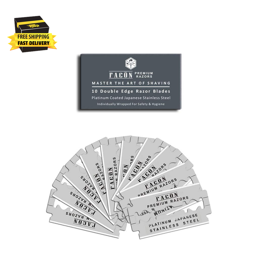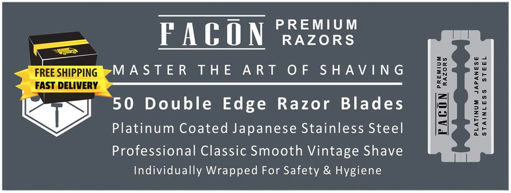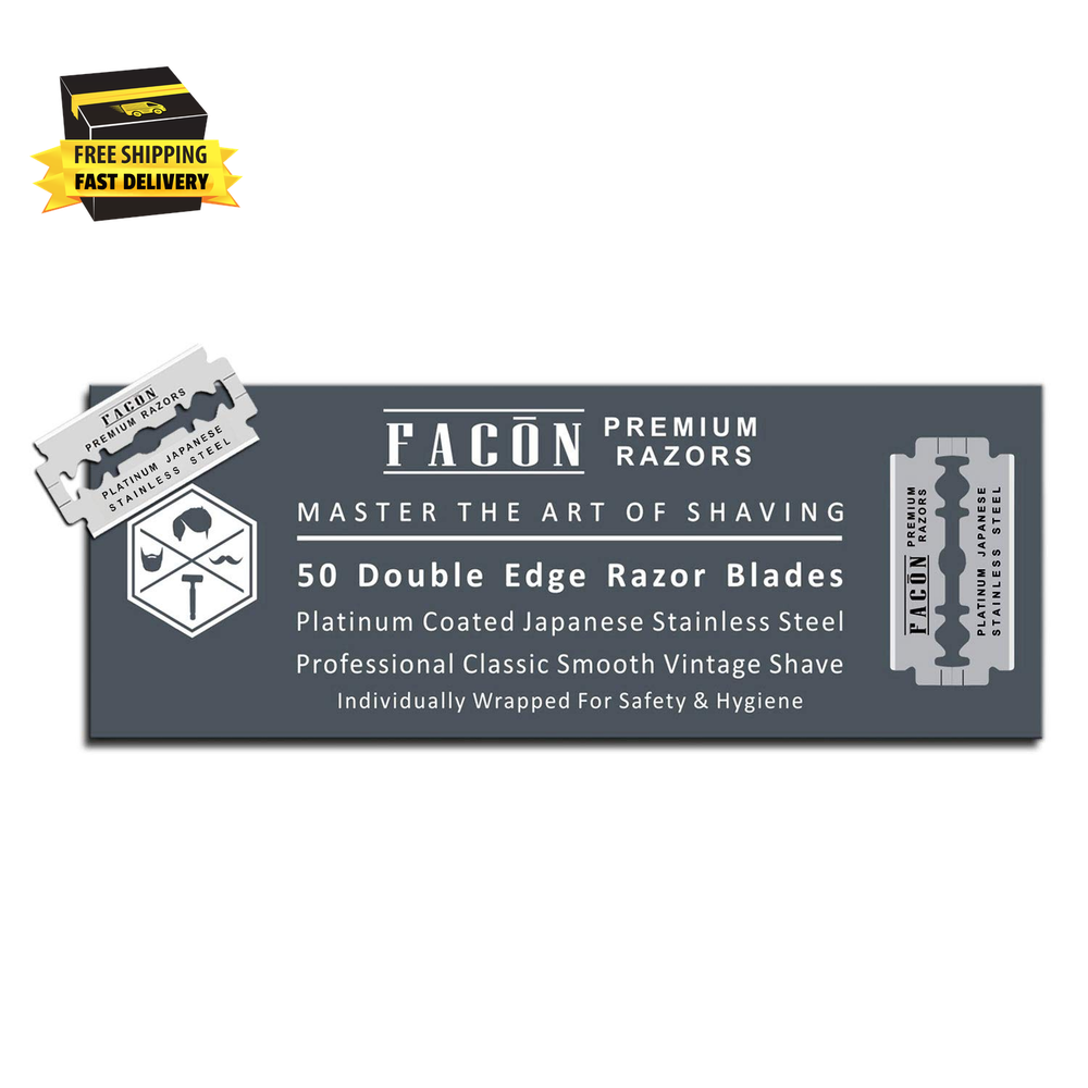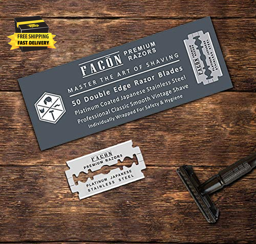Store New Arrivals Add to Favorite View Feedback Contact 50 Facón Platinum Japanese Stainless Steel Double Edge Razor Blades for Safety Razor - Close Smooth Shaving Experience - 200+ Shaves ⭐️⭐️⭐️⭐️⭐️ Description Item model number Facón 50 Product Dimensions 5.5 x 2 x 0.5 inches; 1.76 ounces Age Range (Description) Adult Recommended Uses For Product Shaving Skin Type All Number of Blades 50 Is Discontinued By Manufacturer No SIGNATURE BLADES - Extremely sharp, smooth and comfortable. Barbershop/Salon Favorite! PREMIUM QUALITY - Japanese stainless steel blades, designed for smooth shaving experience ELITE STYLE - Fits all brands of safety/straight/barber razors, Genuine imported materials CONVENIENCE - Each blade is individually wax paper wrapped for safety and hygienic purposes LIFETIME GUARANTEE - Standard lifetime return guarantee, no questions asked. Try it risk-free today! Product Description #1 FACT: CHEAP BLADES DON'T LAST This, on the other hand, ladies & gentlemen, is THE original Facón Premium Razor Blades. Mightily forged from 100% rust-resistant Japanese Stainless Steel, Platinum coated for durability and meticulously designed for a crisp clean smooth shave. With its perfect balance between sharpness and smoothness, you will feel the comfort in your shave. Plus each blade is individually wax paper wrapped for safety and hygienic purposes, good for EPIC 200+ shaves . #2 FACT: SHE CAN TELL THE DIFFERENCE Agreed! The Legendary Facón Premium Razor Blades gives you a Pure Raw Classic shaving experience regardless of how long you've been in this game. Pop your Facón blade in and enjoy a smooth and close shave that's almost impossible to achieve with conventional cartridge razors or electric shavers. It's meant for folks who want to make a statement. That's why straight razors are preferred choice of barbers, salons and hair/beard enthusiasts. And SHE will thank you for it! #3 FACT: I'M SEXY AND I KNOW IT Sure if you say so! But I am thrilled to share the secret. I obviously shave with Facón Premium Razor Blades. It helps my beard, mustache and hairline looking fresh as if I just came from the barbershop. Plus I love to support small businesses. Mom and Pop shop working tirelessly to produce premium quality products and make sure all their customers are 100% satisfied while giving back to the local community. Isn't that awesome? Yup! Welcome to Pure Raw Crisp Clean Classic shaving experience! THE DIFFERENCES 100% Genuine Japanese Stainless Steel (not aluminum) Individually wrapped blades for safety and hygienic purposes Long lasting, very sharp and exceptionally smooth Fits all brands of safety/straight/barber razors Strict in-house quality control, lowest defect rate in the industry Cost effective + No maintenance = Saves time and money ABOUT US We offer the best prices around on high quality products. Our E-store includes media such as books, movies, music and games while offering electronics, toys, sporting apparel, clothing, tools, general home, garden items and more. SHIPPING We are always working hard to ensure your package arrives as soon as possible. Please understand that some factors like weather, high postal traffic, and the performance of shipping companies are outside of our control. We offer free shipping to the lower 48 states and ship within 2 business days of payment, usually sooner. We do not accept P.O. Boxes. Please provide a physical address. For shipping outside of the continental USA, we only use eBay's Global Shipping Program.The item is shipped to KY and then sent to the rest of the world. International customers are responsible for all duties and taxes. Continue to check out in order to calculate costs for shipping the item to your country. Messages regarding eBay's Global Shipping Program MUST be directed at eBay EXCLUSIVELY. RETURNS We offer a 30-Day Return Policy on items which you are not completely satisfied with. You have the option for a full-refund or an exchange of the item. No returns are available on items shipped outside of the USA. PAYMENT We accept PayPal. CONTACT US This page content is yet to come Please ad us to your favorite seller and visit again later Thank You CUSTOMER SATISFACTION We try our very best to make sure every customer is completely satisfied. If there's a problem, message us! We're happy to help. WE ACCEPT Copyright © 2021 AutoDS. | All Rights Reserved