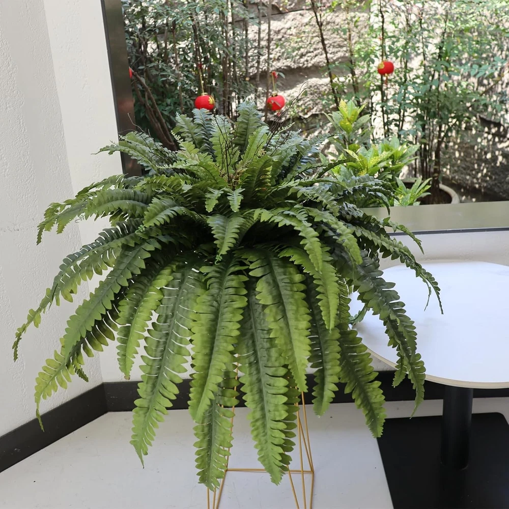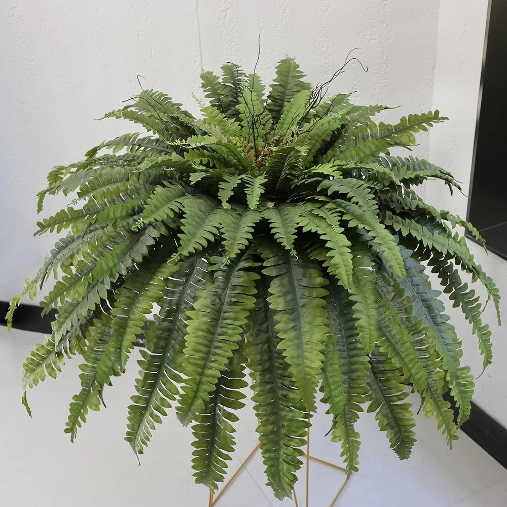 About this item Faux Ferns for Outdoor Planter Large : Our artificial ferns are crafted with high-quality materials, featuring silk leaves and sturdy plastic stems. The artificial ferns for outdoors large are natural-looking, vibrant, washable, and UV resistant Versatile Decor : These faux ferns are perfect for both indoor and outdoor decoration. Add a touch of charm to your home, garden, office, or special events like weddings or birthdays Generous Size : Each bouquet of artificial boston ferns for outdoors large measures 30 inches in height and 50 inches in diameter when spread tip to tip. The flexible stems can be adjusted to create your desired shape Complete Package : You will receive 1 bouquet of lush large fake fern with 98 fronds. The stems are durable and the fronds are gracefully arching with tiny evergreen leaves for a realistic look Artificial Hanging Ferns for Outdoors : Hanging ferns have tiny evergreen leaves. If your artificial ferns arrive bent due to packaging, simply use a hair dryer or steam iron to restore their original shape. Brand: Plant or Animal Product Type: Artificial Fern Color: Dark Green-1p Material: Silk Recommended Uses For Product: home garden planter porch office outdoor indoor decor