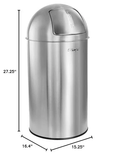 's 50 Liter Matte Silver Trash Bin is the ideal choice for any Home or Kitchen with its stainless steel, easy to clean finish and push top function. This trash bin features an easy to use, spring back, push top lid for fast and efficient disposal. Push lid retracts quickly and smoothly to keep any smell locked inside, keeping your home and kitchen fresh and clean. This bin comes with a removable inner bucket with a handle for no mess, no hassle trash disposal. Large 50 Liter capacity holds more food and waste while the domed lid prevents overflow, perfect for large families! Keep your home clean and tidy with this classic cylindrical push top trash bin by . 50 Liter/ 13 Gallon Capacity Material: 18/0 Stainless Steel, Iron Inner Bin Color: Matte Silver Push Bin Lid Removable Inner Bin with Carry Handle