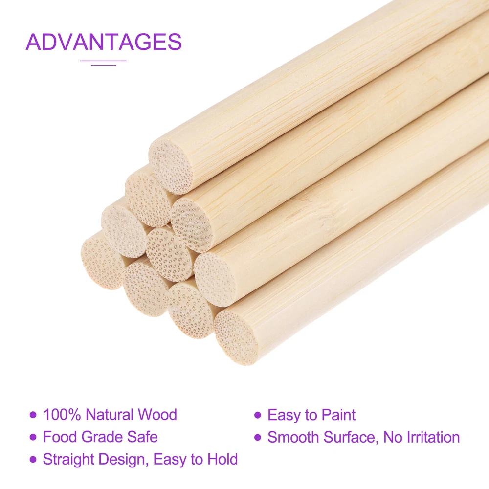 Document APPLICATION: Wooden craft sticks are widely used in making diy wooden crafts and home decorations such as bridges, fairy houses, load-bearing parts on airplane or ship models, as well as for paint mixing and chemical stirring. They are perfect for kid's activities, home improvement projects or professional use.ADVANTAGES:Wooden Dowel Rods are made of natural Birch wood, which will not easily break, and are easy to paint, glue, drill and cut.PACKAGE CONTENT:Paint stirring stick size:10mm x 300mm/3/8" x 12"(L*W)Thickness: 10mm/3/8"Color: Wood Color50 pack of craft sticksNOTE: Please pay attention to the size of the wooden sticks before purchasing, and please check the packaging after receiving the extra-long craft sticks. 50 Pack 3/8" x 12" Wooden Dowel Rods for Making DIY Craft,Wood Color APPLICATION: Wooden craft sticks are widely used in making diy wooden crafts and home decorations such as bridges, fairy houses, load-bearing parts on airplane or ship models, as well as for paint mixing and chemical stirring. They are perfect for kid's activities, home improvement projects or professional use. ADVANTAGES :Wooden Dowel Rods are made of natural Birch wood, which will not easily break, and are easy to paint, glue, drill and cut. PACKAGE CONTENT: Paint stirring stick size:10mm x 300mm/3/8" x 12"(L*W) Thickness: 10mm/3/8" Color: Wood Color 50 pack of craft sticks NOTE: Please pay attention to the size of the wooden sticks before purchasing, and please check the packaging after receiving the extra-long craft sticks. Hot Item Payment 1.We accept eBay payment . 2.Payment must be received within 7 business days of auction closing. Shipping 1.We ship to your eBay or Paypal address. Please make sure your eBay and Paypal address is correct before you pay. 2.Items will be shipped within 1-3 business day when we received payment. 3.Delivery time depends on destination and other factors. Description Policy 50 Pack 3/8" x 12" Wooden Dowel Rods for Making DIY Craft,Wood Color APPLICATION: Wooden craft sticks are widely used in making diy wooden crafts and home decorations such as bridges, fairy houses, load-bearing parts on airplane or ship models, as well as for paint mixing and chemical stirring. They are perfect for kid's activities, home improvement projects or professional use. ADVANTAGES :Wooden Dowel Rods are made of natural Birch wood, which will not easily break, and are easy to paint, glue, drill and cut. PACKAGE CONTENT: Paint stirring stick size:10mm x 300mm/3/8" x 12"(L*W) Thickness: 10mm/3/8" Color: Wood Color 50 pack of craft sticks NOTE: Please pay attention to the size of the wooden sticks before purchasing, and please check the packaging after receiving the extra-long craft sticks. Hot Item Payment 1.We accept eBay payment . 2.Payment must be received within 7 business days of auction closing. Shipping 1.We ship to your eBay or Paypal address. Please make sure your eBay and Paypal address is correct before you pay. 2.Items will be shipped within 1-3 business day when we received payment. 3.Delivery time depends on destination and other factors.