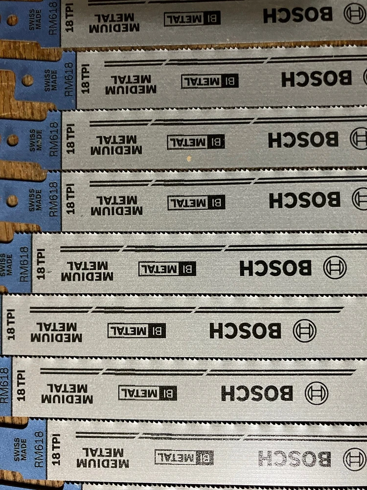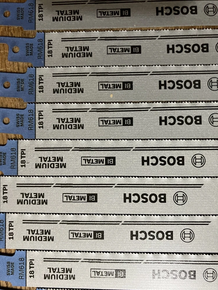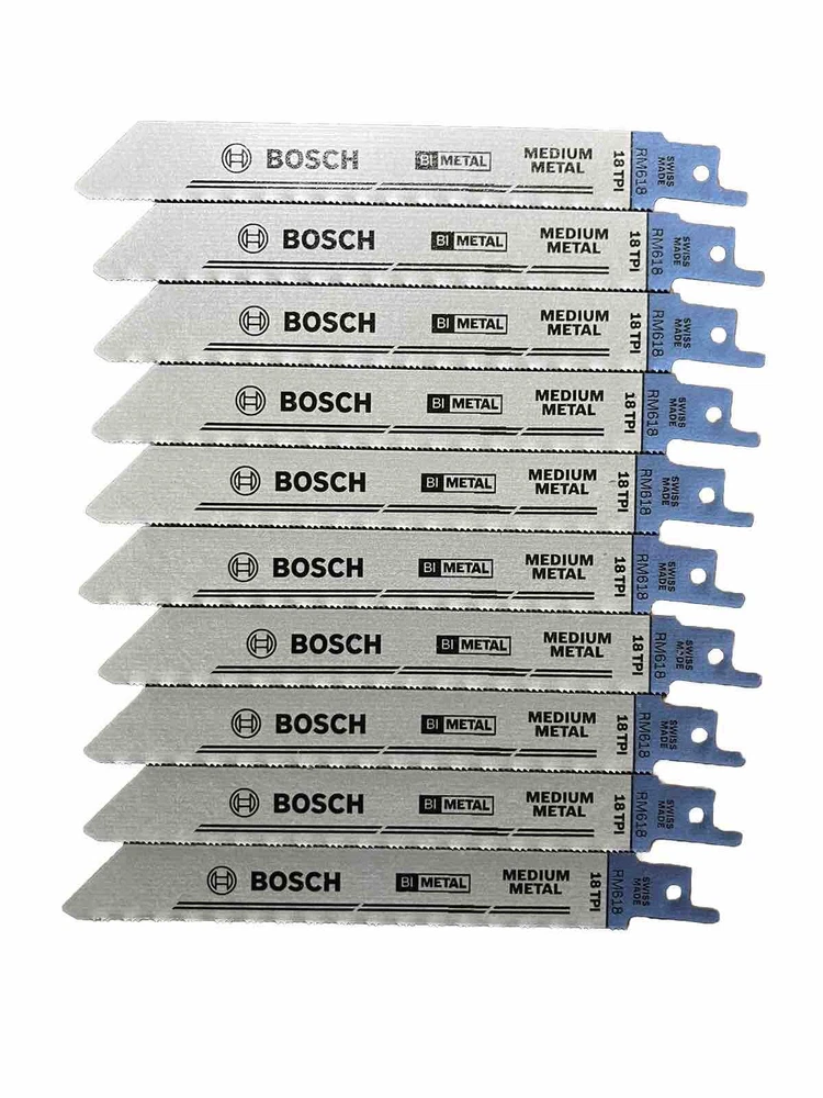 This listing is for a 50-pack of Bosch 6-inch 18 TPI reciprocating saw blades , designed for fast and precise cutting in metal, wood, and plastic. These high-performance bi-metal blades offer durability, flexibility, and long-lasting use. Features: Brand: Bosch Quantity: 50 blades Length: 6 inches Teeth Per Inch (TPI): 18 Material: Bi-Metal for enhanced strength and heat resistance Compatibility: Universal fit for most reciprocating saws Ideal For: Cutting metal, wood, PVC, and other materials Why Choose Bosch 6" 18 TPI Blades? Long-lasting and break-resistant bi-metal construction Smooth and efficient cutting performance Designed for both professional and DIY use Fast shipping available. Order now to get high-quality Bosch saw blades for your cutting needs!