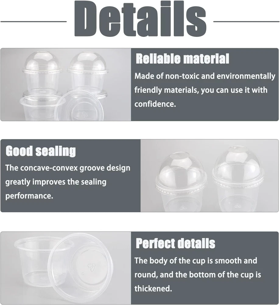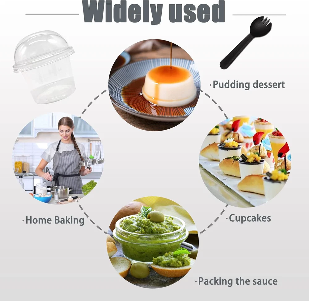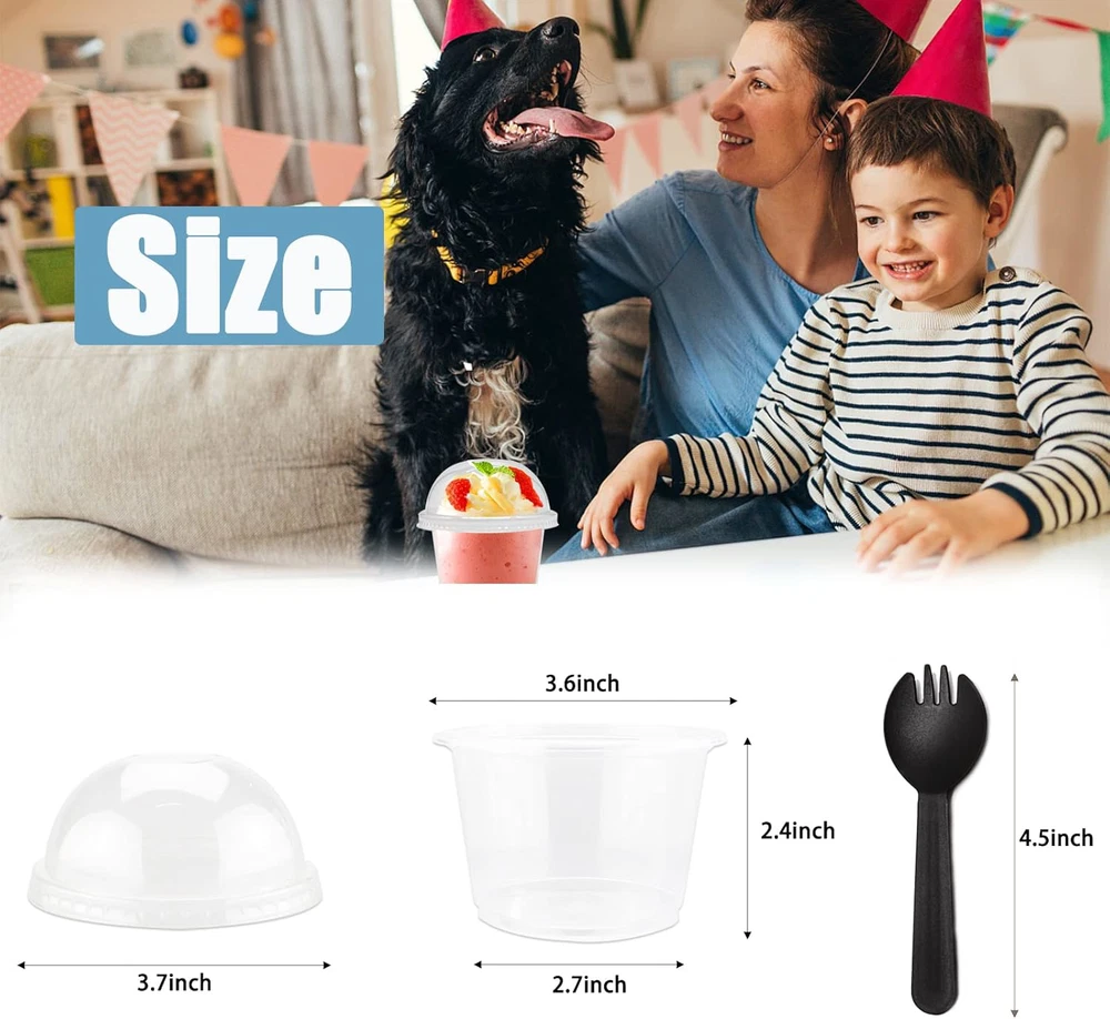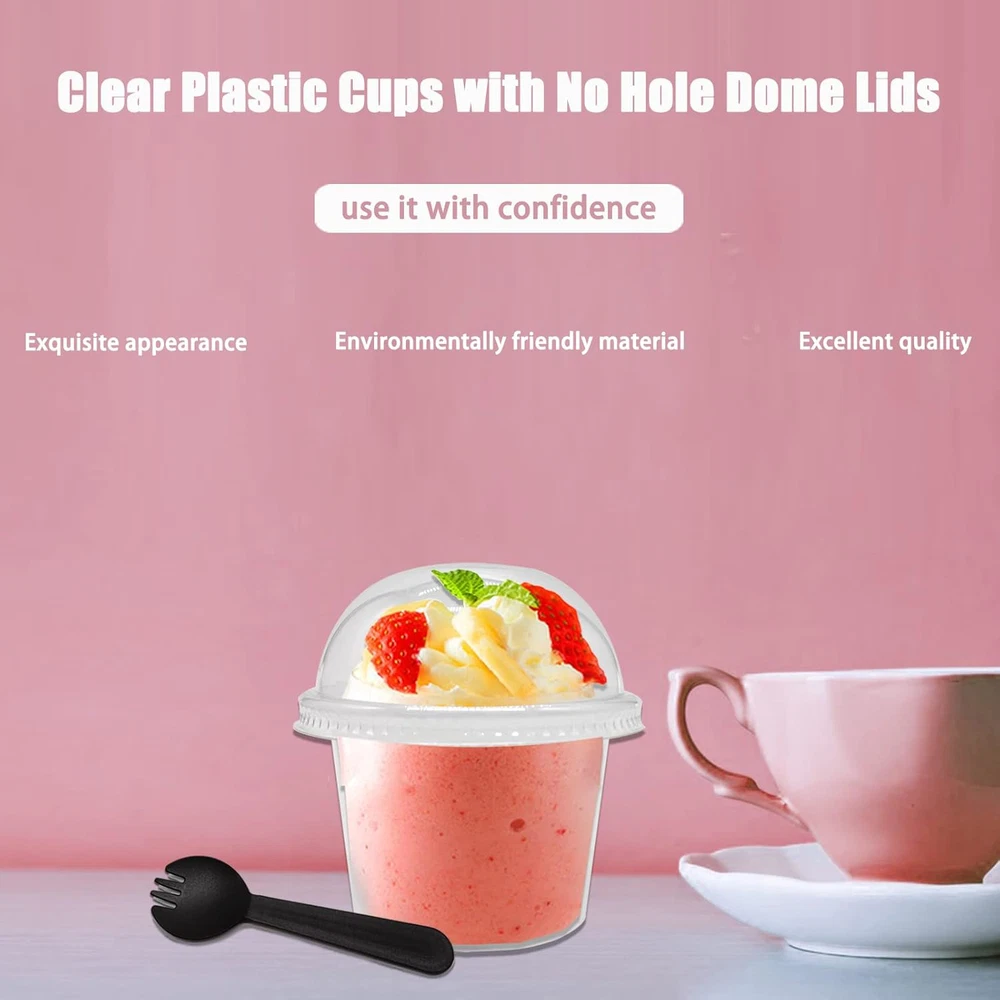 Fast Shipping Great Customer Support Satisfaction Guaranteed DESCRIPTION Shipping Shipping Shipping All domestic packages are shipped for Free (Unless other shipping method was selected during the checkout) Most items ship and arrive much sooner than the estimate delivery date. Usually within 2-3 days from payment. However, we have longer estimates to compensate for the occasional delay or supply chain breakdown. We do not accept P.O. BOXES - PLEASE PROVIDE A PHYSICAL ADDRESS Return Return Return In the event that you would like to return your purchase, we allow returns that are processed within the defined return date (the return date is to be found in the return policy/shipping and handling section) Please contact us for a return authorization and the return shipping address. Payment Payment Payment PayPal is our preferred method of payments it's the quickest, easiest and most secure way to pay for your goods or services online. PayPal offers buyer and seller protection should there be a problem. If you do not have a PayPal account, to get started and buy your first item with us is very easy. Simply click on the 'Buy It Now' button and follow the eBay checkout steps. Select PayPal as the payment method you then will be given the chance to enter your card details in to PayPal's secure checkout in order to pay for your order. Once the payment has been made, you will then be given the opportunity to make your own PayPal account to make paying for your items in the future very easy. Should there be a problem with payment please do let us know. Feedback Feedback Feedback Customer satisfaction is very important to us. If you have any problem with your order,please contact us and we will do our best to make you satisfied, please do not leave a negative feedback before we resolve your problem. We guarantee that your issue will be solved quickly. As long as you are happy with your purchase of , please leave us a positive feedback. Your feedback is very important to us it affects our search placement on eBay. We will leave a positive feedback for you in return automatically once we receive your feedback. Contact Us Contact Us Contact Us If you have any queries, please contact us via ebay. We usually respond within 24 hours on weekdays. Thank you for visiting our ebay store! Package Content:You will receive 50 count 8oz dessert cups,50 count non-perforated domes and 50 black spoons.They are of high quality and beautiful in appearance,and can meet your daily needs. Premium Material:The clear plastic cup with dome lid is made of high quality,transparent,strong and durable plastic.No smell,clean and hygienic.You can use it with confidence. Product Size:Each dessert cup has a top diameter of 3.6 inch,a bottom diameter of 2.7 inch,and a total height of 3.9 inch.The spoon is 4.5 inch long.The size is right,easy to carry when going out. Good Design:Clear plastic cups are not hard plastic,it is durable and not breakable.The rolled edge provides a comfortable drinking experience and ensures the lid fits snugly and looks premium. Various Occasions:Suitable for many occasions such as weddings,baby showers,birthdays,bakery and catering events,picnics,parties.Delicate clear plastic cups make your desserts look more tasteful. Product Details Quantity:50 Pcs. Material:Plastic. Capacity:8oz. Color:Transparent. The dome lid is high enough and the delicate clear plastic cups make your homemade desserts look pretty,tasteful and professional. The size is suitable for children and adults.The rolled edge design ensures that the lid fits snugly without worrying about bugs or dust. 50 Pcs 8oz Clear Plastic Dessert Cups with Dome Lids and Sporks Click here to see description Fast Shipping Great Customer Support Satisfaction Guaranteed DESCRIPTION Shipping All domestic packages are shipped for Free (Unless other shipping method was selected during the checkout) We ship within two business days of payment, usually sooner Standard FREE shipping takes between 3-5 business days Expedited shipping takes between 2-3 business days Overnight shipping takes between 1-2 business days We do not accept P.O. BOXES - PLEASE PROVIDE A PHYSICAL ADDRESS We Ship Globally using ebay's GSP, the item is sent to a logistic center in KY and shipped from there to the rest of the world. International customers are responsible for all duties and taxes Contact your local authority for questions related to the amount of duties or taxes you will be responsible for Return In the event that you would like to return your purchase, we allow returns that are processed within the defined return date (the return date is to be found in the return policy/shipping and handling section) Please contact us for a return authorization and the return shipping address. Please contact us for a Return Merchandise Authorization (RMA) number. We advise you to use a reputable carrier service when returning your goods. Please pack all returns appropriately. We ship globally Via eBay's global shipping program (GSP). Thus we don't cover returns for items shipped globally. Buyers returning such items will be refunded ONLY for the item's cost and not for the shipping. please check the Voltage information and make sure it matches the one in your country. In case it's not stated in the description, do ask us. Payment PayPal is our preferred method of payments it's the quickest, easiest and most secure way to pay for your goods or services online. PayPal offers buyer and seller protection should there be a problem. If you do not have a PayPal account, to get started and buy your first item with us is very easy. Simply click on the 'Buy It Now' button and follow the eBay checkout steps. Select PayPal as the payment method you then will be given the chance to enter your card details in to PayPal's secure checkout in order to pay for your order. Once the payment has been made, you will then be given the opportunity to make your own PayPal account to make paying for your items in the