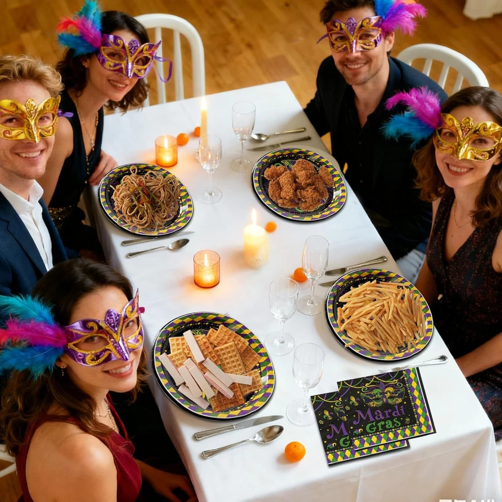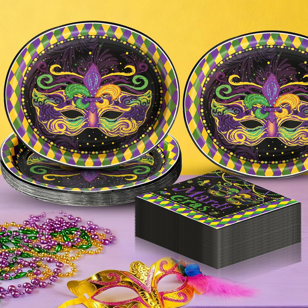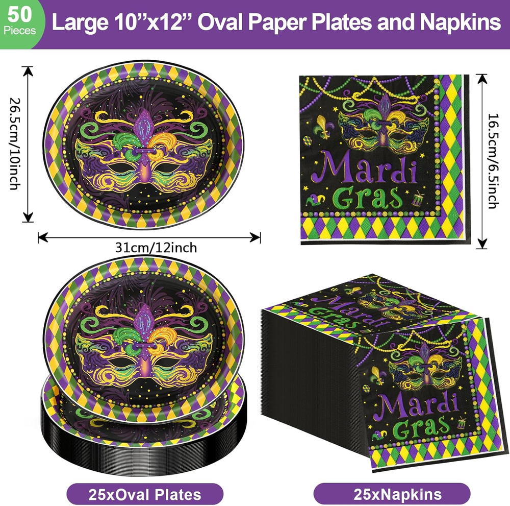 Store New Arrivals Add to Favorite View Feedback Contact Fast deliveries to the customer's home Quality customer service John Make the customers happy! 50 Pcs Mardi Gras Party Large 12" X 10" Oval Paper Plates and Napkins Disposable Heavy Duty Paper Plates and Napkins for Mardi Gras Party Supplies Description COMPLETE SET: 50-piece Mardi Gras party set includes 25 oval paper plates and 25 matching napkins featuring vibrant masquerade mask design in traditional colors GENEROUS SIZE: Large 10"x12" oval plates provide ample space for serving party foods and treats at your Mardi Gras celebration FESTIVE DESIGN: Stunning masquerade mask pattern with purple, green, yellow, and gold accents on black background with decorative harlequin border CONVENIENT USE: Disposable paper construction makes party cleanup quick and easy while maintaining an elegant carnival appearance PERFECT FOR PARTIES: Ideal tableware for Mardi Gras celebrations, masquerade balls, carnival themes, and New Orleans-inspired festivities Product description Unit Count 50.0 Count Style Mardi Gras Is Microwaveable No Special Feature Eco-Friendly Pattern Mask Material Paper Is Dishwasher Safe No Item Weight 1.8 pounds Shape Oval Size 12*10inch Is Discontinued By Manufacturer No Net Content Weight 1.8 Pounds Product Dimensions 12"L x 10"W x 2"Th Included Components 25 napkins, 25 oval plates ABOUT US We offer the best prices around on high quality products. Our E-store includes media such as books, movies, music and games while offering electronics, toys, sporting apparel, clothing, tools, general home, garden items and more. SHIPPING We are always working hard to ensure your package arrives as soon as possible. Please understand that some factors like weather, high postal traffic, and the performance of shipping companies are outside of our control. We offer free shipping to the lower 48 states and ship within 2 business days of payment, usually sooner. We do not accept P.O. Boxes. Please provide a physical address. For shipping outside of the continental USA, we only use eBay's Global Shipping Program. The item is shipped to KY and then sent to the rest of the world. International customers are responsible for all duties and taxes. Continue to 'check out' to calculate costs for shipping the item to your country. Messages regarding eBay's Global Shipping Program MUST be directed at eBay EXCLUSIVELY. RETURNS We offer a 30-Day Return Policy on items in which you are not completely satisfied with. You have the option of a full-refund or an exchange of the item. No returns are available on items shipped outside of the USA PAYMENT We accept PayPal. CONTACT US This page content is yet to come Please ad us to your favorite seller and visit again later Thank You CUSTOMER SATISFACTION We try our very best to make sure every customer is completely satisfied. If there's a problem, message us! We're happy to help. WE ACCEPT