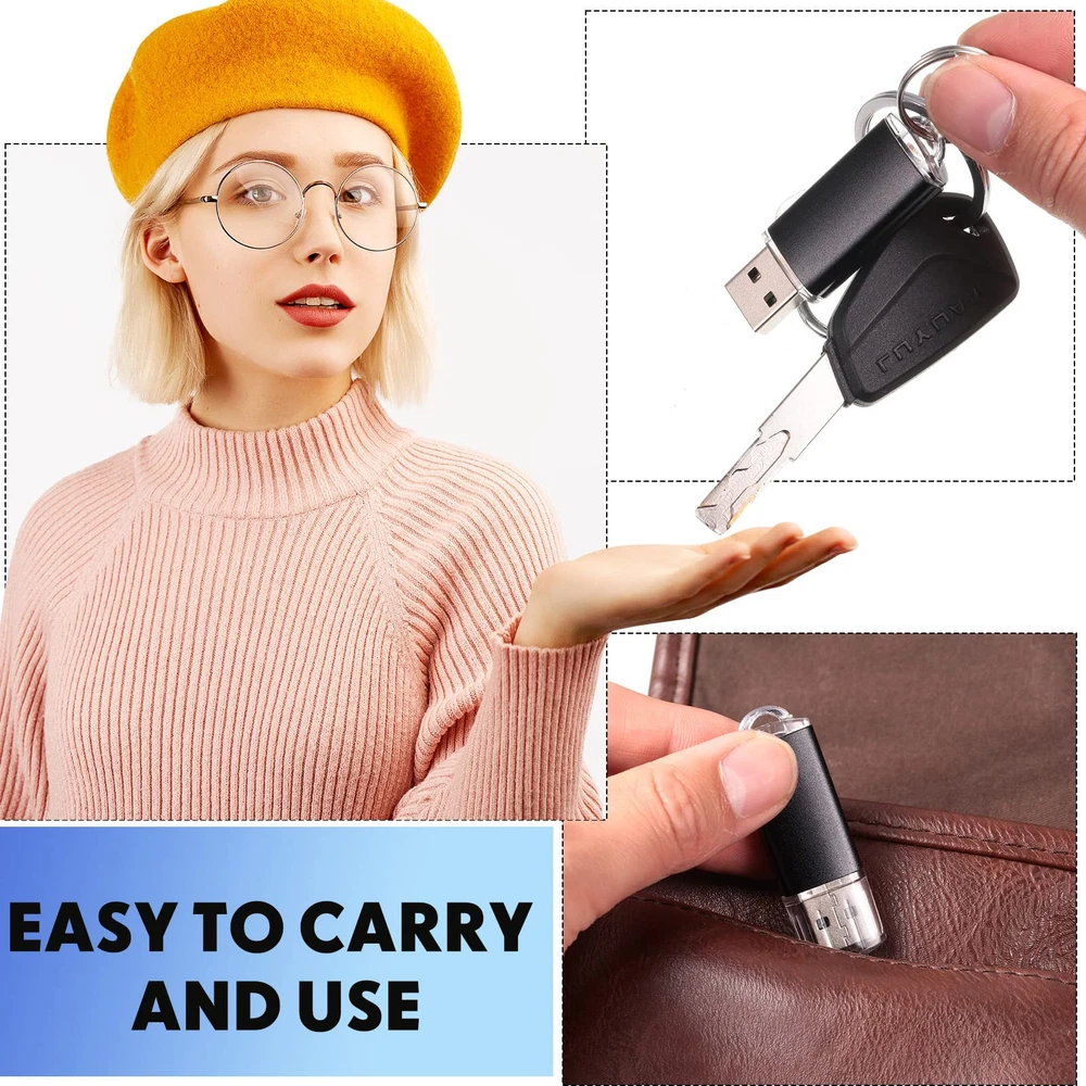 Feature: Widely applied: the computer flash drives can help you identify, mark and store different content. Digital data storage, transfer and sharing for school, business, university, commercial, photographic and other uses. Lightweight and Portable: the mini flash drive has a delicate and compact appearance, with a mini size of 2.2 x 0.67 x 0.3 inches, plus a black lanyard, it is convenient for the USB thumb drive to be at your service at any time. Versatile: USB thumb drives store data for school, car music, business or daily usage. The data includes music, video, photos, movies, manuals, software, etc. Specifications: Material: plastic Color: black Size: about 2.2 x 0.67 x 0.3 inches (5.6 x 1.7 x 0.8 cm) Chip: flash memory chip Interface: USB 2.0 compatible Writing speed: 3mb/s-7mb/s Reading speed: 10mb/s-20mb/s Package include: 50 x 64GB USB flash drives Capacity standard: Flash memory producers are using decimal arithmetic: 1KB = 1000Bit, 1MB = 1000KB, 1G = 1000MB Calculated, the operating system using binary arithmetic: 1KB = 1024Bit, 1MB = 1024KB, 1GB = 1024MB So the actually capacity is 64GB=approximately 58.5GB Warm notes: Please allow slight size error due to manual measurement. The colors may exist slight difference due to different screen. Bulk Flash Drive: you will get 50 pieces of 64GB USB 2.0 flash drives and 50 lanyards, to meet your daily storage and transfer needs for music/video/photos/files/compressed packages; Small and light body, easy to carry and use Safe and Reliable: the USB 2.0 thumb drive adopts flash memory chip, which makes the data transmission and storage process more secure and stable, with faster speed and better compatibility; 64GB flash drives compatible with USB2.0 backward USB 1.1, no need to install additional drivers Plug and Play: USB drives bulk do not need to install any software, just simply plug into the USB port; When the zip drive is working, the red LED will light up, quickly read data files in different formats, improve your work efficiency Portable Flash Drives: the shell of the flash drives is designed with a hat, which can provide effective protection for your USB port, and the end of the drive has a ring for a lanyard or key ring, and a lanyard for you, which is more convenient to carry around Widely Compatible and Plug and Play: compatible with USB 2.0/1.1/1.0, without any software, can be applied for PC, TV, speaker, computer, notebook, car audio and other USB devices; An ideal choice for companies, schools, weddings, customers, or a good choice for business gifts