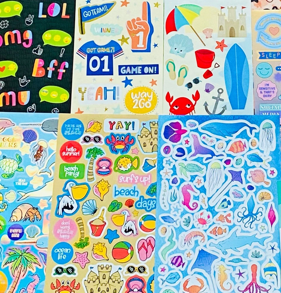 Hello SUMMER Limited Edition Mixed Sticker Lot | The Ultimate Kit | Qty. 50+ Sticker Sheets High Quality Only! Fun Assortment of Puffy, Scrapbook, Cartoons, Bubble, Pop Up Stickers Packs For Everyone! The Pack will include 50+ Sticker Sheets! I have included a large variety of pictures of the assortment available. The pictures give you an idea of what you will be receiving. Please Note: You will not receive everything pictured. Please contact me with any special requests.