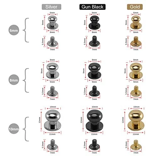 Exclusive Offers Await! Welcome to our stores! Satisfaction is what we guarantee. 50 Sets Chicago Screws Round Head Button Cross Screw Stud Rivet for DIY Craft Leather Repairs Decoration Accessories (Silver,6mm) Product Overview 50 Sets Chicago Screws Round Head Button Cross Screw Stud Rivet for DIY Craft Leather Repairs Decoration Accessories Key Features Package include : 50 Pcs Round Head Button and 50 pcs Cross screws Size : Head Diameter : 6mm. Round Base Diameter : 8mm. Height : 9mm. Strong Durable : Made of zinc alloy and electroplated, resist wear, surface is smooth and polished. Can be used for a long time. Easy to install : punch a hole in the leather and install button stud and tighten with a Cross screwdriver. Wide Application :For leather, belts, leather bags, purses, shoes, clothes,DIY project etc. Payment Information ★ Secure payments through eBay. ★ We accept PayPal and all major credit cards. ★ Immediate payment required upon purchase. ★ For any payment issues, please contact our support team. Shipping Information ★ Orders are shipped to the address provided during checkout. Please verify your address. ★ We process orders within 1 business day (excluding weekends and holidays). ★ Standard delivery time is 3-5 business days. ★ We use trusted carriers like UPS, FedEx, and USPS. ★ Shipping is only available within the contiguous United States. No shipping to Alaska, Hawaii, Puerto Rico, or PO Boxes. ★ If there are any shipping delays, please contact us for support. Return Policy ★ We offer a 30-day return policy. ★ If you are not satisfied with your purchase, you can return it within 30 days for a full refund. ★ Please contact us to obtain the return address before sending back any items. ★ Items must be returned in their original condition and packaging.