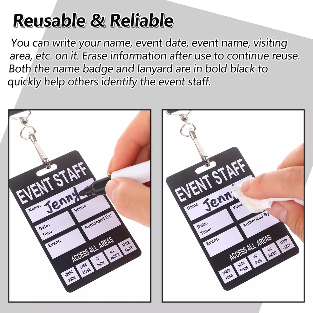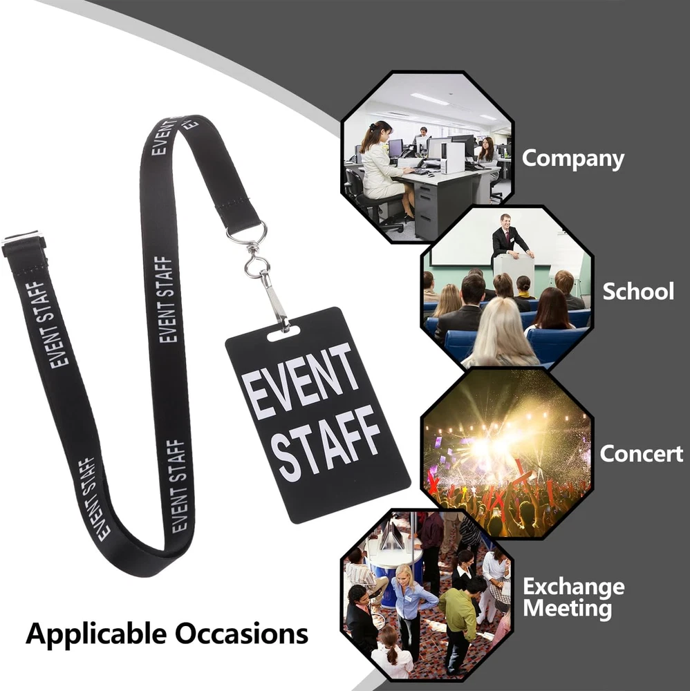 Package Includes: you will get 50 pcs of event staff passID cards and 50 pcs black lanyards.Sufficient quantities to meet your daily needs. High-quality material: The event staff badge with lanyard is made of PVC material, which is not easy to break and deform. And the lanyard with metal buckle is made of polyester, which is soft and wear-resistant, not easy to fade and can be used repeatedly for a long time. Appropriate size:The size of each event staff plastic badge is about 85.5x54mm/3.37x2.13 inches, the appropriate size is convenient for you to carry around without taking up too much space. The length of the lanyard is about 17.72 inches (the size after being folded in half) to fit most people. Reusable: Event staff cards are durable and suitable for long-term repeated use; you can write your name, event date, event name, visiting area, etc. on it. Erase information after use to continue reuse. Both the name badge and lanyard are in bold yellow to quickly help others identify the event staff. Wide Application: The event staff lanyard with badge is suitable for schools, fundraisers, parties, churches, summer camp staff, companies, event guides or other occasions. Keep your company and your party safe by identifying things like names. Product Description