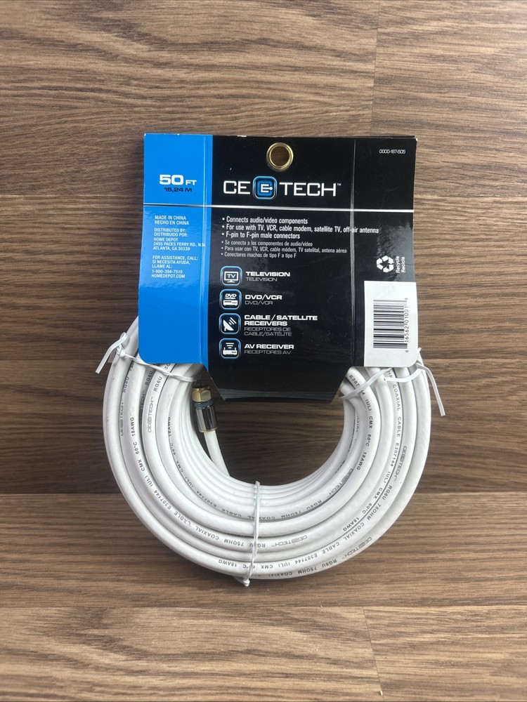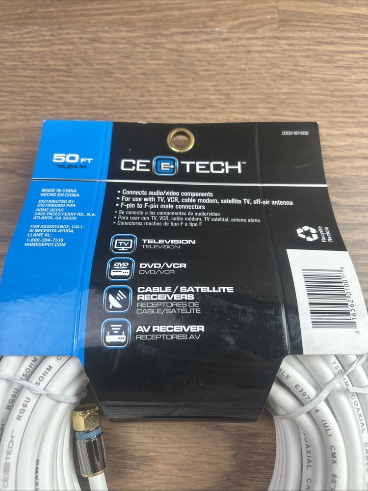 This commercial electric RG-6 quad shielded coaxial cable is perfect for connecting audio and video devices. With a length of 50ft, it provides ample space for wiring and organization. The white color allows it to blend in with any home entertainment setup. The cable features shielded audio cables, ensuring a high-quality signal transmission. It is compatible with Rg6 connectors and is ideal for use in consumer electronics, TV, video, and home audio. This electronic cable is a must-have for anyone looking to enhance their audio and video experience. The photos are the best description. You will receive what I only show in the photos If you have questions let me know before buying the item Thanks and regard