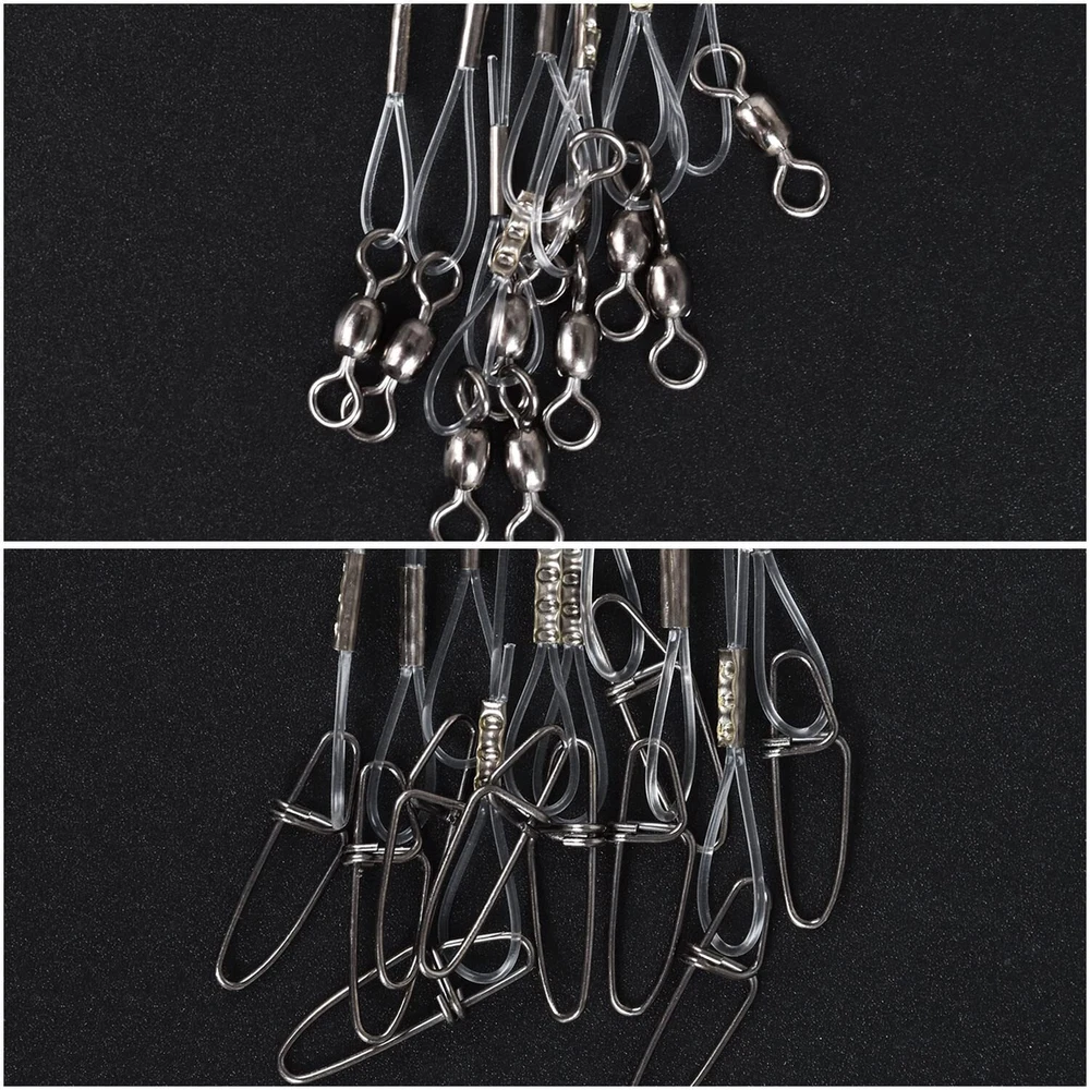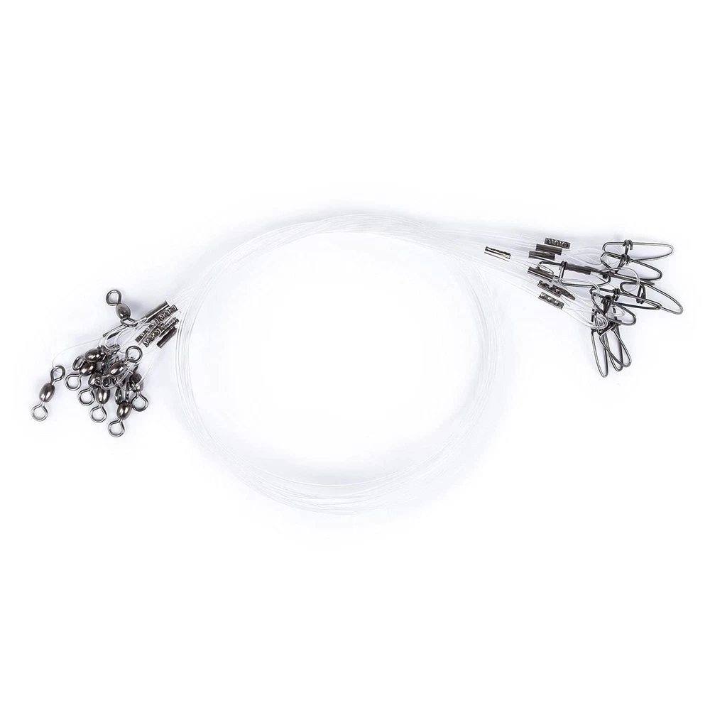 🐟 More Sensitive: Fluorocarbon leader is non-permeable to water and therefore does not absorb water. As a result, fluorocarbon leader does not stretch. This makes the rigs much more sensitive, even to the slightest bites. 🐟 Higher Abrasion Resistance: The fluorocarbon fishing leaders here are more abrasion-resistant than nylon mono fishing leaders. Also, this fluorocarbon leader is thinner in diameter than the monofilament leader of the same breaking strength. 🐟 Invisible: Light refraction factor of fluorocarbon is very similar to that of freshwater, making these fluorocarbon leaders almost invisible in the water. fluorocarbon fishing leader enables fishermen to successfully 'serve' a bait/lure even to the wariest fish and land the fish. 🐟 Sink Faster: In water, fluorocarbon leader sinks faster than nylon monofilament leader, which is very important in many situations. With freshwater/saltwater fluorocarbon fishing leader, you'll notice a real jump in your catch rate. 🐟 About The Product: This package comes with TWENTY pieces of 20" fluorocarbon fishing leaders, and the strength of the fluorocarbon leader line is 50 pounds. If you have any questions or concerns, feel free to us.