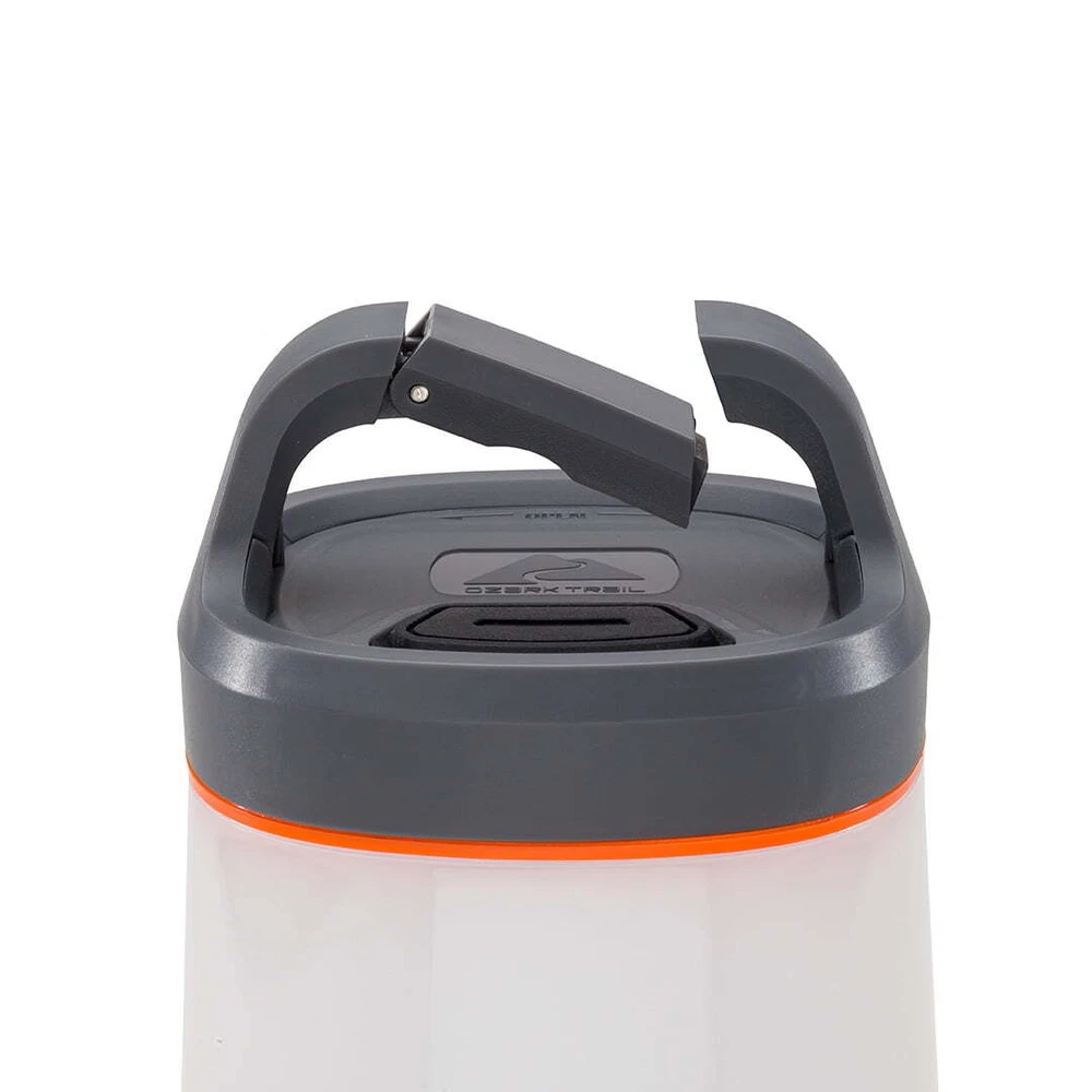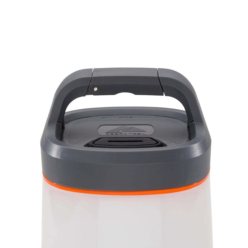 Illuminate your outdoor experiences with the versatile Ozark Trail 500 Lumen Lantern. With four modes—high, medium, low & candle flicker —this powerful LED lantern ensures optimal lighting for camping or any outdoor adventure. Powered by three AA batteries, this reliable companion boasts an 8-hour runtime on high and 42 hours on low, meeting your extended lighting needs. Whether hanging from above with its convenient hook or resting on a table, the Ozark Trail lantern offers versatile lighting options. The ultra-bright LED eliminates the need for small flashlights, making it perfect for activities such as cooking, camping, backyard parties, or evening tailgates. Gear up for your next adventure with the Ozark Trail 500 Lumen Lantern—an essential, durable, and practical outdoor lighting. High: 500 Lumens, 8-hour run time, 14-meter beam distance Medium: 120 lumens, 19-hour run time, 7-meter beam distance Low: 42 lumens, 42-hour run time, 4-meter beam distance Candle Flicker Mode: variable lumen output 3 AA batteries not included 1-meter impact & IPX4 water-resistant Durable Construction: Ozark Trail ensures your lantern withstands the rigors of outdoor use for long-lasting reliability Portable and Practical: Compact design makes it easy to carry, ensuring you're always prepared for your next adventure. Camping Gear Essential: Consider the Ozark Trail 500 Lumen Lantern as an essential part of your camping equipment. Affordable Adventure Gear: Ozark Trail provides practical and budget-friendly solutions, making high-quality adventure gear accessible to all. Dimensions: 3.9" x 6.7" x 3.9" (9,9 cm x 17,1 cm x 9,9 cm) Model Number: 21220