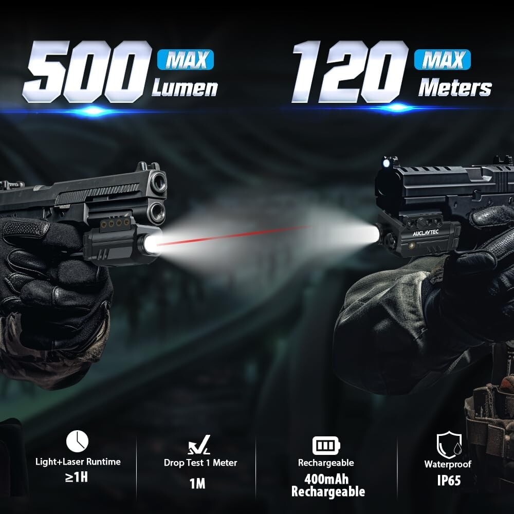 500 Lumen Red Beam Sight & Tactical Flashlight Combo for Glock & Picatinny Rail
