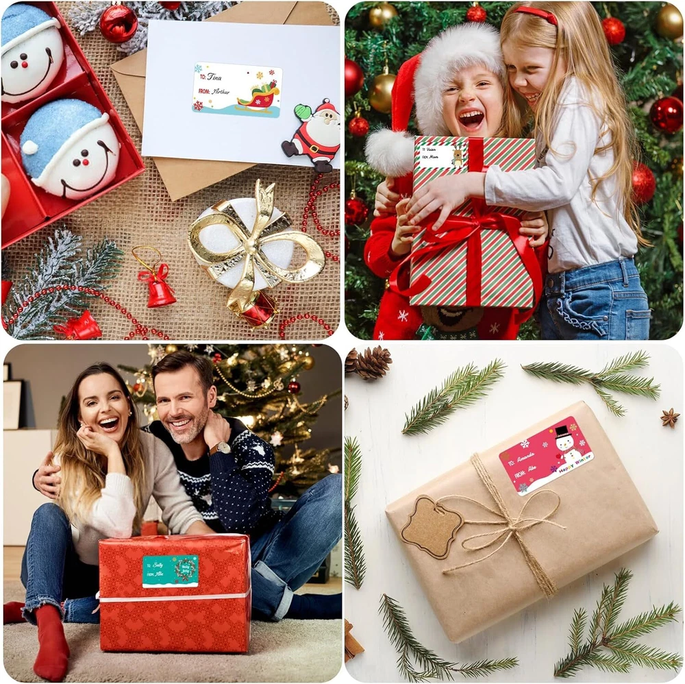 500 PCS Christmas Gift Tags Christmas Santa Claus Stickers Self Adhesive Cartoon