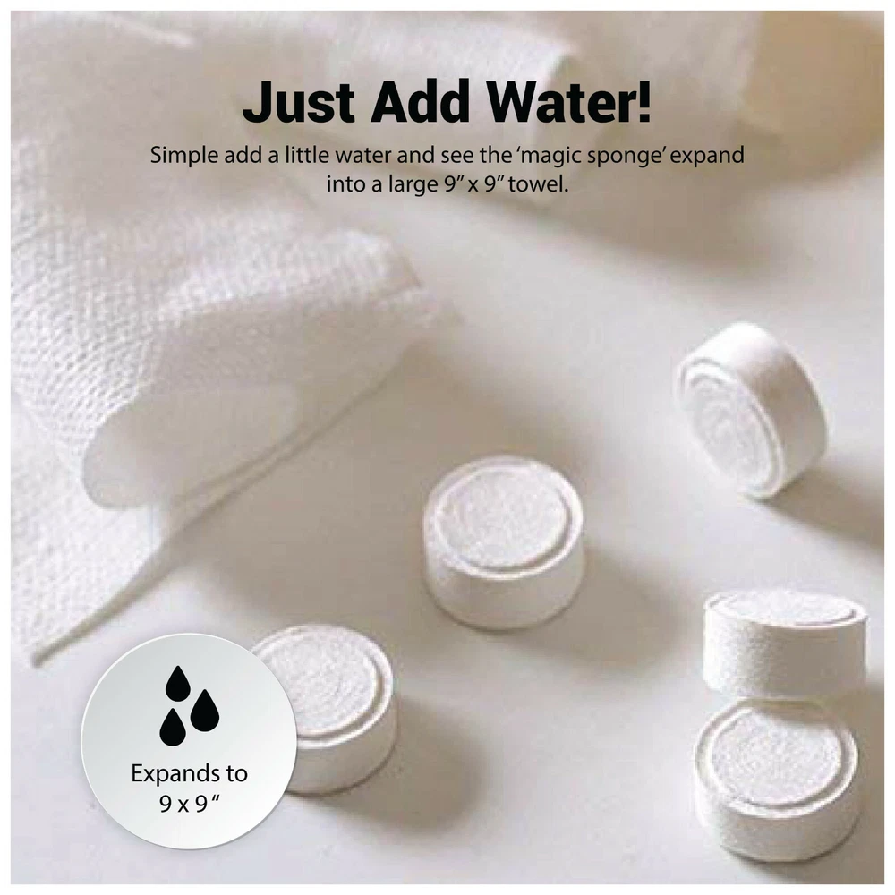500 Pack Magic Towel Compressed Towel w/ Canister Features 100% Biodegradable Quick and easy to use, a clean fresh towel every time Never expires, store in a cool/dry place Free of chemicals and detergents Convenient for travel, just add water Come with a clear plastic canister for your convenience Environmental friendly packaging (no individual wraps) Specifications Dimensions: 9"x 9" expanded Color: White Material: Cotton Items Included Five Hundred (500) compressed towels One (1) Clear Plastic Canister Payment Shipping Returns About Us Payment Shipping Returns About Us We accept PayPal, major credit cards, and other methods supported by eBay Managed Payments. We offer FREE shipping on all orders! Your order will be dispatched within 24 hours receiving payment and you should expect to receive it two to five days after dispatch. If you are not completely satisfied within 30-days of your purchase, you can return the product and get a full refund or replacement (your choice). Our return process is eBay managed and very easy to follow. We will be responsible for the return shipping cost of the damaged or wrong items. We are a family owned business located in the beautiful western Pennsylvania. We began as a wholesale jewelry and fashion importer. After successfully selling a few precison jewelry scales on a major online marketplace in 2009, we decided to transform into a professional weight scale distributor. Then soon expanded into other great product categories. See our other items Features ---100% Biodegradable ---Quick and easy to use, a clean fresh towel every time ---Never expires, store in a cool/dry place ---Free of chemicals and detergents ---Convenient for travel, just add water ---Come with a clear plastic canister for your convenience ---Environmental friendly packaging (no individual wraps) Specifications ---Dimensions: 9"x 9" expanded ---Color: White ---Material: Cotton Items Included ---Five Hundred (500) compressed towels ---One (1) Clear Plastic Canister 500 Pack Magic Towel Compressed Towel w/ Canister Features 100% Biodegradable Quick and easy to use, a clean fresh towel every time Never expires, store in a cool/dry place Free of chemicals and detergents Convenient for travel, just add water Come with a clear plastic canister for your convenience Environmental friendly packaging (no individual wraps) Specifications Dimensions: 9"x 9" expanded Color: White Material: Cotton Items Included Five Hundred (500) compressed towels One (1) Clear Plastic Canister Payment We accept PayPal, major credit cards, and other methods supported by eBay Managed Payments. Shipping We offer FREE shipping on all orders! Your order will be dispatched within 24 hours receiving payment and you should expect to receive it two to five days after dispatch. Returns If you are not completely satisfied within 30-days of your purchase, you can return the product and get a full refund or replacement (your choice). Our return process is eBay managed and very easy to follow. We will be responsible for the return shipping cost of the damaged or wrong items. About Us We are a family owned business located in the beautiful western Pennsylvania. We began as a wholesale jewelry and fashion importer. After successfully selling a few precison jewelry scales on a major online marketplace in 2009, we decided to transform into a professional weight scale distributor. Then soon expanded into other great product categories. See our other items Features 100% Biodegradable Quick and easy to use, a clean fresh towel every time Never expires, store in a cool/dry place Free of chemicals and detergents Convenient for travel, just add water Come with a clear plastic canister for your convenience Environmental friendly packaging (no individual wraps) Specifications Dimensions: 9"x 9" expanded Color: White Material: Cotton Items Included Five Hundred (500) compressed towels One (1) Clear Plastic Canister