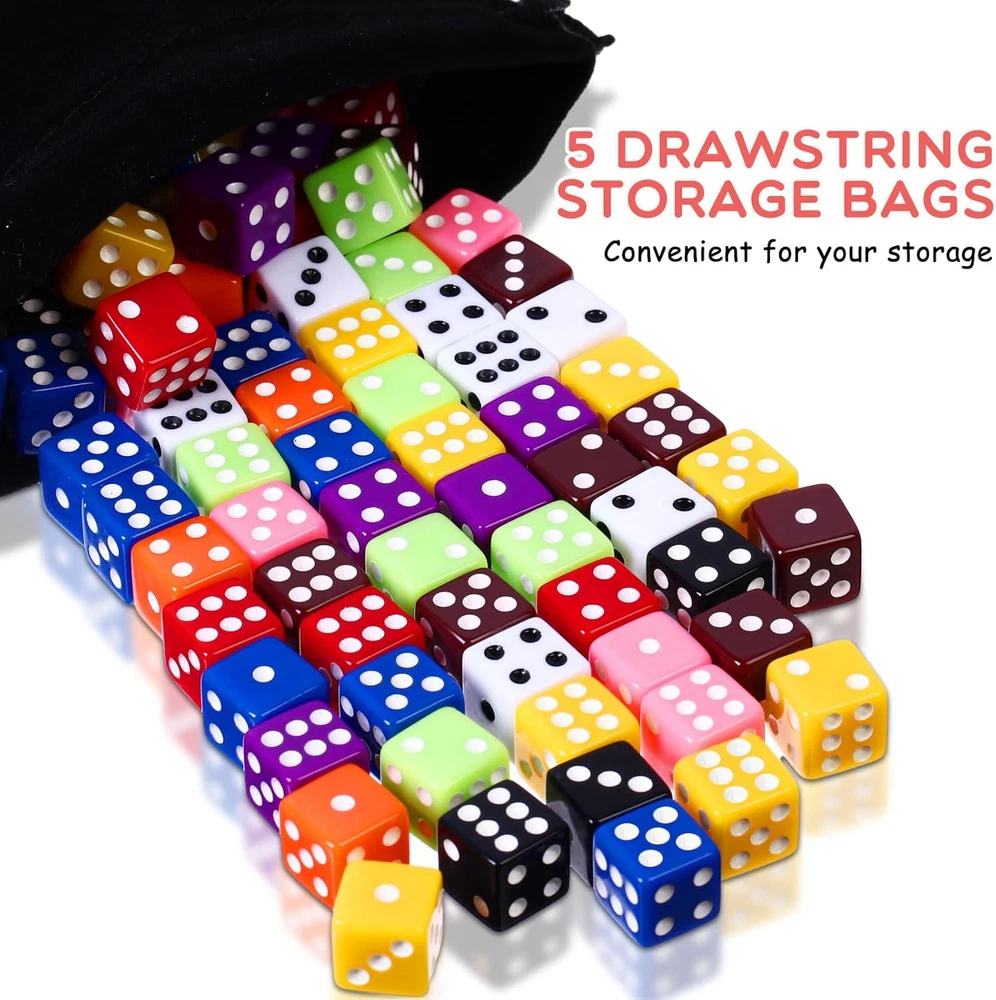 500 Pcs Colored Dice Bulk Dice 6 Sided Dice Set with 5 Pieces Drawstring Pouches