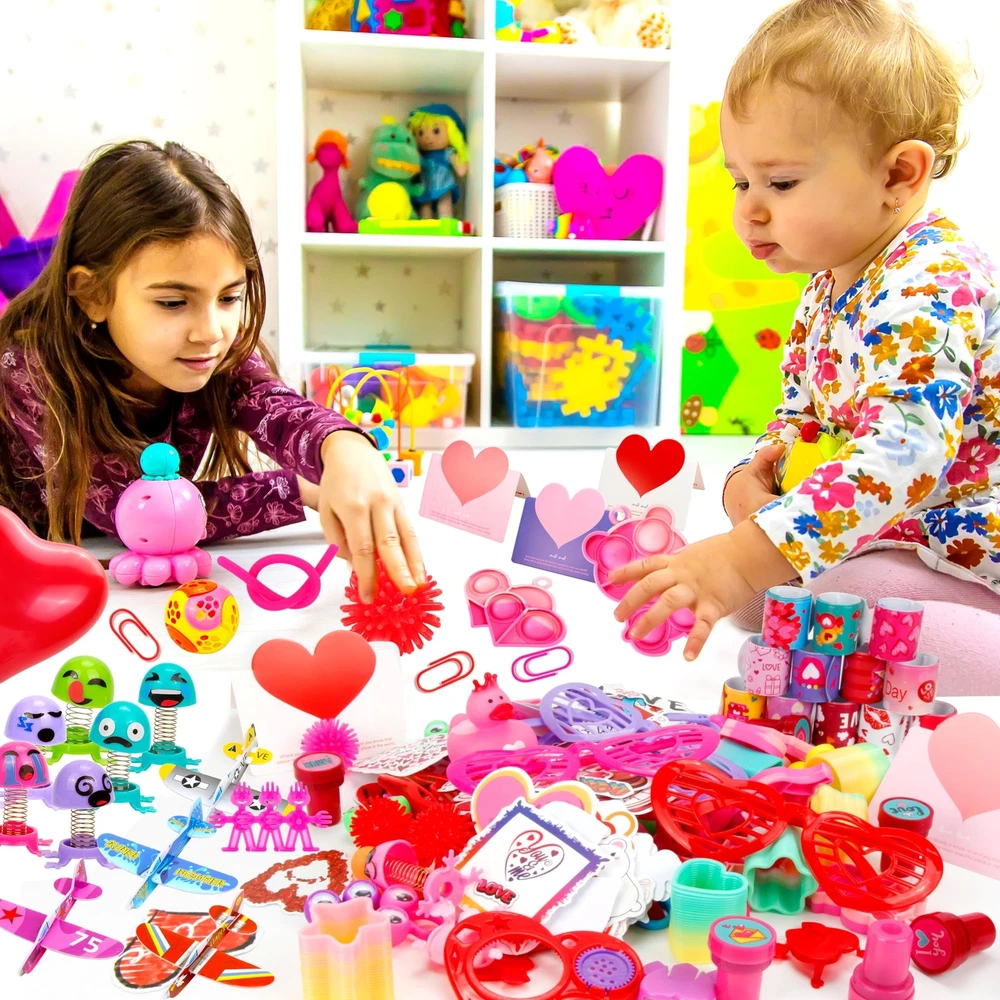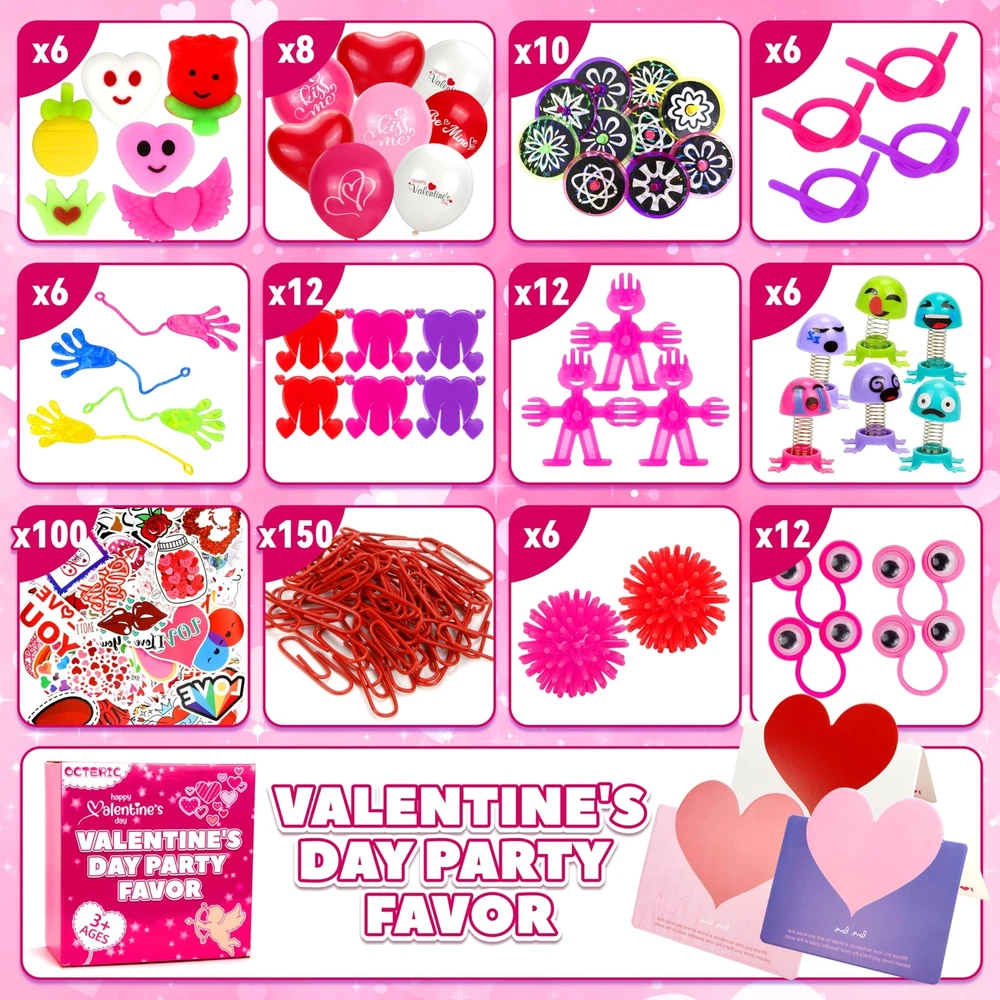 500+ Pcs Valentine's Day Party Favors Toy Assortment Set Valentine Goodie Bag Stuffers Valentine Prizes Rewards Bulk for Kids Students Valentine Party Favors Treats School Classroom Gift Exchange Product Details Product Dimensions: 8 x 8 x 4 inches Item Weight: 1.95 pounds Country of Origin: China Manufacturer recommended age: 36 months - 10 years Manufacturer: OCTERIC 500+ Huge Assortment: Come with so many Valentine craft options, includes fidget toys, mochi squishy toys, slap bracelets, stamps, pull rings, stickers, foam aircraft, balloons, bouncing frog, spining top and ect...These toys are suitable for children and adults of all ages. Premium Safe Material: All of party favors toys are made of durable silicone or plastic. No sharp edge and safe for kids and adults to play. Meets US Toy Standards. Perfect fits for party favors goody bags, classroom prizes and Easter eggs. Valentines Day Surprise: With these party toys decorating the party, you will be completely deep into the atmosphere, take an active part in activities and enjoy the party, everyone would have a good fun. Favor Love with these Gifts: Whoever you are looking to give a little present to show your appreciation on February 14th, there are many ideas out there. These DIY Valentines Day Party Favors for Kids are not only super cute, but budget friendly and easy to make too ! They make great trinkets for parties and also classroom Valentines Gifts too. Feature: Whoever you are looking to give a little present to show your appreciation on February 14th, there are many ideas out there. These DIY Valentine’s Day Party Favors for Kids are not only super cute, but budget friendly and easy to make too ! They make great trinkets for parties and also classroom Valentine’s Gifts too.