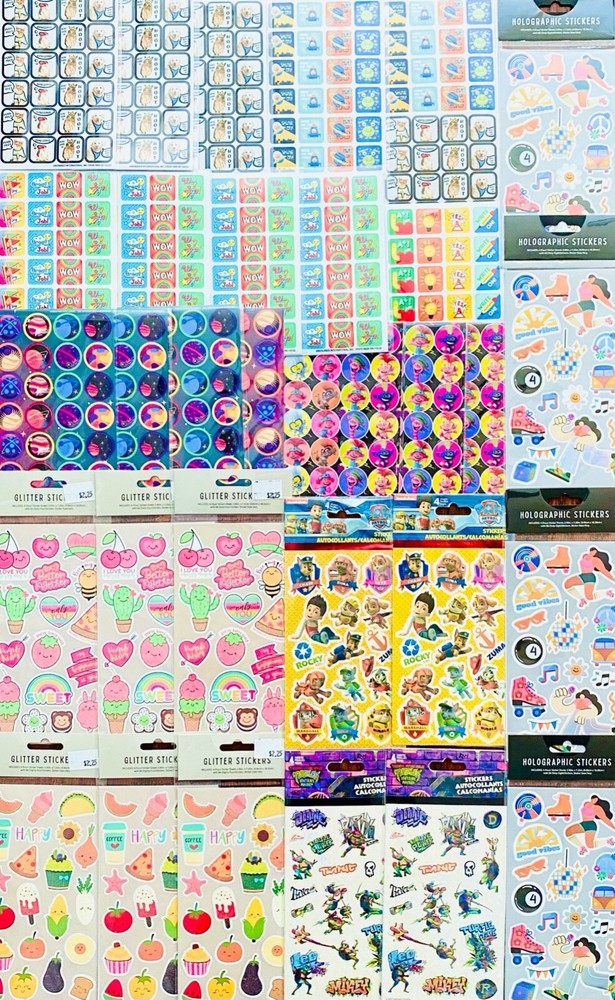 HUGE Mixed Sticker Lot | The Ultimate Kit | Qty. 479+ Stickers | High Quality Only! You will receive 29+ Sticker Sheets of beautiful colorful assortment. The Pack will include 479+ Stickers overall! I have included a large variety of pictures of the assortment available. The pictures give you an idea of what you will be receiving. Please Note: You will not receive everything pictured. Please contact me with any special requests. This HUGE Variety of fun designs stickers can be used in parties, classroom, school and home, good for reward for students, potty training, adding inside a birthday card, game activities, entertaining toddlers, etc. Perfect Gifts for Kids & all Occasions: Can be given as a gift for kids, girls, boys, toddlers, teens, students, friends, and classmates, they will love it!