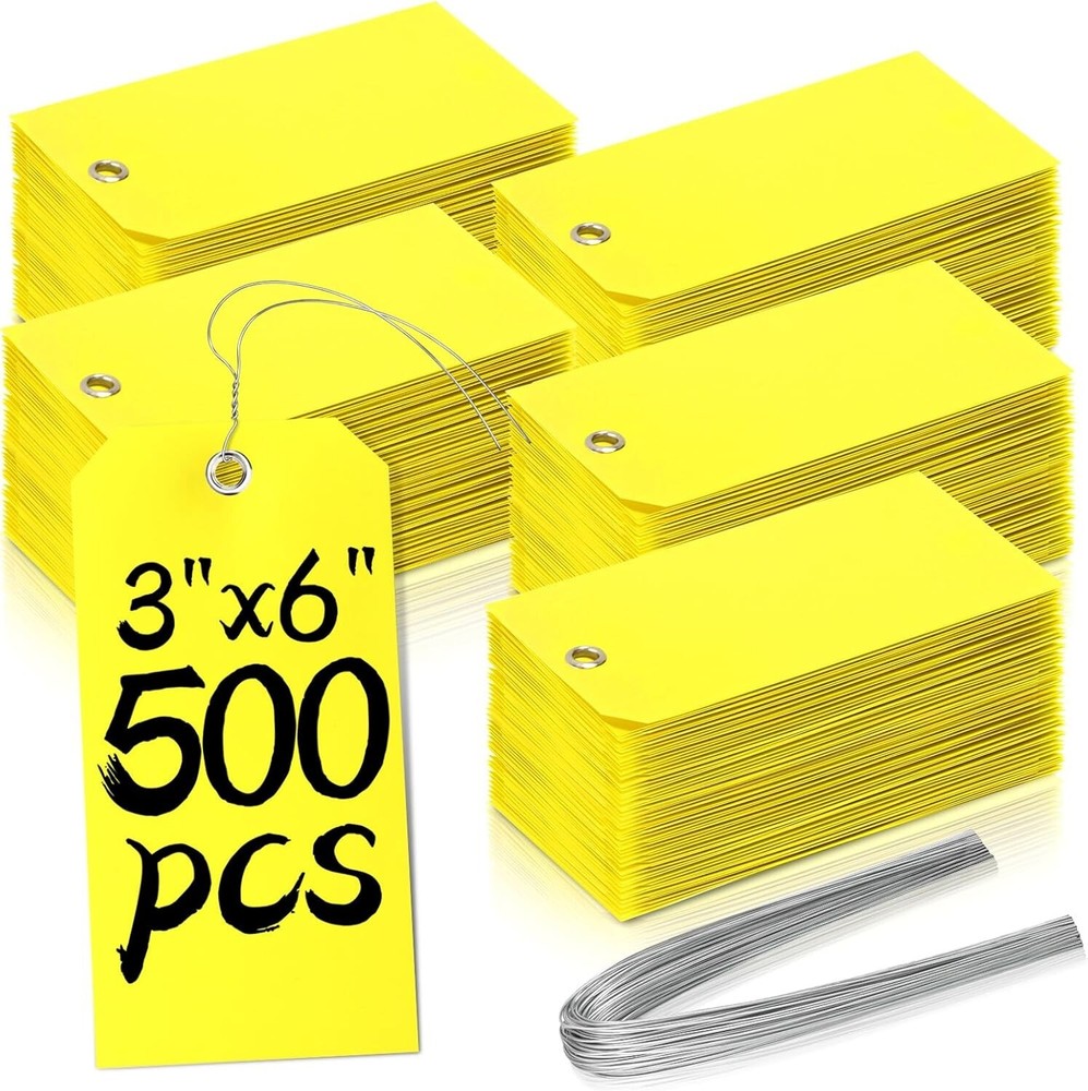 500 Yellow 3x6 Waterproof Plastic Hang Tags - Heavy Duty & Versatile