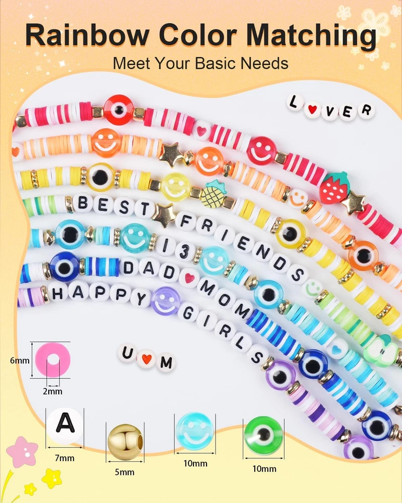 Store New Arrivals Add to Favorite View Feedback Contact Fast deliveries to the customer's home Quality customer service John Make the customers happy! 5000 Pcs Clay Beads Bracelet Making Kit, Friendship Bracelet Kits Flat Beads for Jewelry Making, Polymer Heishi Beads Set for Bracelet Necklace DIY Crafts Gift for Girls Ages 6-12 Description π COMPLETE STARTER KIT: Our jewelry making kit features 4800 flat clay beads, 300 unique charms, 10m stretchy string, scissors, and tweezers - everything a beginner needs to start crafting! β¨ PREMIUM QUALITY: Our polymer clay beads are handmade with soft clay, and are smooth and high-stretchy to prevent injury and breakage. All materials provided are safe and make perfect gifts for teen girls. π GREAT GIFT FOR KIDS: Unleash creativity and imagination for hours with this versatile bracelet making kit. Parents can join in the fun and craft unique DIY jewelry such as bracelets, necklaces, earrings, anklets, keychains, and more. A perfect way for kids to spend quality time creating instead of staring at screens. π¨ THE PERFECT GIFT: We offer instructions and videos to teach you how to make bracelets, jewelry, and earrings that make meaningful and enjoyable gifts for birthdays, Mother's Day, Thanksgiving, and Christmas. Give friendship bracelets to spread some joy and surprises with friends. π UALITY PROMISE: We strictly control the quality of our beads to ensure that you receive them without defects. We appreciate all ages of bracelet making enthusiasts, and if you have any issues with our beads, please feel free to contact us. Customer satisfaction is our top priority. Warning: CHOKING HAZARD -- Small parts. Not for children under 3 yrs. Product Description Item model number clay beads-01 Item dimensions L x W x H 7.48 x 7.09 x 0.67 inches Age Range (Description) Kid Color Multicolor Material Plastic Country of Origin China Style Art Deco Item Weight 9.5 ounces Theme Animal Model Name clay beads-01 Seasons All Seasons Art Craft Kit Type Jewelry Making Kit Number of Pieces 5000 Product Dimensions 7.48 x 7.09 x 0.67 inches ABOUT US We offer the best prices around on high quality products. Our E-store includes media such as books, movies, music and games while offering electronics, toys, sporting apparel, clothing, tools, general home, garden items and more. SHIPPING We are always working hard to ensure your package arrives as soon as possible. Please understand that some factors like weather, high postal traffic, and the performance of shipping companies are outside of our control. We offer free shipping to the lower 48 states and ship within 2 business days of payment, usually sooner. We do not accept P.O. Boxes. Please provide a physical address. For shipping outside of the continental USA, we only use eBay's Global Shipping Program. The item is shipped to KY and then sent to the rest of the world. International customers are responsible for all duties and taxes. Continue to 'check out' to calculate costs for shipping the item to your country. Messages regarding eBay's Global Shipping Program MUST be directed at eBay EXCLUSIVELY. RETURNS We offer a 30-Day Return Policy on items in which you are not completely satisfied with. You have the option of a full-refund or an exchange of the item. No returns are available on items shipped outside of the USA PAYMENT We accept PayPal. CONTACT US This page content is yet to come Please ad us to your favorite seller and visit again later Thank You CUSTOMER SATISFACTION We try our very best to make sure every customer is completely satisfied. If there's a problem, message us! We're happy to help. WE ACCEPT