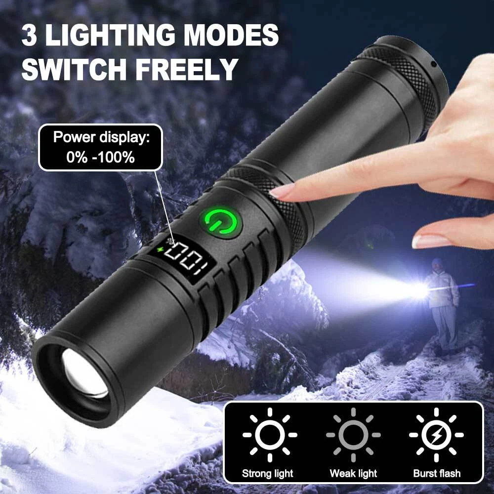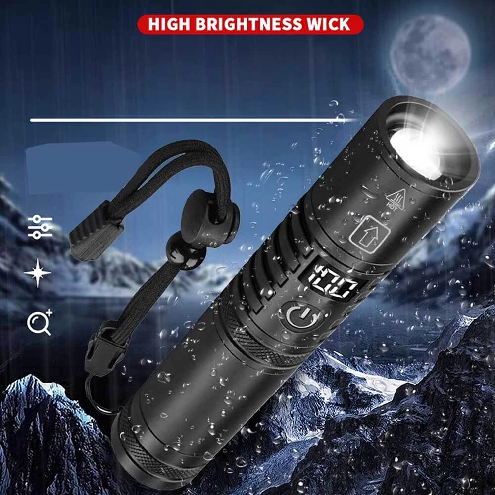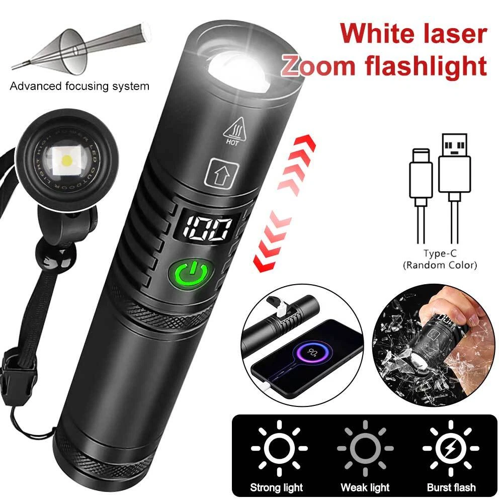 50000000 Lumens Super Bright LED Flashlight Rechargeable Work Light USA