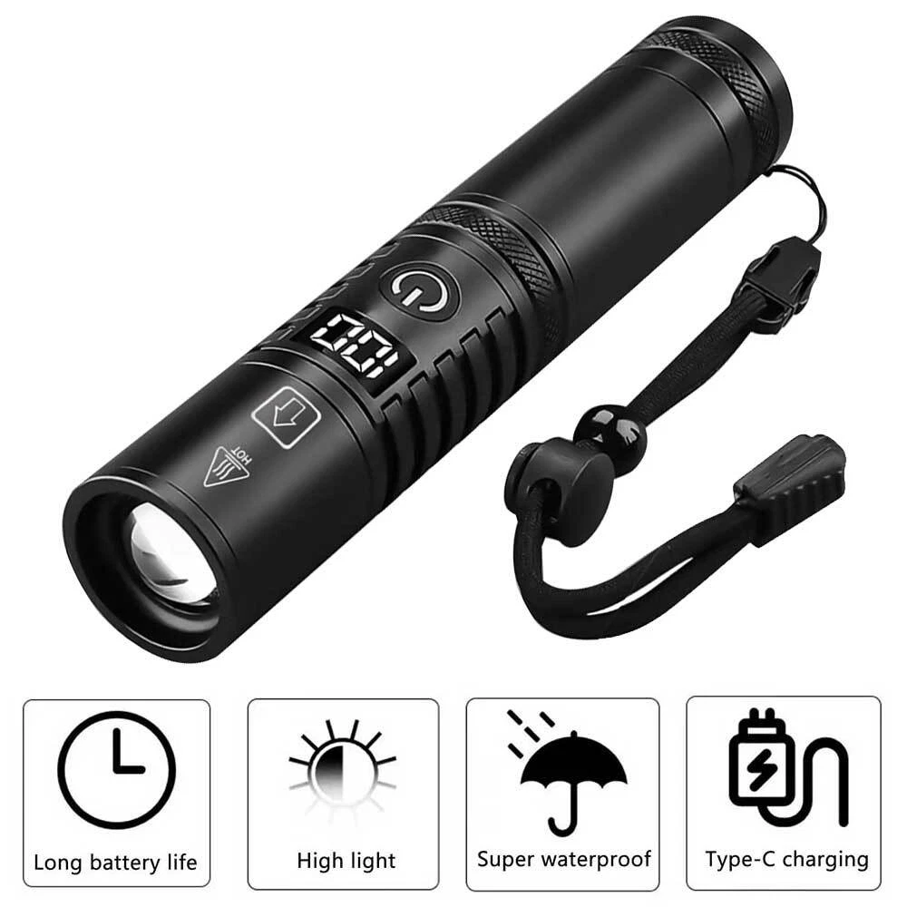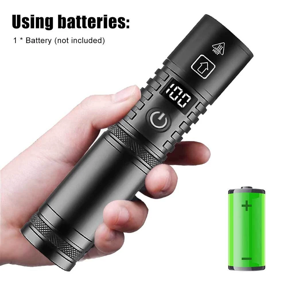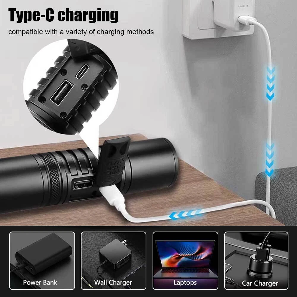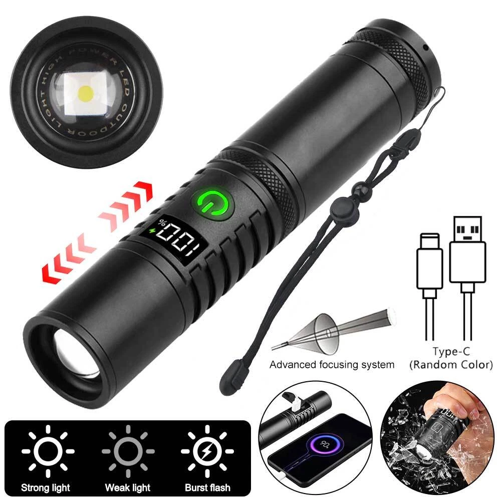 You may also like 1/2 PACK Headlamp COB LED Rechargeable Headlight Torch Work Light Bar Head Band 11.78 USD Free shipping 30mm 25.4mm 1" Scope Ring Mount Rifle Dovetail 11mm 20mm Picatinny Rail 3.99 USD Free shipping MLock Aluminum Rail Section Picatinny Weaver Rail Section 3/5/7/9/11/13 Slots 7.49 USD Free shipping Red Dot Laser Bore Sight Cupper Brass Boresighter Cal Cartridge Sights Hunting 5.99 USD Free shipping UV Ultra Violet LED Flashlight Blacklight Light 365nm Inspection Lamp single USB 3.99 USD Free shipping SolarStorm 8000LM Bike Headlight Headlamp Road Bicycle Front Light 2X U2 LED 21.99 USD Free shipping 10-50A AMP 12V Automatic reset Circuit Breaker & Cover Dual Battery Fuse IP66 US 2.99 USD Free shipping NEW 177 .22 to .50 Caliber Rifle Gauge Boresight Green/Red Dot Beam Bore Sighter 13.59 USD Free shipping 6 Way 12V 32V Auto Marine Car Power Distribution Blade Fuse Holder Box Block 10.88 USD Free shipping 365nm-395nm UV Underwater 3x Light LED Scuba Diving Flashlight Torch Battery 23.99 USD Free shipping 5000Miles Green Laser Pointer Pen 532nm Lazer Strong Visible Beam Light Pen 7.99 USD Free shipping US Plug Power Charger Adapter 8.4V/1A For LED Bike Light Battery Pack 3.99 USD Free shipping UV Ultra Violet LED Flashlight Blacklight 395/365nM Inspection Lamp Torch Mini 3.99 USD Free shipping 2pcs Scope Bubble Level for 34mm Tube Riflescope Anti-cant Hunting 8.59 USD Free shipping Rechargeable USB LED Light Flashlight Lamp Mini Torch Pocket Keychain Waterproof 1.99 USD Free shipping Alloy Rifle Scope Laser Bubble Spirit Level for 25.4/30mm/34mm Ring Mount Holder 8.59 USD Free shipping Scope Barrel Mount 1" - 25mm & 30mm Ring Adapter with 20mm Weaver Picatinny Rail 7.59 USD Free shipping 2X Bicycle Laser Rear Light Night Cycling Safety Warning Bike Rechargeable Lamp 21.99 USD Free shipping Product Description 50000000 Lumens Super Bright LED Tactical Flashlight Rechargeable Work Light USA Specification: Material: aluminum alloy Shell color: black Lamp beads: white laser Switch: key switch Charging mode: Type-C charging USB output: can charge your cell phone Using time: 5-10H Mode: strong light - low light - strobe LCD power display: 0-100% Lumen: 1500LM Zoom: telescopic zoom Waterproof: IP65 Net weight: 154g Size: 165*33*33mm Package Included: 1*Flashlight 1*Type-C charging cable 1*Hand Strap Payment Shipping Terms Returns Contact Us About Taxes 1. We accept payment via PAYPAL ONLY . 2. Payment must be made within 4 days of auction closing. (Non-payment may result in a UPI (Unpaid Item) being put on your account. eBay will automatically close your account if you accumulate 4 UPI's total.) 3. TOTAL AMOUNT DUE includes the final auction price plus S&H(Shipping and Handling). 4.S&H will be determined based upon the SHIP TO address, Tax and customs. PLEASE NOTE: S&H DOES NOT INCLUDE DUTIES, LOCATL TAXES OR ANY OTHER IMPORTATION FEES. We are not responsible for any custom duty or import tax. 5. Please list your special requests (color, packages, etc.) in the PAYPAL NOTES SECTION when you make payment. Our working hours Beijing time from 9:00 a.m. to 18:00 p.m . Monday to Friday Item will be shipped from US/DE/UK warehouse;within 1 days after payment received, usually delivery time 24-72 hours. Warranty: 1. One Year Manufacturer's Warranty for defective items (excluding items damaged and/or misused after receipt). Accessories come with a 3-month warranty. 2.If buyer requests a return when there is no quality problem of the item he received,return postage has to be paid by buyer,and postage for the item won't be returned. 3.If item is damaged or defective on arrival,buyer can either requests a refund or replacement,and postage will be paid by us,meanwhile,the item must be returned. Note: A. Customs duties is neither included in the item value nor the postage,which should be in the responsibility of buyers. B. Please check with your country's customs office to determine what these additional costs will be prior to bidding/buying. 1. You have 7 days to contact us and 10 days to return it from the date it was received. WE WILL ISSUE YOU A REFUND OR REPLACEMENT ! 2. All returned items MUST BE in the original packaging and you MUST PROVIDE us with the shipping tracking number , specific reason for the return, and your eBay ID . 3. We will refund YOUR FULL WINNING BID AMOUNT, upon receipt of the item in its original condition and packaging with all components and accessories included, AFTER BOTH Buyer and Seller cancel the transaction from eBay. OR, you may choose to have a replacement. 4. Return shipping is to be paid by the Buyer . Our office hours are: 9:00 a.m to 6:00 p.m (GMT +8) of Monday to Saturday. And our office is closed on Sunday and public holidays (China). We apologize for the late reply during the holidays. Anything,please contact us by ebay message,we'll service you asap!!! 1. We maintain high standards of excellence and strive for 100% customer satisfaction! Feedback is very important to us. We request that you contact us immediately BEFORE you give us neutral or negative feedback, so that we can satisfactorily address your concerns . 2. We will reply you in 24 hours on business days ( excludes weekends and holidays ) , please note the time difference, so,kindly don't take any action on eBay before getting a reply from us. 3. If you are satisfied with our products and service, please do not forget to leave a good review to us, thanks! For all orders, please note that: 1. Taxes and charges are not included in the item price or shipping charges. 2. Please check with your country's customs office to determine what these additional costs will be prior to bidding/buying. 3. If there is the cutsom fee casused by the cutsom detention, the buyer need to check with your country's customs and deal with it himself. Payment 1. We accept payment via PAYPAL ONLY . 2. Payment must be made within 4 days of auction closing. (Non-payment may result in a UPI (Unpaid Item) being put on yo