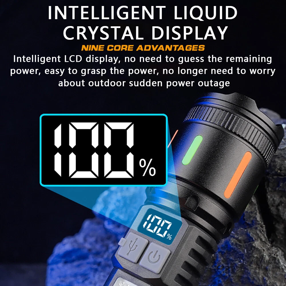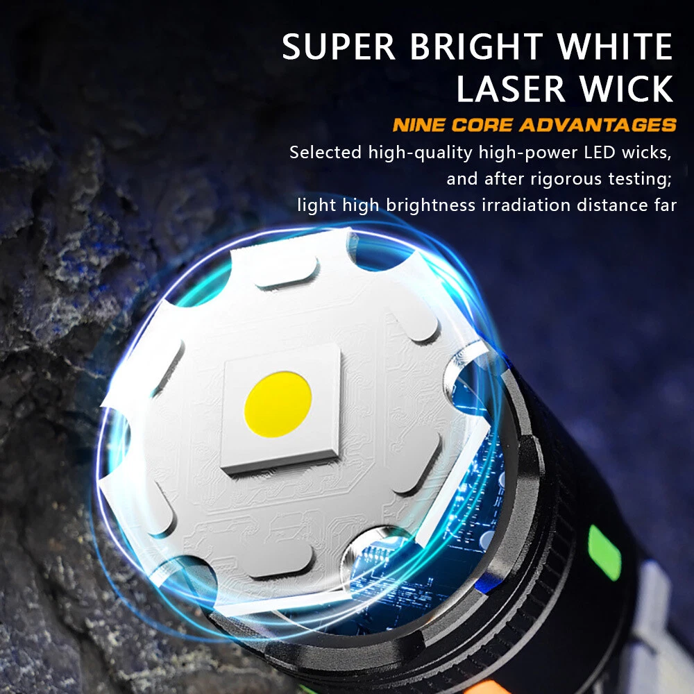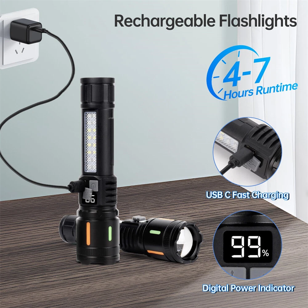 50000000 Lumens Super Bright LED Tactical Flashlight Rechargeable LED Work Light