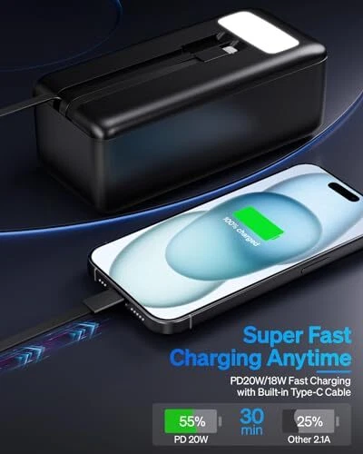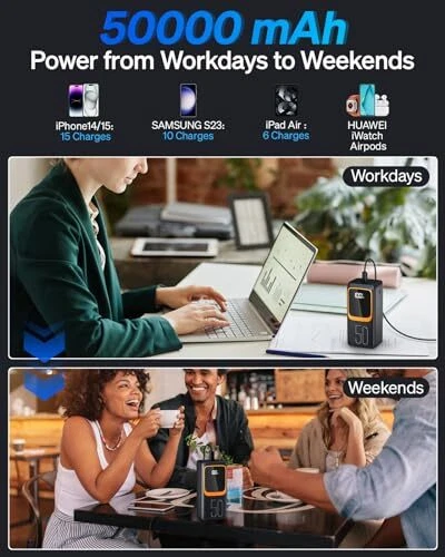 ๐๐๐ฅ๐ข๐๐ฏ๐ข๐ง๐ ๐๐จ๐ฐ ๐๐๐ญ๐ญ๐๐ซ๐ฒ ๐๐ง๐ฑ๐ข๐๐ญ๐ฒ๐Enormous 50000mAh battery capacity. One full charge guarantees worry-free usage for nearly 14 days. ๐๐จ๐ซ๐ง ๐ ๐จ๐ซ ๐๐ก๐๐ซ๐ ๐ข๐ง๐ ๐Equipped with a built-in 20W fast-charge Type-C and a 10W cable, it's always ready to power up anytime, anywhere. No more need to carry various cumbersome cables on your travels. ๐๐ ๐๐ข๐ง๐ฎ๐ญ๐๐ฌ ๐ญ๐จ ๐๐% ๐๐ก๐๐ซ๐ ๐โกWith a Type-C and super-fast 22.5W charging. Play games and watch short videos for a quick energy boost. Happiness can't be delayed. ๐๐ก๐๐ซ๐ ๐๐๐ญ๐ญ๐๐ซ๐ฒ ๐๐ง๐ ๐๐จ๐ฒ๐๏ธ7 outputs, 3 inputs. Supports up to 7 devices simultaneously, allowing you to share power with your friends, keeping the fun alive during outdoor activities ๐๐ฆ๐๐ซ๐๐๐ ๐ญ๐ก๐ ๐๐ข๐ ๐ก๐ญโ๏ธWhen heavy rain and hurricanes lead to power outages, the high-powered LED light serves as your emergency lighting. ๐๐ฎ๐๐ซ๐๐๐ ๐๐ข๐ค๐ ๐ ๐๐ก๐ข๐๐ฅ๐๐ก๏ธEquipped with reinforced chip overcurrent protection, voltage boost conversion, and other protective functions, ensuring a stable power output for worry-free phone charging. ๐๐ฅ๐ฐ๐๐ฒ๐ฌ ๐จ๐ง ๐๐ญ๐๐ง๐๐๐ฒ๐ฉFor any questions or needs, please contact us promptly. We promise to reply to your email within 12 hours and provide the best solution!