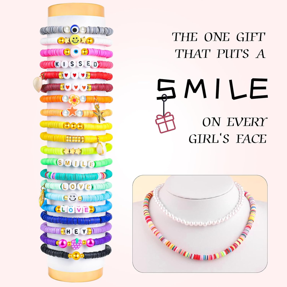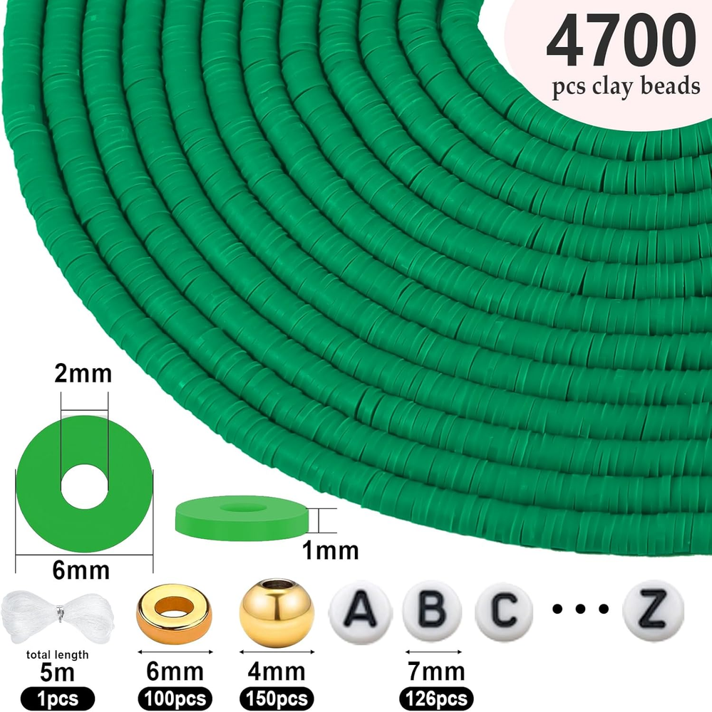 Just got this bracelet-making kit and I’m obsessed! The green clay beads are vibrant and smooth, perfect for crafting. Love the mix of gold spacers and letter beads—adds a stylish touch. The elastic cord is sturdy, and the variety makes it super fun to create unique designs. Great quality for the price, definitely a must-have for DIY jewelry lovers!