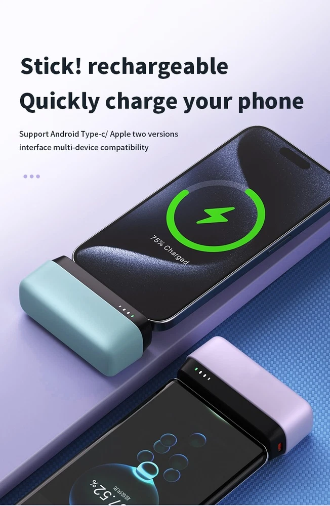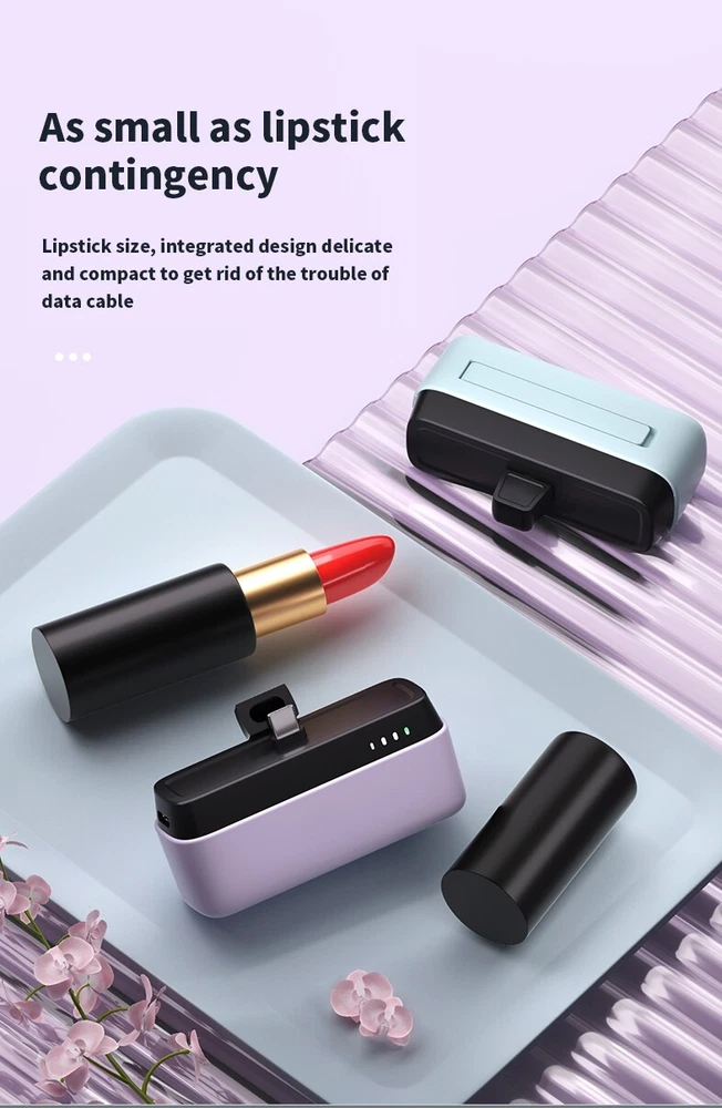 Description : Fashion Design: Smooth face and better texture makes it elegant and unique. Upgraded Capacity: 5000mAh is big enough to fully charge your iPhone 8 1.5 times or charge your iPhone X 1 time. Upgraded built-in Cable: Supports thicker cases than last generation,no longer need to remove the case first to charge your Phone. Ultra-Compact: Size of a lipstick,not need a cord it’s easy to slip in your pocket or your purse and when you need it you have a charger right then and there. Compatible models: For iPhone XS / For iPhone XS Max For iPhone X / For iPhone XR For iPhone 8 / For iPhone 8 Plus For iPhone 7 / For iPhone 7 Plus For iPhone 6 / For iPhone 6 Plus For iPhone 6s / For iPhone 6s Plus For iPhone 5 / For iPhone 5s For iPhone 11 / For iPhone 11 Pro / For iPhon e 11 Pro Ma x For iPhone 12 / For iPhone 12 Pro/ For iPhone 12 Pro Max/ For 12 mini For iPhone 13 / For iPhone 13 Pro/ For iPhone 13 Pro Max/ For 13 mini For iPhone 14 / 14 Plus / 14 Pro / 14 Pro Max For iPhone 15/15 Plus/15 Pro/15 Pro Max For AirPods/AirPods Pro For Android Samsung Galaxy/Xiaomi/Google/HTC/LG/Redmi/Oneplus and other Type C devices