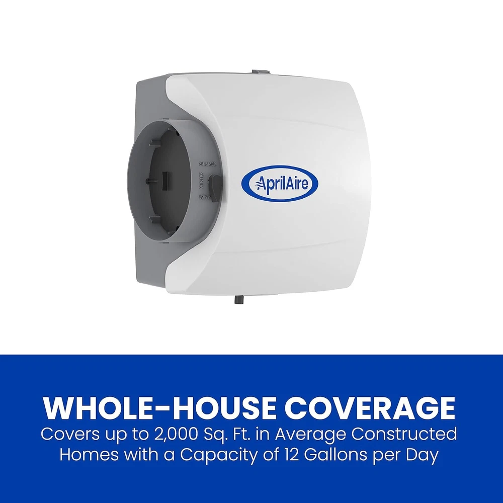 500M 12-gal. Whole-House Small Bypass Evaporative Humidifier with Manual Control for up to 3,600 sq. ft. + Model 5843 Humidifier Installation Kit BALANCED HUMIDITY FOR HEALTH AND HOME PRESERVATION – Help minimize the formation of bacteria, viruses, fungi, and dust mites that thrive in low humidity and help preserve wood floors, cabinetry, furnishings, and other items susceptible to dry air WHOLE-HOUSE HUMIDIFICATION – Deliver 12 gallons of moisture per day in homes up to 3,600 sq. ft. with trouble-free performance and minimal maintenance. The water panel removes impurities before adding moisture to the air. Use genuine 10 Water Panel for annual MANUAL CONTROL – The included Model 4655 Manual Humidistat monitors your home's air providing precise control and the onboard sensor actively measures the relative humidity throughout your home and turns on the humidifier when needed giving you peace of mind INSTALLATION KIT – No need to find the parts yourself. This convenient bundle comes with all of the genuine parts needed for installations in homes with ducted heating systems plus detailed installation instructions BUY WITH CONFIDENCE – Whole-House Humidifiers are designed and assembled in the USA using US and global components by , the leader in Indoor Air Quality solutions for the home since 1954, and come with a 5- satisfaction INCLUDES – 500M Whole-House Humidifier, Model 4655 Manual Humidistat, (1) genuine 10 Water Panel, (4) #8 x 3/4 Mounting Screws, 6" Round Duct Collar, 6" Bypass Flex Duct (2 ft.), ¼" outside diameter (OD) Water Supply Tube (25 ft.), ½" interior diameter (ID) Drain Tube (10 ft.), ⅝" Hose Clamp, Current Sensing Relay Model 50, 18/2 Thermostat Wire (10 ft.), and (4) Twist-On Wire Nut Connectors The 500M Whole-House Humidifier is designed for homes up to 3,600 sq. ft. The included manual humidistat lets you control the humidity level throughout your home. While balanced humidity exists between 40–60%, it's important to remember that outdoor temperature and other home factors will impact what relative humidity level is attainable and recommended for your house. You’ll enjoy balanced humidity thanks to the evaporative process, which works by passing hot, dry air from your furnace over the interior water panel to add moisture before returning the humidified air into your home using the existing blower fan in your HVAC system. The water panel is essential to the process, ensuring the removal of impurities from the water and providing uniform, high evaporation for whole-house humidification. invented the whole-house evaporative humidifier in 1954, and this unit is designed and assembled in the USA utilizing US and global components. It offers multiple options for installation, making it simple to experience the benefits of balanced humidity throughout your living space.