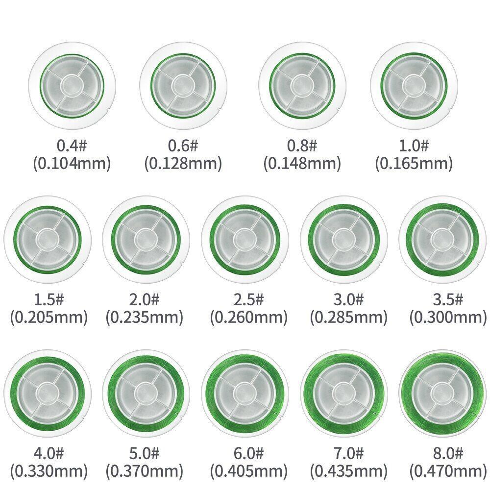 DNDYUJU 500M Nylon Fishing Line Monofilament Material From Japan Multiple Colour Lake River Carp Line Saltwater Fishing 500M fishing line test table Line Number 0.4#: 0.104mm / 2LB / 0.9KG Line Number 0.6#: 0.128mm / 4LB / 1.8KG Line Number 0.8#: 0.148mm / 5LB / 2.2KG Line Number 1.0#: 0.165mm / 6LB / 2.7KG Line Number 1.2#: 0.180mm / 6.5LB / 2.9KG Line Number 1.5#: 0.205mm / 7LB / 3.1KG Line Number 2.0#: 0.235mm / 8LB / 3.6KG Line Number 2.5#: 0.260mm / 10LB / 4.5KG Line Number 3.0#: 0.285mm / 12LB / 5.4KG Line Number 3.5#: 0.300mm / 14LB / 6.3KG Line Number 4.0#: 0.330mm / 16LB / 7.2KG Line Number 5.0#: 0.370mm / 20LB / 9.0KG Line Number 6.0#: 0.405mm / 25LB / 11.3KG Line Number 7.0#: 0.435mm / 30LB / 13.6KG Line Number 8.0#: 0.470mm / 35LB / 15.8KG Line Number 9.0#: 0.50mm / 37LB / 16.8KG Line Number 10.0#: 0.55mm / 40LB / 18.1KG Line Number 12.0#: 0.60mm / 45LB / 20.5KG Features: 1.Smooth design increase casting distance and overall fishability. 2.Best Material From Janpan is good for sea carp.etc fishing 3.Braided by the machine from German make the line more rand than others and ensure casting longer. 4.Bulkly knots eliminated, gives incredible contact with your catch. 5.Nearly zero water absorption, is best fro saltwater, blue lake fishing. 6.No unpleasant odor on Poseidon line, is healthy. 500M Fishing Line Capacity Details: The fishing line has a small diameter. Less capacity on a transparent plate. The fishing line has a large diameter. There is much capacity on a transparent plate.