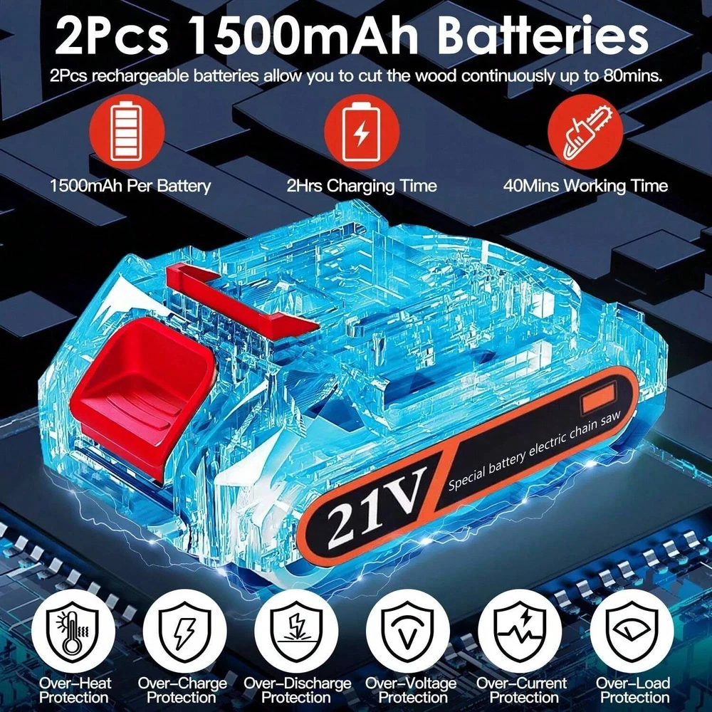 This mini electric chainsaw is a game-changer! Lightweight yet powerful, it makes trimming branches and cutting wood a breeze. The cordless design gives me freedom to move around, and the 2-in-1 feature is super convenient. Battery life is impressive, and it starts up instantly. Perfect for small yard jobs—no more wrestling with heavy gas saws. Highly recommend for DIYers!