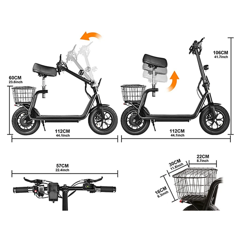 This scooter is an absolute game-changer for my commute! The comfortable seat and powerful motor make hills feel effortless, and the 12-inch tires provide a surprisingly smooth ride. I love the clear display and how easily it folds for storage. Arrived quickly and was simple to assemble. Highly recommend!