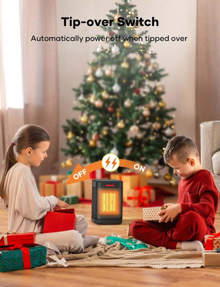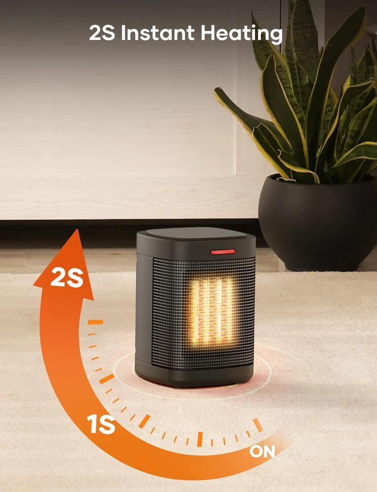 500W MINI HEATER: Reliable and sturdy, this heater provides continuous heat. It's best used for personal heating. It's small for localized close up, you can put this under, or on your desk. 500 watts of power to put out more heat with very low noise. Offering quiet operation and unique PTC ceramic heating elements. PORTABLE CONVENIENCE: Designed for ease of mobility, it fits almost anywhere. It features an impressively compact design and one-button operation. ON/OFF switch. Straight 500 watts. It's good for you if you are sitting in one spot, like snuggled up on a couch or chair watching a movie, or sitting at a desk in your office space. Getting your hands warm. CONVENIENT & SAFE FEATURES: Our space heaters have built-in safety overheating and tip-over protection, the heater will auto-turn off if accidentally tipped over or overheated. With its tip-over and auto shut-off overheating protection, you can sleep peacefully knowing you’ve got a heater with excellent safety features. The power indicator light lets you know when it's plugged in. SAFE AND HASSLE-FREE: Perfectly safe around children and pets, with no exposed heating elements that could cause a fire. ETL certification ensures the highest safety standards - tip-over and overheats shut-off protection. The heating device provides users with a safer and more comfortable operating experience. DEFEAT COLD IN 2S: Nothing beats a great basic, this sleek black heater is essential in any home, heating up quickly in just 2 seconds. Discover the ceramic desk heaters that can be placed on the floor or desktop. Makes a great addition to an office, bedroom, or any other enclosed area.