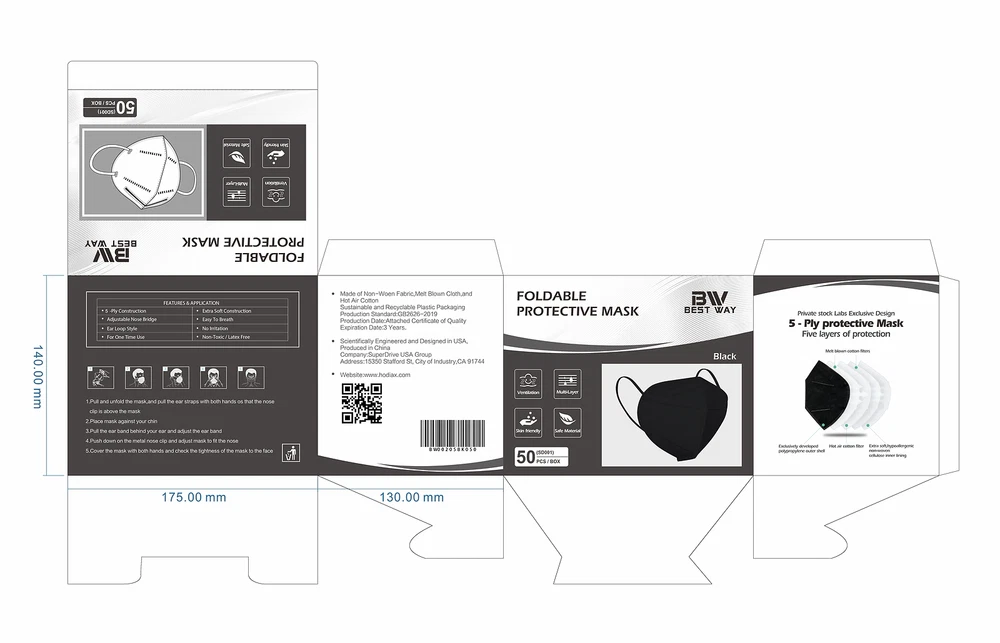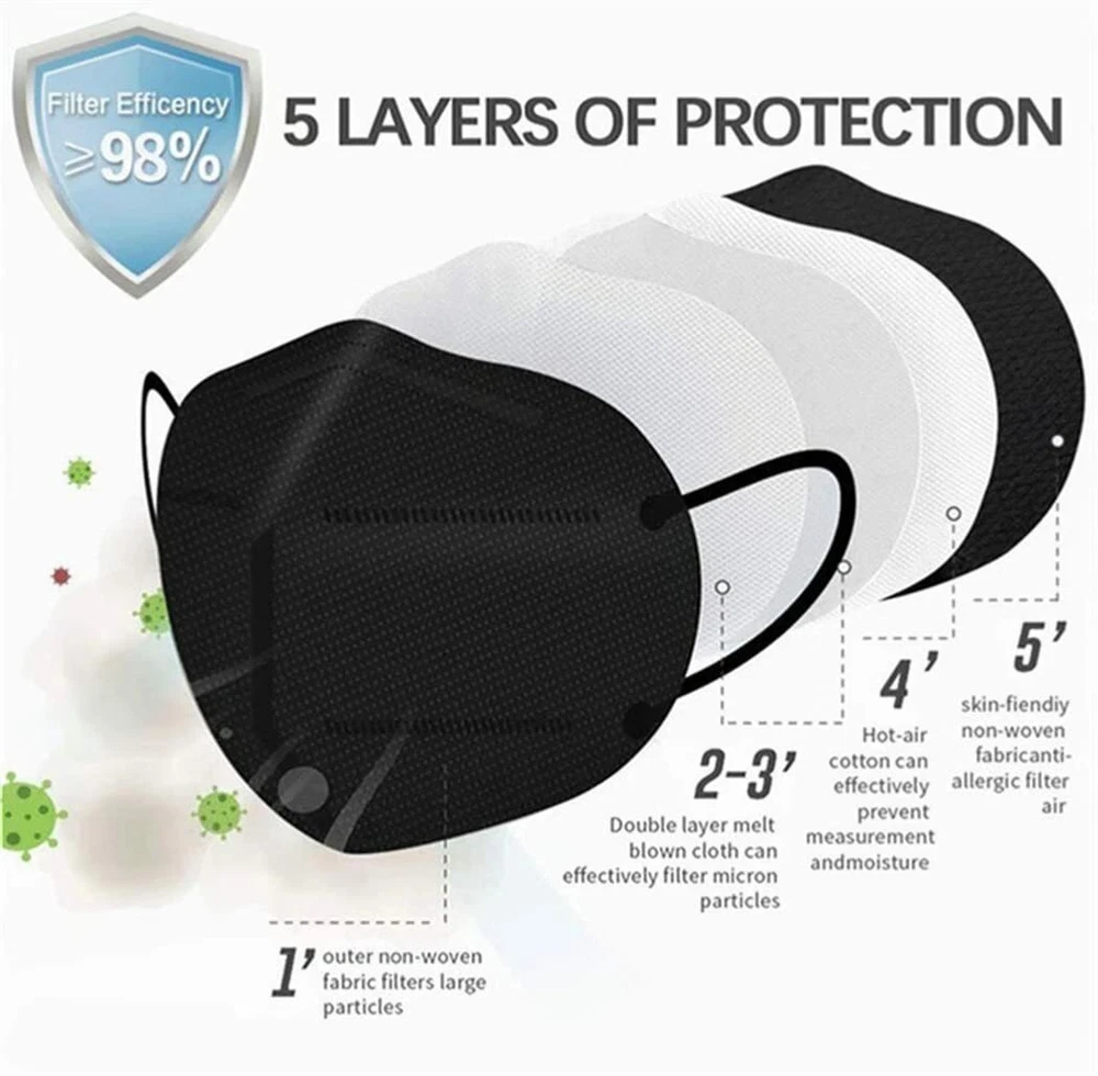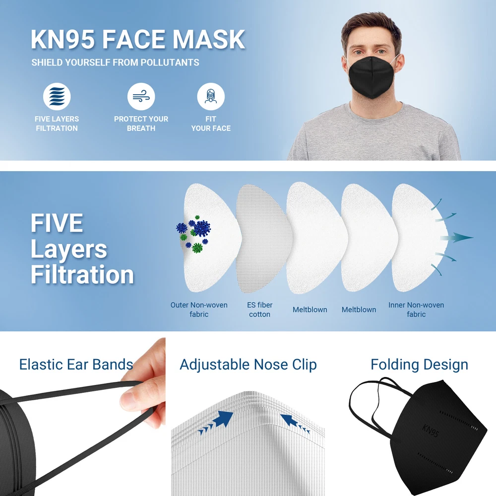 Multi-effect Protection 5-Layer Face Mask : High breathable 5-ply protection masks use standard safety materials. The outermost 1 layer non-woven fabric can filter large particles, middle 2-layer melt-blown fabric can block more than 95% particles, 1 layer hot air cotton can filter pm2.5 and the innermost 1 layer non-woven fabric is skin-friendly and softer that give you the comfortable usage experience at the same time it protects your breath with high filter efficiency. 50/100Pcs Black KN95 Face Mask 5 Layer BFE 95% Disposable Respirator USA Seller Multi-effect Protection 5-Layer Face Mask : High breathable 5-ply protection masks use standard safety materials. The outermost 1 layer non-woven fabric can filter large particles, middle 2-layer melt-blown fabric can block more than 95% particles, 1 layer hot air cotton can filter pm2.5 and the innermost 1 layer non-woven fabric is skin-friendly and softer that give you the comfortable usage experience at the same time it protects your breath with high filter efficiency. Hygienic & Comfortable : This KN95 disposable face mask is foldable which is more hygienic and avoid pollution, can be perfectly placed in your backpack, purse and pocket, convenient to carry and use. Furthermore, the protection KN95 mask is lightweight and foldable, equipped with an adjustable nose clip and elastic ear hooks. Not easy to drop, no need to adjust it when you work. This design can help the mask perfectly attach onto your face with four sides tightly. 3D Design : The 3D shape of KN95 mask is designed according to the human face shape to ensure the tightness, to fit the human face, to increase the breathing volume when use the face mask. Our Miuphro breathable face mask KN95 can greatly improve the permeability, and to make wearing and exhaling more comfortable. Meanwhile, the 3D design just protect your breath, and and won't destroy your makeup look. Skin-friendly and Comfortable : These KN95 face mask use skin-friendly non-woven fabric, no irritation to your skin, High-elastic ear loops and adjustable nose clip to ensure a comfortable fit and no strain of ears Package Information 50 PCS Disposable Face Mask / 100 PCS Disposable Face Mask Item Specifics Model KN95 MPN KN95-FACE-MASK Brand Unbranded Intended Use/Discipline Daily Use, Non-medical Gender Aduit Unisex Style Disposable Ear Loop KN-95 Face Mask Respirator Quantity 10 PCS / 50 PCS / 100 PCS Special Note BFE > 95% / PFE > 95% Shipping Location USA Stock Inventory STOCK IN USA Payment 1. We accept and prefer eBay payments. 2. eBay Payments also accept Paypal, VISA, Mastercard, American Express, Discover, Apple pay, Google pay and so on. 3. All payment must be received within 10 days after auction won. 4. Sales Tax is applicable in CA of USA. Shipping 1. eBay Payments Confirmed Addresses Only. 2. No Delivery to Alaska and Hawaii or PR. 3. No P.O. Box and APO/FPO Delivery. 4. Tracking Number will be provided. 5. Domistic shipping is within the 48 Contiguous States of United States, the delivery time is between 2 and 8 days. Items will be shipped by UPS, USPS or Fedex within 2-3 business day after receiving full payment. 6. Local shipping is for those countries with our warehouses, normally the delivery time is between 3-9 dyas. 7. International shipping is from China/US, the delivery time is between 12 and 40 days,item will be shipped within 3-5 days Returns 1. Our 30-Days Money Back Guarantee assures our customers that they will receive all orders promptly and exactly as described. In addition, it allows customers to return new and unused products in their original factory condition for any reason within 30 days from the date of purchase. 2. Customer ordering error, changed mind, etc.: A 20% Restocking fee will apply. 3. Exchanges: A 20% Restocking fee will apply. Exchanges will be made after our return center receives and inspects the merchandise. 4. Credit or Refund: A credit or refund will be issued after our return center receives and inspects the merchandise. After inspection we will credit the card that was charged, less any applicable shipping charges, restocking fees or taxes.. Contact Us Feel Free to Contact Us through the eBay Message if you have any questions. DESCRIPTION PAYMENT SHIPPING RETURN POLICY CONTACT US Shop Category Store Home Home & Garden ◈ Mosquito/Swatter/Pest Repeller ◈ Kitchen Tools & Gadgets ◈ Air Purifiers ◈ Vacuum Cleaners ◈ Humidifier ◈ Shoes Dryer Auto Parts & Accessories ◈ Dodge ◈ Toyota Tacoma ◈ Toyota Tundra ◈ Chevy/GMC ◈ Ford ◈ Jeep ◈ Nissan Packing & Shipping Personal Protective Equipment ◈ KN95 Face Mask ◈ Flat Face Mask ◈ Protective Suit ◈ Safety Vests Sporting Goods ◈ Jump Ropes ◈ Yoga Straps ◈ Exercise Stepper ◈ Fitness Combination Outdoor Goods ◈ Tent Consumer Electronics ◈ Charger ◈ Selfie Stick ◈ Phone Case ◈ Headphone ◈ Speaker Car Supplies ◈ Car Clips ◈ Mud Flap ◈ Reflective Tape ◈ Sunshades ◈ LED Light ◈ Wrapping Film ◈ Air Tire Pump Other Hot Item 20/50/100 PCS KN95 Protective 5-Layer Disposable Mask Adult Respirator US Stock USD 13.29 60 Pack KN95 Protective 5 Layer Face Mask Disposable Respirator [BFE 95% PM2.5] USD 11.49 50/100 PCS KN95 Face Masks Protective 5-Layer Disposable Respirator US Seller USD 6.99 50/100Pcs Black KN95 Face Mask 5 Layer BFE 95% Disposable Respirator USA Seller USD 6.99 [100 Pack] KN95 Protective 5 Layer Face Mask BFE 95% PM2.5 Disposable Respirator USD 13.29 New List Item 3x Portable Mute Car Truck Air Purifier w/ HEPA Filter Negative Ions Air Cleaner USD 7.88 30W Electric Indoor Pest Fly Trap Waterproof Mosquito Killer YongTong Bug Zapper USD 35.99 Digital Adjustable Counting Forearm Finger Exerciser Training Grip Strengthener USD 4.99 100 Pcs Black Protective Disposable Respirator 4-Layers Mouth Cover Face Masks USD 11.55 3.3' Orange Warning Conspicuity Tape Film Sticker Decal Car Reflective Safety USD 5.99 Help & Info Payment Policy Shipping Policy Return Po
