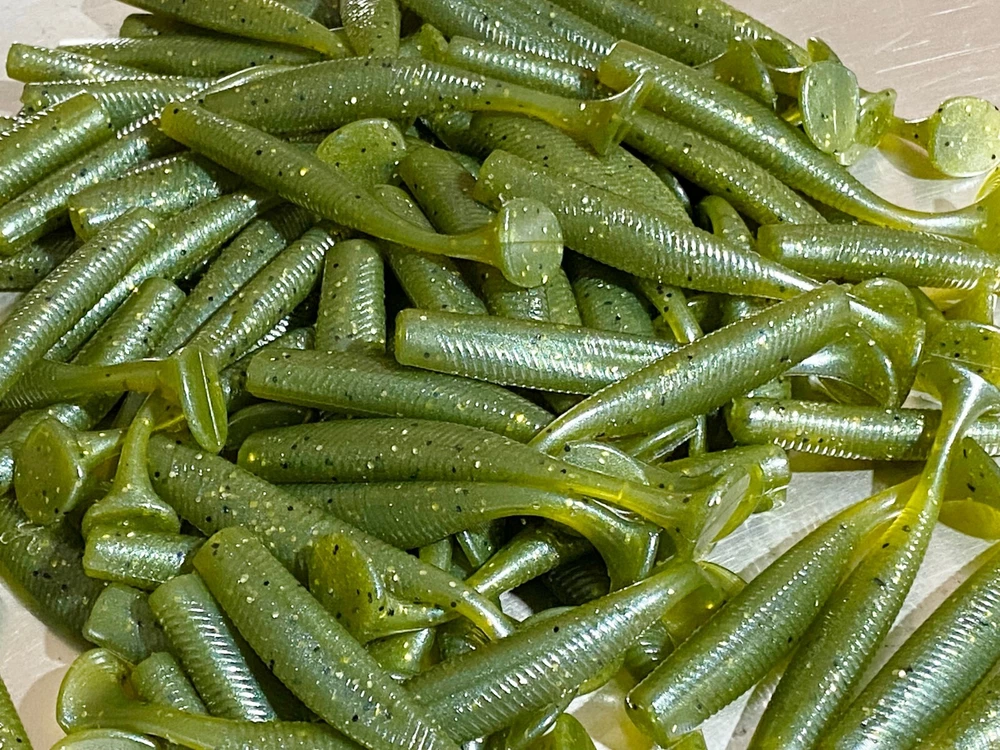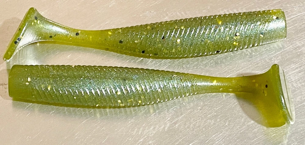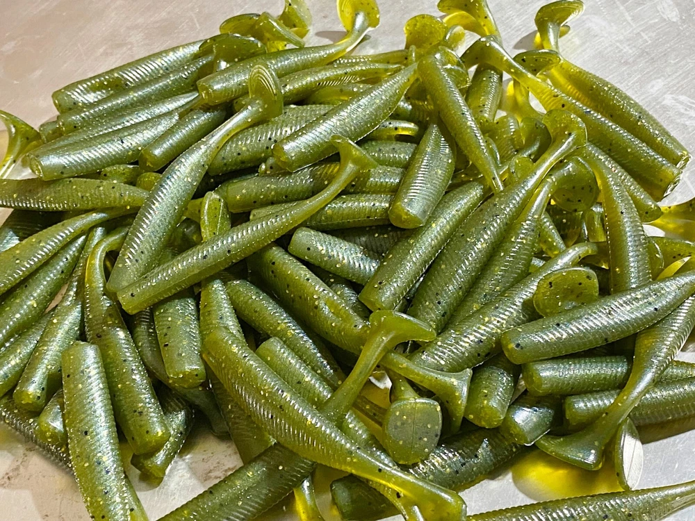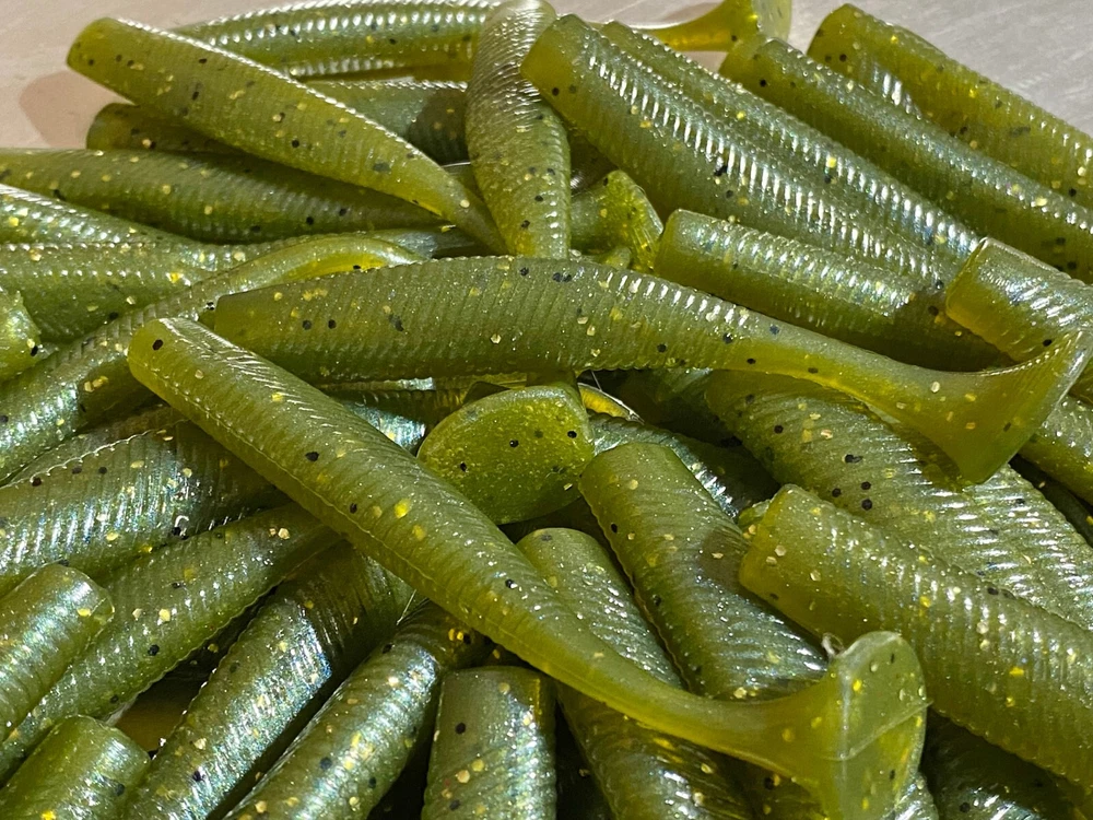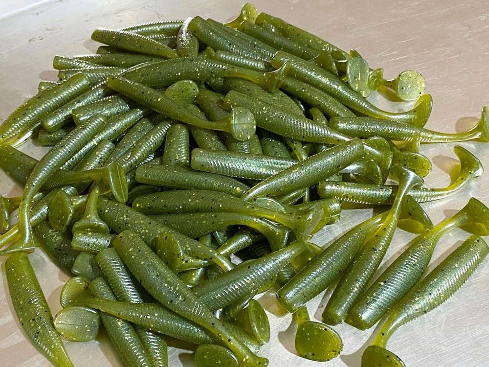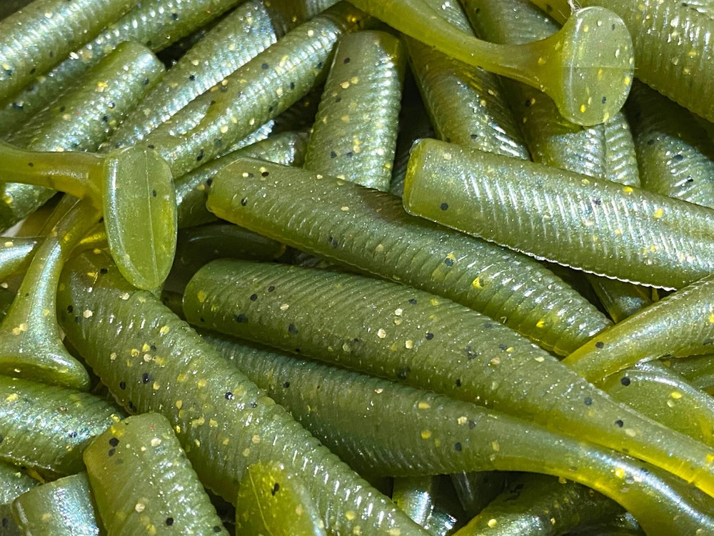 50~3.75"Ribbed Paddle Tail Soft Plastic Fishing Lure/Swim Bait Lot~Green Pumpkin