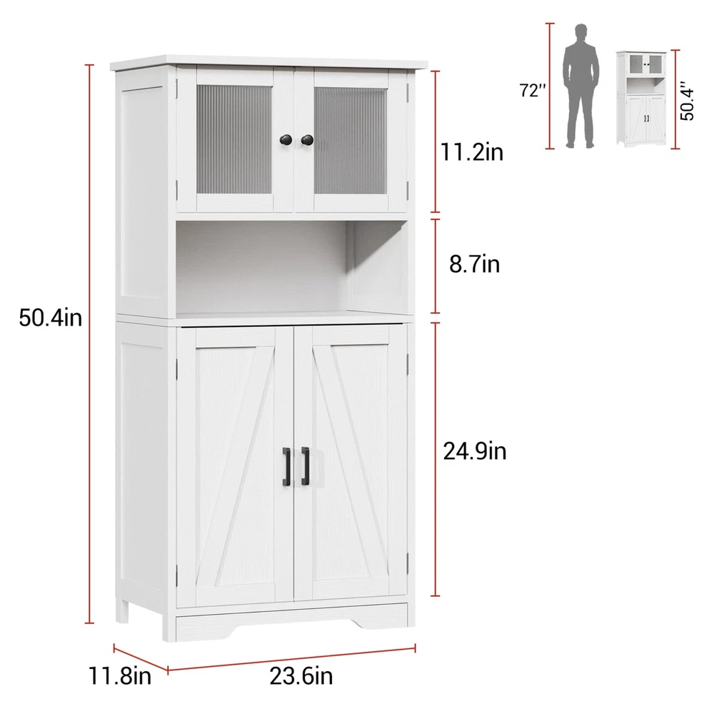 Bathroom Cabinet, 50.4" Storage Cabinet with Glass Doors and Adjustable Shelves, Freestanding Kitchen Pantry Cabinet, Farmhouse Floor Cabinet for Bathroom, Living Room, Dining Room,White/Brown/Gray Farmhouse and Versatile Design: Elevate your home with this stylish bathroom storage cabinet featuring elegant glass doors and streamlined lines. This multifunctional cabinet serves as a bathroom floor cabinet, pantry cabinet, and even a linen cabinet, seamlessly fitting into any room, including the kitchen and living room Flexible Storage Options: Equipped with an open compartment and adjustable shelves, this bathroom cabinet allows you to organize your towels, toiletries, and other essentials with ease. It's the perfect solution for optimizing bathroom space while keeping everything readily accessible Sturdy and Safe Construction: Crafted from high-quality MDF and moisture-resistant materials, this freestanding bathroom storage cabinet ensures durability and stability. It features anti-tipping hardware, ensuring the utmost stability and security Easy Assembly Process: Enjoy a hassle-free setup with our well-organized parts and detailed assembly instructions. This kitchen cabinet is designed for quick assembly, allowing you to enjoy its functionality in no time Effortless Cleaning and Maintenance: The smooth surface and waterproof materials of this bathroom cabinet make cleaning a breeze. Keep your home looking pristine with minimal effort, while the stylish design enhances your decor in any setting Payment Delivery details Terms of sales About us Contact us Payment We accept payment either via PayPal or any of the following credit cards; Visa, MasterCard, Discover, and American Express. Delivery details 1. We will delivery out at the handing time when we receive the payment. 2. The delivery time is 3-5 business days to US by usually time.The parcel maybe delay 1-2day of the weekend.Due to the bad weather,Holidays,Hot Season ect.the parcel maybe delay,If you have any problems,mssage us,we will try our best to solve it. 3. We ship to your eBay address. Please make sure your eBay address is correct before you pay. 4. If you want to change the shipping address,message us before our send out. Terms of sales If you are not satisfied with the item for any reason, please do not quick to leave negative/neutral feedback even open request and case without any communication with us. We devote ourselves making EVERY CUSTOMER in 100% Satisfactory and resolve any problem. Thank you for your understanding and recognition,we are always leave positive feedback to all our customers. About Reply: All replies will be sent to your email box, if you do not get response within 24 hours (Sat. & Sun. excluded) please check your eBay My Messages in case that our emails will be filtered automatically by your settings. About us automobilee-01 is a brand new store but we are one of North America’s top online suppliers of specialized, high-quality aftermarket online retailers and suppliers, committed to developing new markets. We primarily offers tool sets, auto parts, home goods, etc..With over 20 years of product selection and manufacturing experience, we delivers unparalleled quality, value, service and satisfaction. Our highly-trained, professional staff offer in-depth knowledge and personalized assistance for customers worldwide. Providing our customers with a simple, hassle-free experience with best-in-class customer service is more than a goal. Contact us Any problem please rest assure to contact us by eBay message first. We will reply you as soon as we can. We will deal with it within 24hs on working days. Brand Unbranded Type Cabinet Features Adjustable Shelves, With Doors Style Contemporary/Modern MPN Does not apply Shape Rectangular Room Living Room, Bedroom, Kitchen Mounting Freestanding Department Adults Material Engineered Wood, Glass Care Instructions Easy Care Assembly Required Yes Door Style Flat Panel Item Length 23.6 in Item Width 11.8 in Item Height 50.4 in Product Dimensions 11.8"D x 23.6"W x 50.4"H Item Weight 39 pounds Number of Doors 4 Model Kitchen Pantry Cabinet