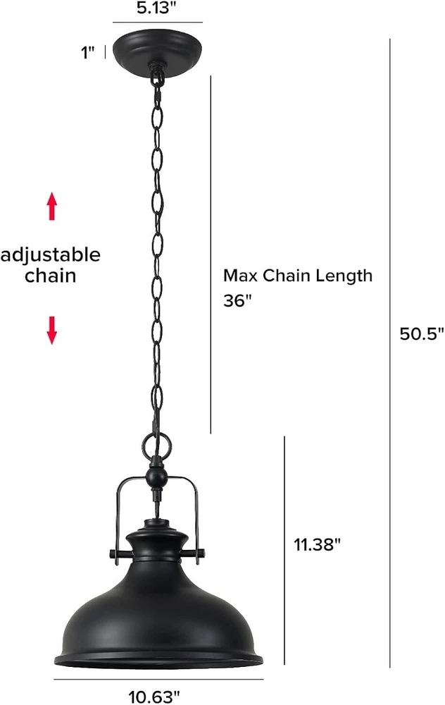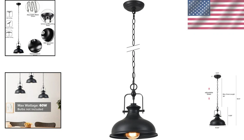 50.5'' Adjustable Dome Pendant Light with Polished Black Finish for Dining Room ‹ › ‹ › ‹ › ‹ › ‹ › ‹ › ‹ › ‹ › 50.5'' Adjustable Dome Pendant Light -Embellished with a Polished Black Finish for Dining Room Indulge in Industrial Elegance Illuminate your living spaces with our sophisticated dome pendant light. Suspended gracefully by a sturdy chain link, this pendant showcases a traditional yet chic dome-shaped shade, all finished in a sublime polished black. Its vintage-inspired design elevates any area, radiating an aura of timeless elegance. Customized Hanging Height Overall Dimensions: 10.63” Diameter × 50.5” Height Includes a 36-inch adjustable metal chain to personalize your lighting experience. Compatible with flat, sloped, and vaulted ceilings - embrace versatility in your home. Round canopy measuring 5.13 inches wide Safety Meets Superior Quality CE & UL listed for reliable safety performance. Crafted from durable metal with exquisite workmanship, ensuring longevity indoors. Enjoy peace of mind with a 12-month warranty against non-human damage. Effortless Installation Hardwired for simplicity, this pendant light comes with all essential assembly parts and clear instructions, making the installation process intuitive. Compatible with E26 base bulbs (not included); suitable for LED, CFL, and Incandescent options, with a maximum rating of 60 watts. Versatile Lighting for Every Area The soft black shade gently diffuses light, creating an inviting ambiance that transforms your home into a sanctuary. Ideal for: Kitchen Dining Room Living Room Bedroom Entrance and Corridors Gallery and Cafés Elevate Your Space Let this exquisite pendant light redefine your interiors, bringing a touch of industrial sophistication to your home decor. Discover the allure of beautifully balanced light with our adjustable dome pendant light. Shipping Free & Fast Shipping - We offer free shipping to most of the USA with a normal delivery time of 3-7 days. However, due to the current situation, additional delivery time (up to 3 weeks) may be required for some items. Alternative Carriers - We may use alternative carriers (e.g. USPS, FedEx, UPS, etc.) to ensure your package arrives safely and on time. Due to the use of multiple carriers, we are unable to provide a tracking number automatically. Handling Time - Orders are processed and shipped within 1-2 business days of receiving cleared payment. Shipping Restrictions - Shipping to Alaska, Hawaii, Puerto Rico, Guam, and other US territories may incur shipping charges or delivery restrictions. Please contact us before ordering, or your order can be refunded/cancelled. State Restrictions - There may be restrictions based on your state of purchase. For example, certain items may not be shipped to California due to state regulations. Contact for Tracking Updates - If you require tracking updates or have any concerns about the delivery of your order, please feel free to contact us, and we will be happy to assist you. Return Please see our eBay Return Policy. Thank you. Payment We accept all major credit cards, PayPal, and Apple Pay for your convenience. Your payment information is secure and encrypted to ensure a safe and seamless transaction. Please complete your payment within 3 days of purchase to avoid any delays in shipping. Feedback Your feedback is extremely important to us. We strive to provide the best products and customer service possible. If you are satisfied with your purchase, please take a moment to leave us a positive review. If you have any concerns or issues with your order, please contact us before leaving negative feedback. We are committed to resolving any problems and ensuring your satisfaction. Contact Us If you have any questions or concerns, please feel free to reach out to our customer support team. You can contact us through the eBay messaging system. We are available Monday to Friday, 9:00 am to 5:00 pm EST, and we will do our best to respond to your inquiry within 24 hours. Thank you for supporting our small family business! UPC: Not Set Lumens: Industrial Hanging Light Item Height: Industrial Hanging Light Item Length: Industrial Hanging Light Item Weight: 3.67 pounds Item Width: Not Set Power Consumption: 60 watts Unit Quantity: 1 Material: Metal Room: Bedroom,Dining Room,Kitchen,Living Room Light Color: Black Features: Dimmable Department: Unisex Baby & Toddler,Kids,Teens,Adults Control Style: Touch Occasion: Birthday,Casual,Housewarming,New Home Light Direction: Downwards Labels & Certifications: Not Set Brand: Unbranded Type: Pendant Sensor Type: Light Style: Industrial Lighting Technology: Incandescent Color: Black Finish: Polished Number of Settings: 1 Shade Shape: Dome Power Source: Corded Installation Area: Indoor Energy Star: Not Set LED String/Strip Type: Not Set MPN: Not Set EC Range: Not Set Manufacturer: Not Set Item Diameter: 11 in Voltage: 120 V Year Manufactured: Not Set Number of Lights: 1-3 Amperage: Not Set Country/Region of Manufacture: Not Set Output Voltage: Not Set IP Rating: Not Set Era: 21st Century (2000-now) Manufacturer Warranty: Not Set Color Temperature: Not Set LED Chip Code: Not Set Model: Not Set Product Line: Not Set Unit Type: Unit Assembly Required: Not Set