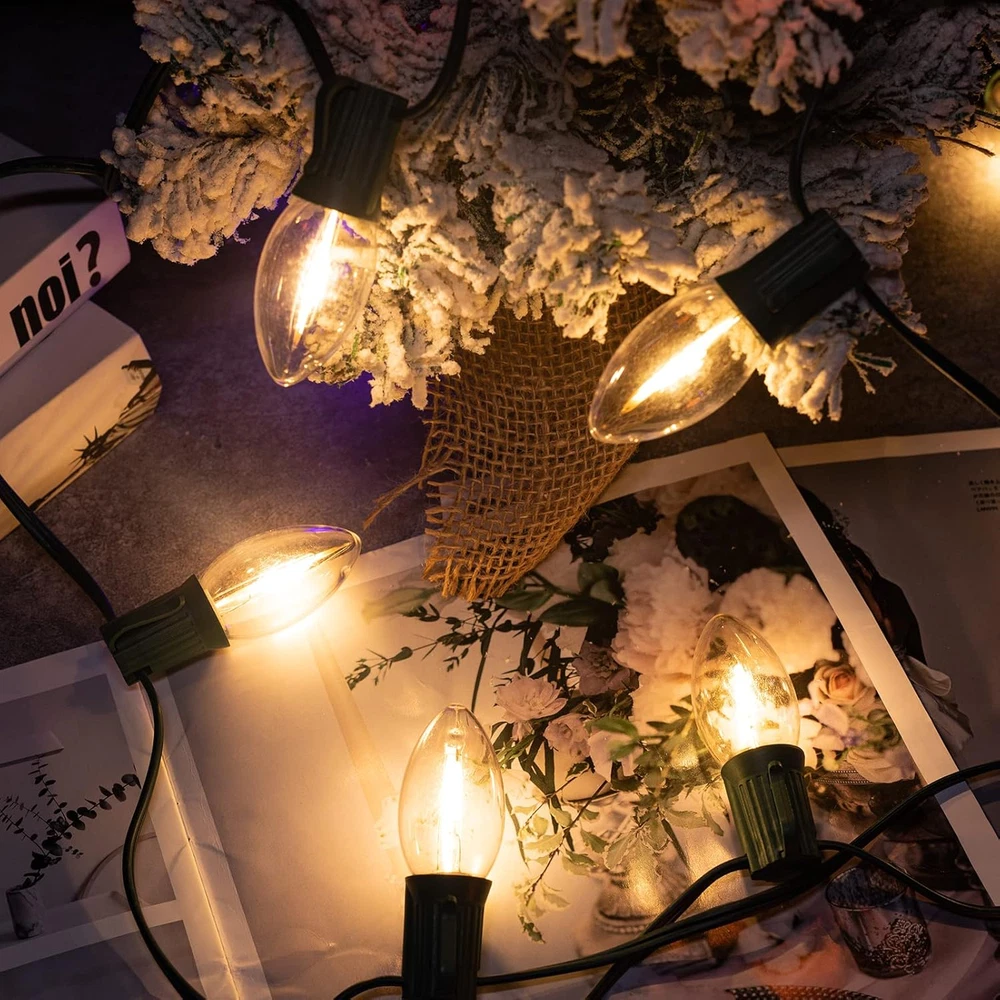 50FT C7 Clear LED Christmas String Lights Outdoor, Commercial Connectable Christ