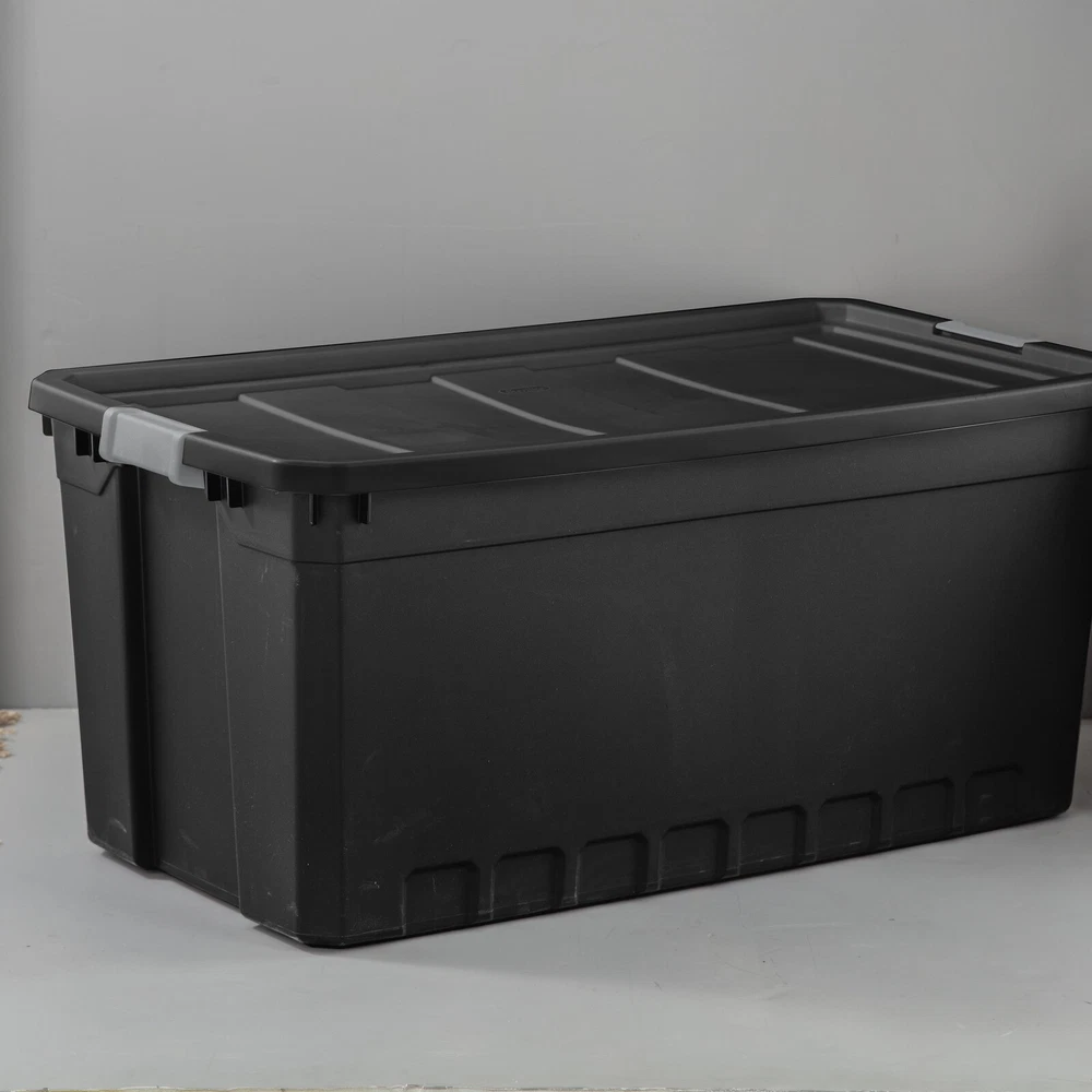 You may also like Travel Duffle Bag Underseat Carry On Bag Airplanes Gym Sports Weekend Overnight 20.6 USD Free shipping Nonstick Aluminum Stock Pot W/ Glass Lid Soft Touch Handles 12.7qt Cooking Pot 34.3 USD Free shipping Gray Utility Door Mat Heavy Duty Non Slip Stain Resistant Indoor Outdoor New 10.26 USD Free shipping Full Size Sewing Machine Embroidery 17 Stitches &4 Sewing Feet Portable New 119.91 USD Free shipping 5 Tier Mesh Desk Organizer File Holder Sliding Drawer Office Home Storage Black 36.8 USD Free shipping Electronic Heating and Cooling Smart Pet House Dog Cat Electric Heating Indoor 100.16 USD Free shipping Collapsible Utility Wagon Cart Foldable Heavy Duty Camping Grocery Garden Sports 64.11 USD Free shipping 12 Inch Tool Bag Heavy Duty Storage Organizing Utility Tote W/ Pockets New 10.87 USD Free shipping Plastic Collapsible Cart Organizer Foldable Beach Outdoor Wagon Cart Garden 43.31 USD Free shipping Clear Plastic Punch Bowl Elegant Beverage Server Ideal Parties Weddings Events 9.82 USD Free shipping Travel Duffle Bag Gym Bag Overnight Weekender Carry-on Yoga Tote Wet/Dry Pocket 32.38 USD Free shipping Kids 16" Rolling Backpack with Lunch Bag Travel School Work Bag Gift 53.43 USD Free shipping In need of a durable storage system for closets, basements, garages, or attics? The Sterilite Modular Stacker line features rugged construction for added peace of mind that contents will stay safely stored inside. The 50 Gallon Stacker Tote is the perfect size for camping gear, sports equipment, seasonal decorations, and other bulky items, and the opaque base allows contents to be out of sight. The robust latches offer extra security that the lid will stay attached to the base, and the textured surface makes for a sure grip when carrying. The deep recessed lids provide stability when stacking for efficient use of storage space. The 50 Gal Stacker Tote shares the same lid as the 200 Qt Stacker Box allowing secure stacking and the clear and opaque versions to be stacked interchangeably. The overall assembled dimensions of this item are 39 3/4" L x 21 1/2" W x 17 7/8" H. Sterilite Adult Plastic 50 Gal. Stacker Tote Plastic, Black, Set of 3: Outside Dimensions: 39 3/4" x 21 1/2" x 17 7/8" The 50 Gallon Stacker Tote is the perfect size for camping gear, sports equipment, seasonal decorations, and other bulky items Set of 3 Durable solid channeled walls provide added strength and conceal contents - Black Interior Dimensions at bottom: 34 1/4" x 18" x 17 3/8" This durable storage solution is ideal for garages, basements, attics, and more Heavy duty latches help to secure the lid to the base and provide a sure grip surface Deep indexed lid surface allows multiple totes to stack securely BPA-free and phthalate-free You may also like 50 Gallon Stacker Tote Plastic, Black,Set of 3 Garage Storage Toolbox Tool Case 103.46 USD Free shipping