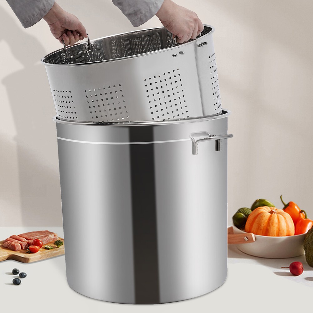 This stock pot is a game-changer for big meals! The thick stainless steel heats evenly and stays sturdy, while the handy basket makes straining a breeze. Perfect for large batches of soup, pasta, or seafood boils—cleanup’s easy too. Great for home cooks and small catering jobs alike. Definitely worth the investment!