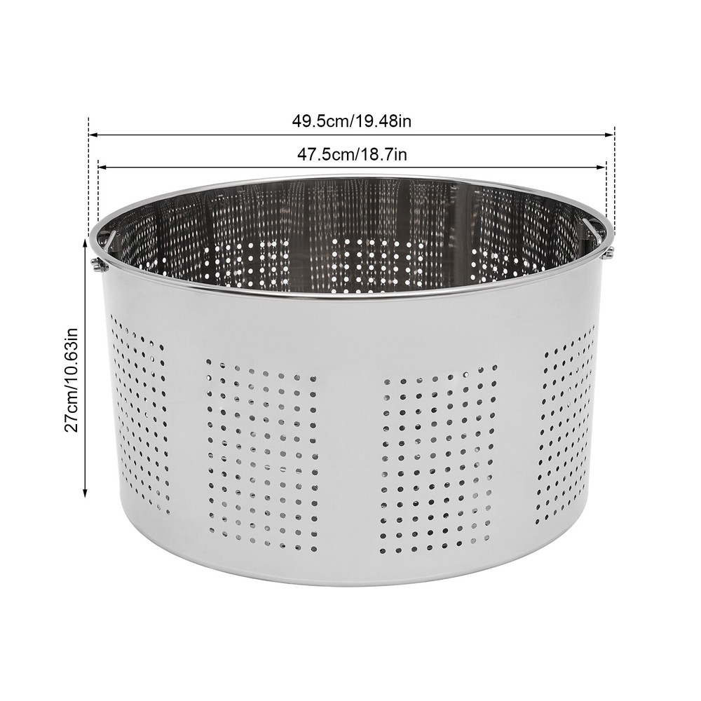 50L/52.8Qt Stock Pot Stainless Steel Stock Pot Kitchen Cooking Pot w/ Basket Description This stainless steel stock pot is made of high-quality 201 stainless steel material with excellent corrosion and high-temperature resistance. The filter basket allows for easy separation of solids and liquids. Its large capacity is suitable for family gatherings and most commercial applications. Key Features Selected Materials: This product is made of thickened 201 stainless steel, which is not easy to deform and rust, very sturdy and durable. Large Capacity: The pot has a capacity of 52.8 Qt and the basket has a capacity of 42.26 Qt, so they can meet most families' and even commercial needs. Functional Basket: The basket with evenly distributed perforated holes not only is ideal for steaming, boiling, deep frying, etc. but also allows for quick filtration while preventing food from falling out, which is more convenient. Thoughtful Design: The lid helps seal in heat, flavors, and aromas, ensuring your foods retain their moisture and taste and resulting in delicious and flavorful meals. Its round handle allows this lid to be hung directly on the handles of the pot, saving space and making it easy to access. High Compatibility: This product is compatible with gas stoves, electric burners, induction burners, and open flames, which brings more convenience to your cooking. Easy to Clean: The polished smooth surface, large opening, and 3-part design allow you to easily clean this product with gentle detergents, clean water, and a soft dry cloth. Protective Package: To prevent the product from being damaged during transportation, we packed it with foam to protect your products to the maximum extent possible. Customer Service: We aim to provide quality products and services. If you have problems, please feel free to contact us. We will reply and solve the problem for you as soon as possible. Details Rolled Edges: The edges of this bucket are designed to be rolled, which not only looks beautiful but also prevents scratches or bruises. Retractable Handles: The retractable handles on the basket are designed to save space without affecting the functionality of the lid. Application It applies to boiling crawfish, crab, seafood, fried turkey, steamed tamale, etc. in restaurants, chip shops, cafeterias, buffets, hotels, kindergartens, outdoor, camping, wedding receptions, construction sites, or various large events or celebrations. It also can be used as a deep-frying filter bucket, marinade bucket, or vegetable and fruit-draining bucket. Specification Color: Silver Style: Modern Shape: Cylinder Material: 201 Stainless Steel Finishing Process: Polished Assemble Required: Yes Pot Capacity: 50 L/52.8 Qt Bakset Capacity: 40 L/42.26 Qt Pot Height: 50 cm/19.68 in Pot Diameter with Handles: 57 cm/22.44 in Lid Outer Diameter: 51.5 cm/20.27 in Lid Inner Diameter: 49.5 cm/19.48 in Basket Inner Diameter: 47.5 cm/18.7 in Basket Outer Diameter: 49.5 cm/19.48 in Basket Height: 27 cm/10.63 in Gross Weight: 11 kg/24.25 lbs Net Weight: 10 kg/22.05 lbs Package Size: 56*53.5*53.5 cm/22.05*21.06*21.06 in Package Included 1* Stock Pot 1* Basket 1* Lid Other Accessories for Assembly Notes The food in the pictures is not included. Due to the large size, please be careful when using it on the stoves. Please double-check the size if it fits your needs before purchasing. Please wash it with a non-abrasive scrubber and gentle soapy water. Please make sure to dry it thoroughly before storing it away. Strong acids and alkalis should not be stored in stainless steel containers for periods. How to clean a burnt pot: Add a layer of white vinegar or warm water to cover the bottom, add enough baking soda, let the mixture sit for a few hours or overnight, and then add more baking soda and scrub with a nylon brush or scour sponge. Please allow the slight color difference caused by the shooting light and 1-3cm error due to manual measurement, and make sure you do not mind before ordering. Warranty 10 years Assemble Required Yes Bakset Capacity 40 L/42.26 Qt Pot Height 50 cm/19.68 in Pot Diameter with Handles 57 cm/22.44 in Lid Outer Diameter 51.5 cm/20.27 in Lid Inner Diameter 49.5 cm/19.48 in Basket Inner Diameter 47.5 cm/18.7 in Basket Outer Diameter 49.5 cm/19.48 in Basket Height 27 cm/10.63 in Stove Type Compatibility N/A Brand Unbranded Material 201 Stainless Steel Surface Coating Polished Capacity 50 L/52.8 Qt Type Stock Pot Color Silver Shape Cylinder On Jul 8, 2025 at 22:34:08 PDT, seller added the following information: