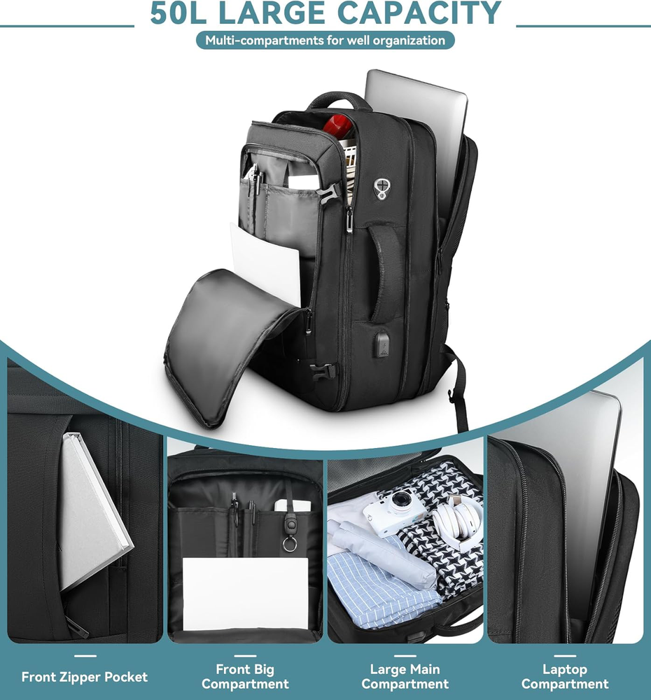 Fast Shipping Great Customer Support Satisfaction Guaranteed DESCRIPTION Shipping Shipping Shipping All domestic packages are shipped for Free (Unless other shipping method was selected during the checkout) Most items ship and arrive much sooner than the estimate delivery date. Usually within 2-3 days from payment. However, we have longer estimates to compensate for the occasional delay or supply chain breakdown. We do not accept P.O. BOXES - PLEASE PROVIDE A PHYSICAL ADDRESS Return Return Return In the event that you would like to return your purchase, we allow returns that are processed within the defined return date (the return date is to be found in the return policy/shipping and handling section) Please contact us for a return authorization and the return shipping address. Payment Payment Payment PayPal is our preferred method of payments it's the quickest, easiest and most secure way to pay for your goods or services online. PayPal offers buyer and seller protection should there be a problem. If you do not have a PayPal account, to get started and buy your first item with us is very easy. Simply click on the 'Buy It Now' button and follow the eBay checkout steps. Select PayPal as the payment method you then will be given the chance to enter your card details in to PayPal's secure checkout in order to pay for your order. Once the payment has been made, you will then be given the opportunity to make your own PayPal account to make paying for your items in the future very easy. Should there be a problem with payment please do let us know. Feedback Feedback Feedback Customer satisfaction is very important to us. If you have any problem with your order,please contact us and we will do our best to make you satisfied, please do not leave a negative feedback before we resolve your problem. We guarantee that your issue will be solved quickly. As long as you are happy with your purchase of , please leave us a positive feedback. Your feedback is very important to us it affects our search placement on eBay. We will leave a positive feedback for you in return automatically once we receive your feedback. Contact Us Contact Us Contact Us If you have any queries, please contact us via ebay. We usually respond within 24 hours on weekdays. Thank you for visiting our ebay store! šćFriendly Customer ServicećWe provides Lifetime worry-free after-sales service of this travel laptop backpack. If you have any problem about our carry on backpack, please do not hesitate to contact us, we will do our best to resolve it. (THIS ITEM IS NOT INTENDED FOR USE BY PEOPLE 12 AND UNDER.) šćReduce PressurećNormal Size: 19.6 * 12.9 * 5.9 inch; Expanded Size: 19.6 * 12.9 * 9 inch.The travel laptop backpack for men women equipped with adjustable chest straps, air-mesh ventilated back panel, can effectively relieve the pressure on the shoulder and neck.The backpack travel has a thickened sponge handles and shoulder straps provide you with more comfort when you are carrying and gripping the travel laptop backpack. šćExpandable & Large CapacityćThis large travel laptop backpack is designed to be expandable, backpack for travel giving you a large capacity pack up to 50L, unzipping to get larger storage space. The carry on backpack for men women fits overhead and under seat while on state of standard carry on size, ideal for business or weekend travel, and easily carried on most flights. šćAirline Approved & Practialć: The large travel laptop backpack airline approved can be freely unfolded 90-180 degrees, allowing you to quickly pass through airport security and keep things tidy. The luggage strap on back allows the mens carry on backpack for travel to securely slip over the handle of any rolling luggage for hands-free transport, easier carrying. A perfect travel gifts for men women. šćUSB Charging Port & Headphone HolećCarry on backpack built-in USB Charging Port and headphone outside hole design. This travel laptop backpack is convenient to charge your phone(Note: POWER BANK is not included). Headphone jack provide a hole to enjoy the music while walking. Extra Large 50L Travel Backpack - Water Resistant Carry On Bag for 17" Laptops Click here to see description Fast Shipping Great Customer Support Satisfaction Guaranteed DESCRIPTION Shipping All domestic packages are shipped for Free (Unless other shipping method was selected during the checkout) We ship within two business days of payment, usually sooner Standard FREE shipping takes between 3-5 business days Expedited shipping takes between 2-3 business days Overnight shipping takes between 1-2 business days We do not accept P.O. BOXES - PLEASE PROVIDE A PHYSICAL ADDRESS We Ship Globally using ebay's GSP, the item is sent to a logistic center in KY and shipped from there to the rest of the world. International customers are responsible for all duties and taxes Contact your local authority for questions related to the amount of duties or taxes you will be responsible for Return In the event that you would like to return your purchase, we allow returns that are processed within the defined return date (the return date is to be found in the return policy/shipping and handling section) Please contact us for a return authorization and the return shipping address. Please contact us for a Return Merchandise Authorization (RMA) number. We advise you to use a reputable carrier service when returning your goods. Please pack all returns appropriately. We ship globally Via eBay's global shipping program (GSP). Thus we don't cover returns for items shipped globally. Buyers returning such items will be refunded ONLY for the item's cost and not for the shipping. please check the Voltage information and make sure it matches the one in your country. In case it's not stated in the description, do ask us. Payment PayPal is our preferred method of payments it's the quickest, easiest and most secure way to pay for your goods or services online. PayPal offers buyer and seller p