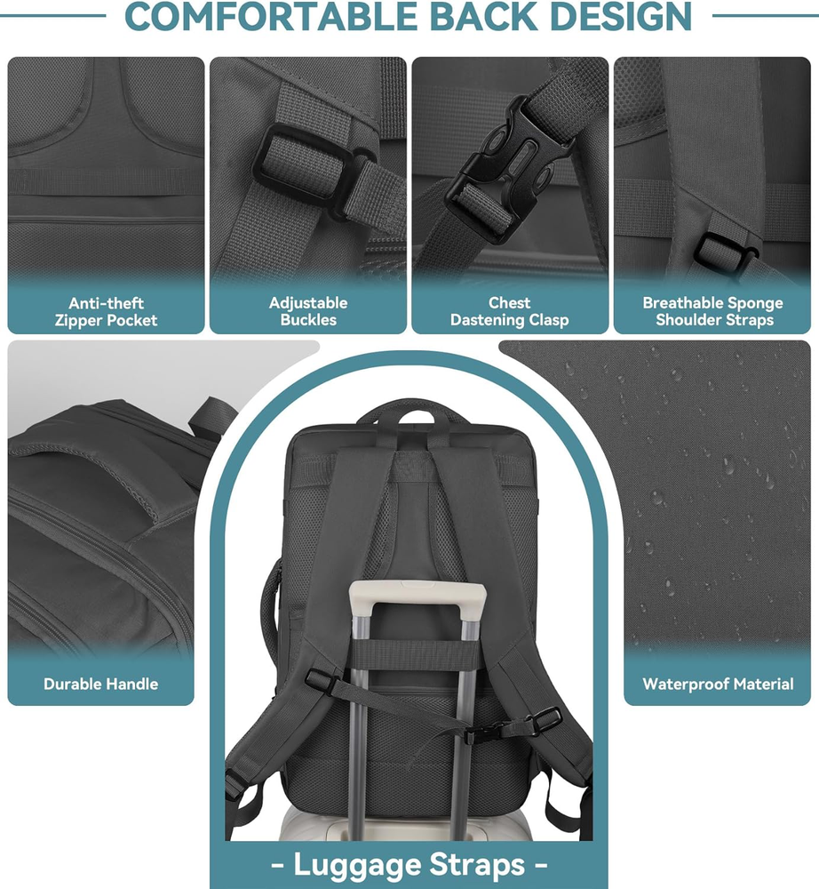Absolutely love this backpack! Super spacious with plenty of room for my 17" laptop and travel essentials. The water-resistant material is a lifesaver, and it fits perfectly as carry-on. Fast shipping and excellent customer serviceāno complaints! Highly recommend for anyone needing a durable, high-capacity backpack. Super satisfied with my purchase!