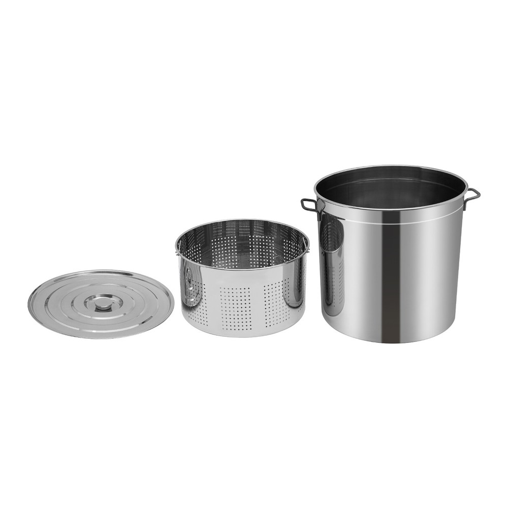 Specification Color: Silver Style: Modern Shape: Cylinder Material: 201 Stainless Steel Finishing Process: Polished Assemble Required: Yes Pot Capacity: 50 L/52.8 Qt Bakset Capacity: 40 L/42.26 Qt Pot Height: 50 cm/19.68 in Pot Diameter with Handles: 57 cm/22.44 in Lid Outer Diameter: 51.5 cm/20.27 in Lid Inner Diameter: 49.5 cm/19.48 in Basket Inner Diameter: 47.5 cm/18.7 in Basket Outer Diameter: 49.5 cm/19.48 in Basket Height: 27 cm/10.63 in Gross Weight: 11 kg/24.25 lbs Net Weight: 10 kg/22.05 lbs Package Size: 56*53.5*53.5 cm/22.05*21.06*21.06 in Package Included 1* Stock Pot 1* Basket 1* Lid Other Accessories for Assembly 50L/52.8Qt Stainless Steel Stock Pot Kitchen Cooking Pot With Basket & Lid Description This stainless steel stock pot is made of high-quality 201 stainless steel material with excellent corrosion and high-temperature resistance. The filter basket allows for easy separation of solids and liquids. Its large capacity is suitable for family gatherings and most commercial applications. Key Features Selected Materials: This product is made of thickened 201 stainless steel, which is not easy to deform and rust, very sturdy and durable. Large Capacity: The pot has a capacity of 52.8 Qt and the basket has a capacity of 42.26 Qt, so they can meet most families' and even commercial needs. Functional Basket: The basket with evenly distributed perforated holes not only is ideal for steaming, boiling, deep frying, etc. but also allows for quick filtration while preventing food from falling out, which is more convenient. Thoughtful Design: The lid helps seal in heat, flavors, and aromas, ensuring your foods retain their moisture and taste and resulting in delicious and flavorful meals. Its round handle allows this lid to be hung directly on the handles of the pot, saving space and making it easy to access. High Compatibility: This product is compatible with gas stoves, electric burners, induction burners, and open flames, which brings more convenience to your cooking. Easy to Clean: The polished smooth surface, large opening, and 3-part design allow you to easily clean this product with gentle detergents, clean water, and a soft dry cloth. Protective Package: To prevent the product from being damaged during transportation, we packed it with foam to protect your products to the maximum extent possible. Customer Service: We aim to provide quality products and services. If you have problems, please feel free to contact us. We will reply and solve the problem for you as soon as possible. Details Rolled Edges: The edges of this bucket are designed to be rolled, which not only looks beautiful but also prevents scratches or bruises. Retractable Handles: The retractable handles on the basket are designed to save space without affecting the functionality of the lid. Application It applies to boiling crawfish, crab, seafood, fried turkey, steamed tamale, etc. in restaurants, chip shops, cafeterias, buffets, hotels, kindergartens, outdoor, camping, wedding receptions, construction sites, or various large events or celebrations. It also can be used as a deep-frying filter bucket, marinade bucket, or vegetable and fruit-draining bucket. Specification Color: Silver Style: Modern Shape: Cylinder Material: 201 Stainless Steel Finishing Process: Polished Assemble Required: Yes Pot Capacity: 50 L/52.8 Qt Bakset Capacity: 40 L/42.26 Qt Pot Height: 50 cm/19.68 in Pot Diameter with Handles: 57 cm/22.44 in Lid Outer Diameter: 51.5 cm/20.27 in Lid Inner Diameter: 49.5 cm/19.48 in Basket Inner Diameter: 47.5 cm/18.7 in Basket Outer Diameter: 49.5 cm/19.48 in Basket Height: 27 cm/10.63 in Gross Weight: 11 kg/24.25 lbs Net Weight: 10 kg/22.05 lbs Package Size: 56*53.5*53.5 cm/22.05*21.06*21.06 in Package Included 1* Stock Pot 1* Basket 1* Lid Other Accessories for Assembly Notes The food in the pictures is not included. Due to the large size, please be careful when using it on the stoves. Please double-check the size if it fits your needs before purchasing. Please wash it with a non-abrasive scrubber and gentle soapy water. Please make sure to dry it thoroughly before storing it away. Strong acids and alkalis should not be stored in stainless steel containers for periods. How to clean a burnt pot: Add a layer of white vinegar or warm water to cover the bottom, add enough baking soda, let the mixture sit for a few hours or overnight, and then add more baking soda and scrub with a nylon brush or scour sponge. Please allow the slight color difference caused by the shooting light and 1-3cm error due to manual measurement, and make sure you do not mind before ordering. Payment Delivery details Terms of sales About us Contact us Payment We accept ebay payment 。 Fees such as import duties, taxes are not included in the item price or shipping costs. These charges are the buyer's responsibility. Delivery details Shipping: 2-9 working days to: USA Terms of sales We maintain high standards of excellence and strive for hundred percent customer satisfaction. Feedback is very important to us. We hope that you contact us immediately before you give neutral or negative feedback, so that we can address your concerns. It is impossible to address issues if we do not know about them! About us Your satis faction is our ultimate goal. We work hard to earn your trust and future business. Our certified technicians have tested each item before shipping. The unit comes with 1 year limited warranty on all manufacturing defects. a) If you receive a defective item, you may return it or ask for a discount. Please contact us within 14 days after you receive the package. b) What you returned must be intact and in its original packaging as re? u. Customer is responsible for shipping costs of the returned item. c) We will cover the cost of shipping back t with the shipping rate indicated in the registration page. We will send you a new unit or refund the full payment you paid. Thank you. Contact us Business Hour Business Hour: Monday T